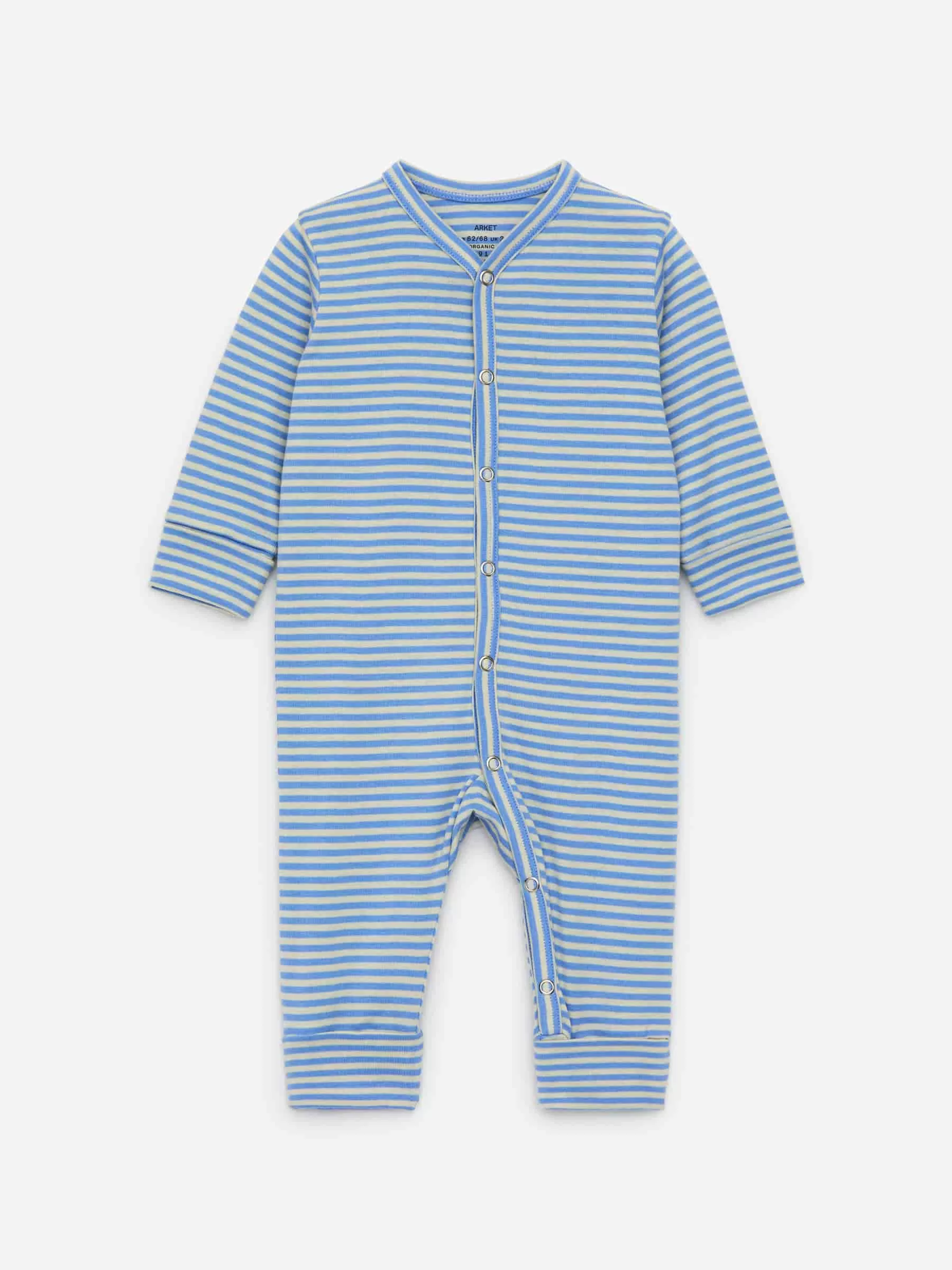 Pyjamasoverall tillverkad av bomullsjersey. Mjuka och bekväma plagg detaljerade med vikbara muddar i änden av ärmar och ben. Knäppning från topp till tå för enkel påklädning. Säljes i set om två.