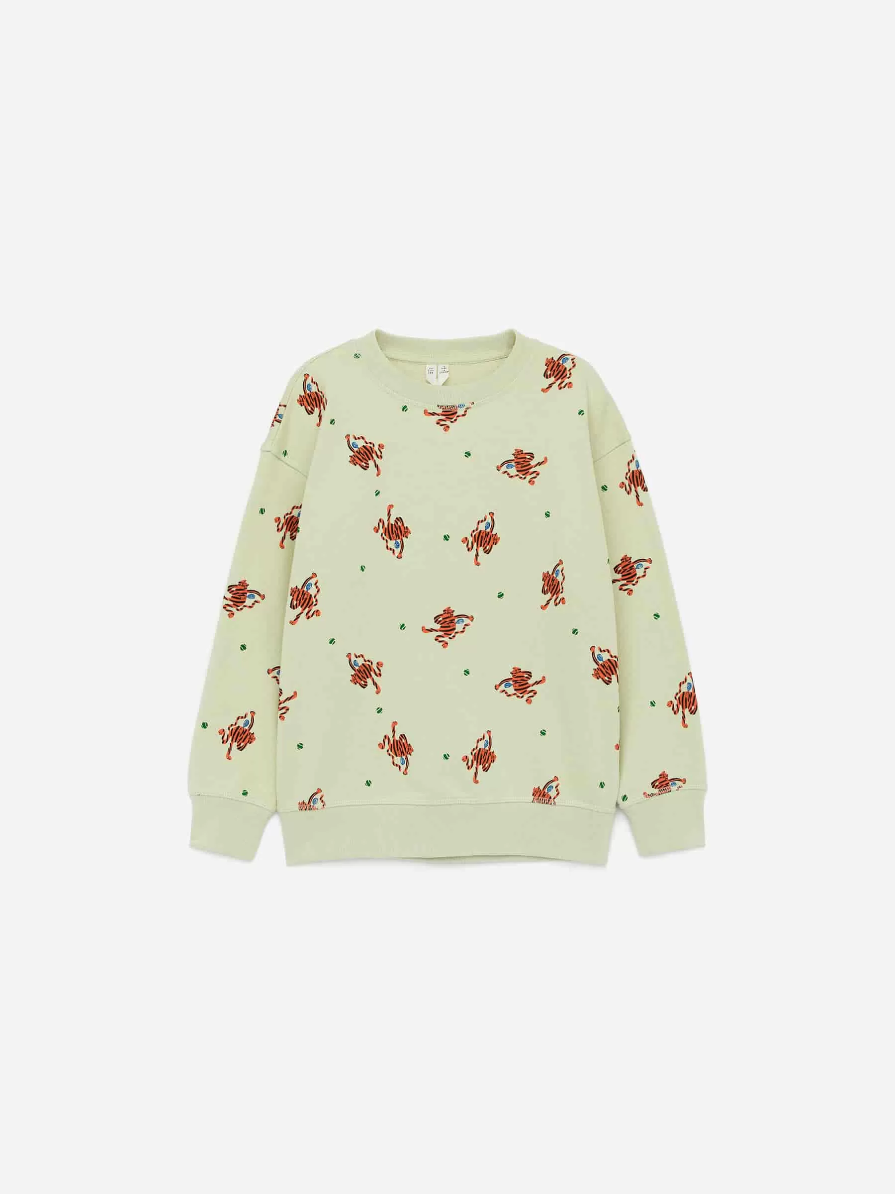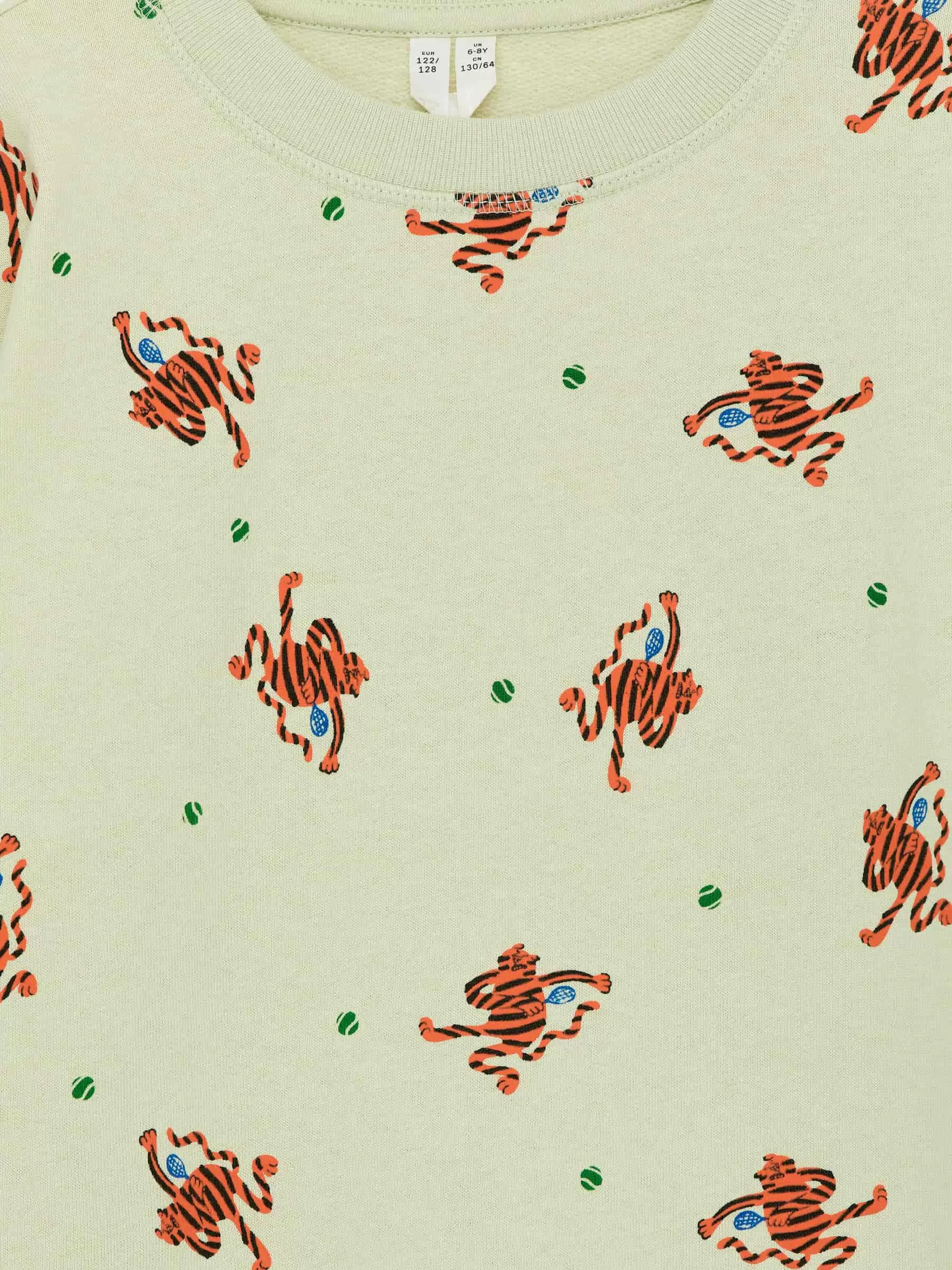 Tröja tillverkad av en mjuk bomullsfrotté. Skärning med rund hals för en avslappnad passform och prydd med ett tryck. Ribbstickade beslag.