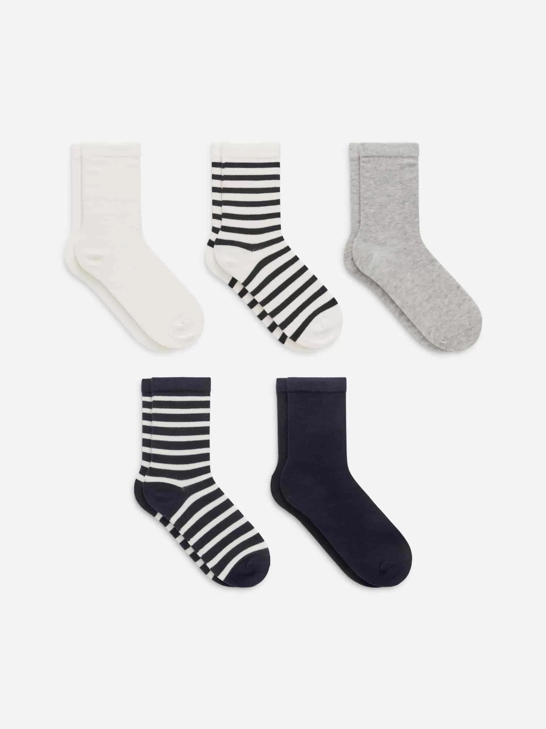 Strumpor gjorda av bomull med en del stretch för komfort och bra återhämtning. Set med fem par.