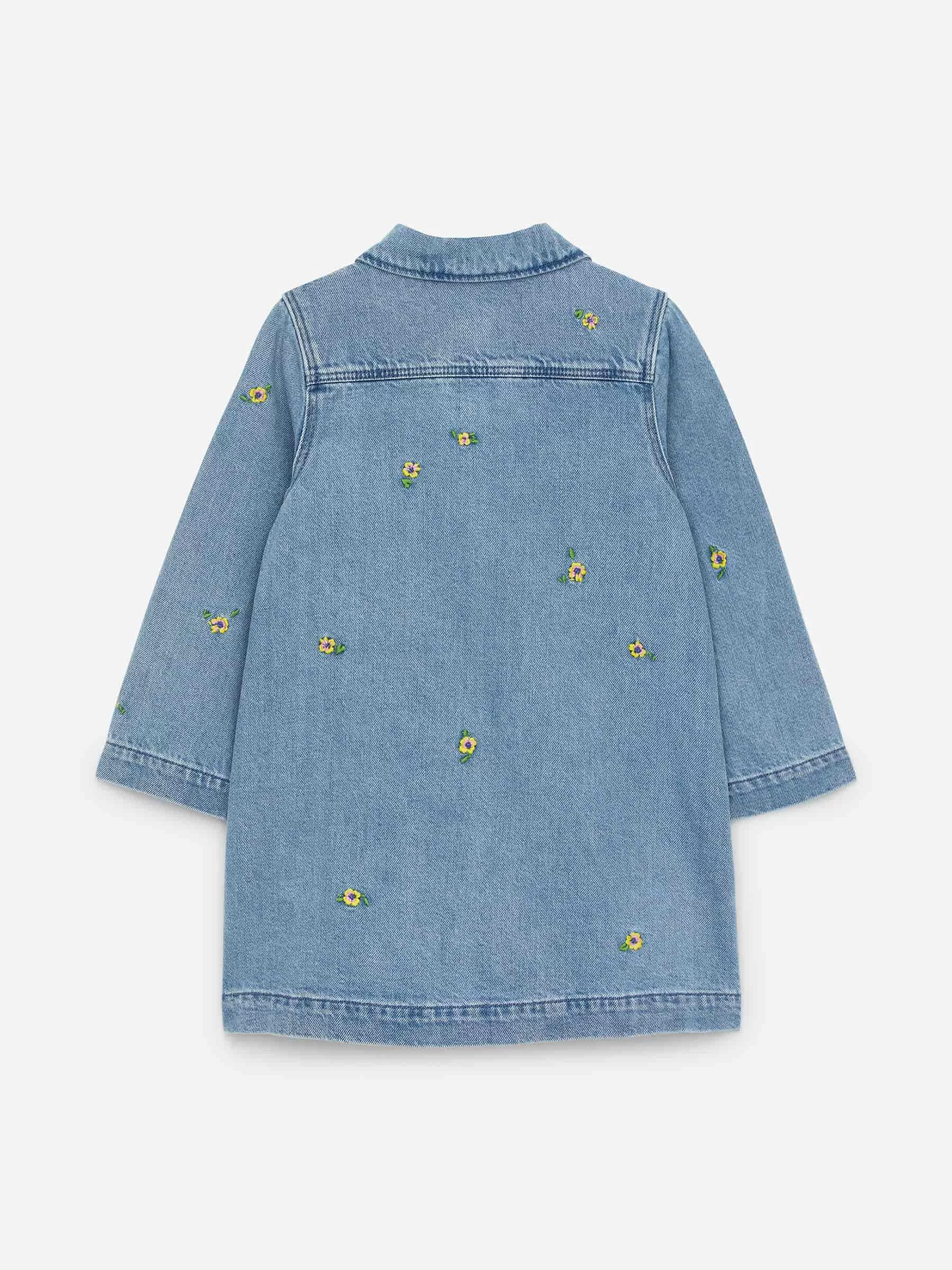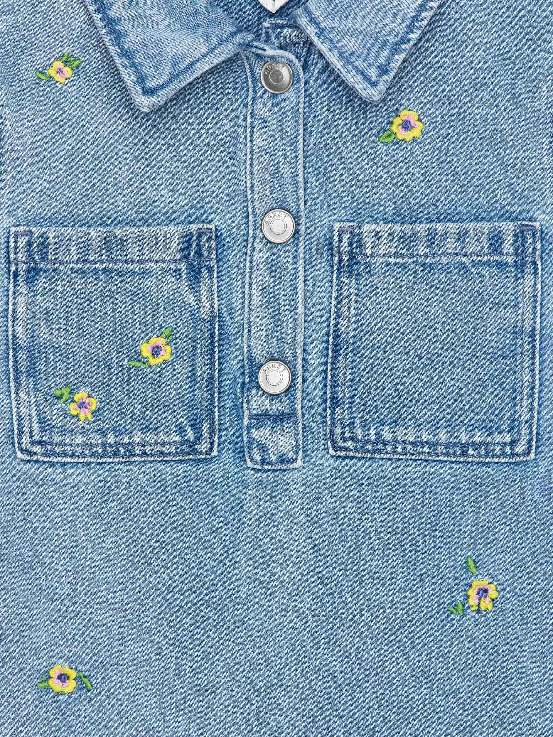 Långärmad denimklänning tillverkad av bomull. Patchfickor på bröstet och knäppning framtill med tryckknappar.