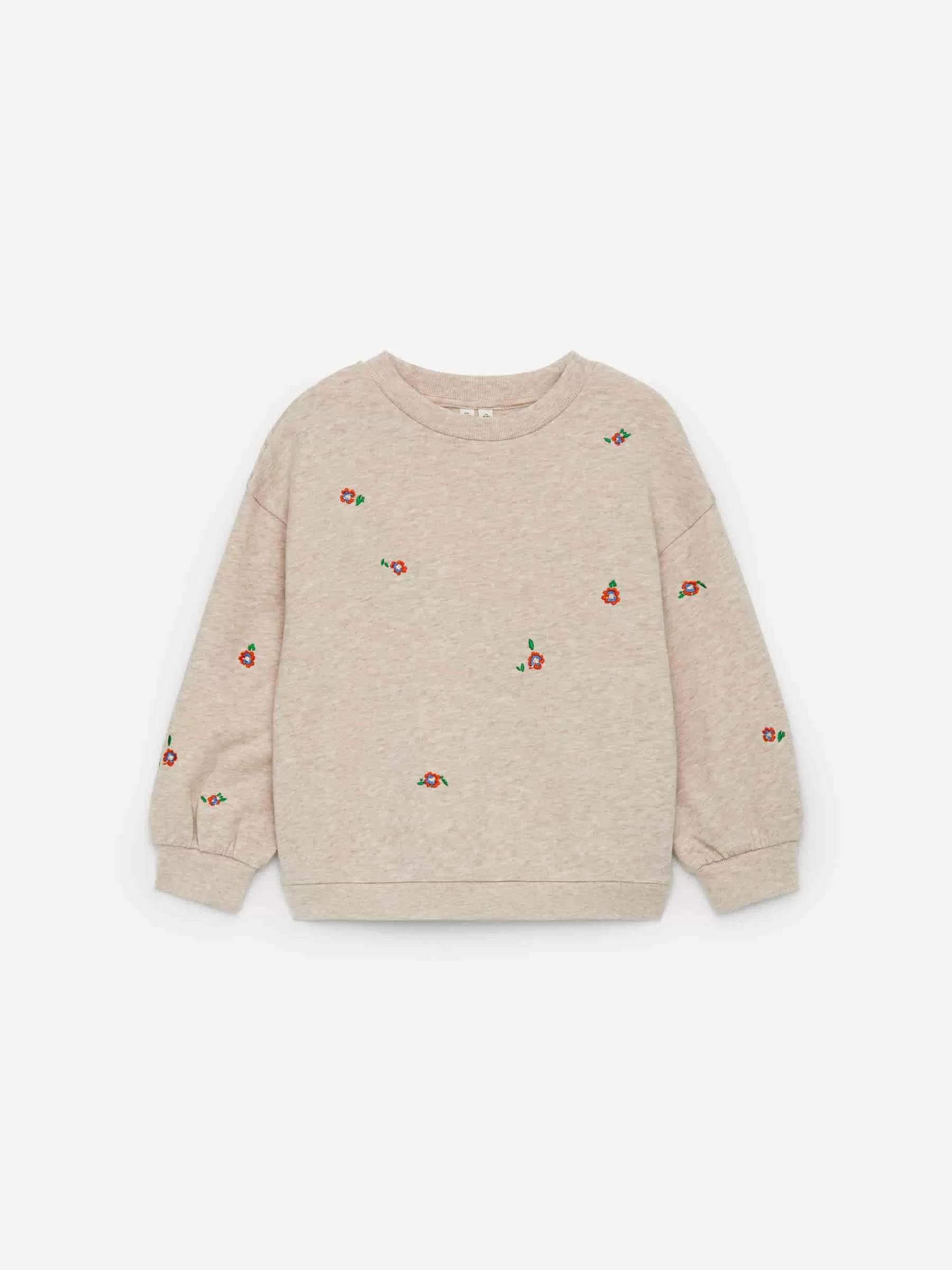 Tröja med broderade detaljer, gjord av en mjuk bomullsfrotté. Designad med rund hals och ribbad kant. Avslappnad passform.
