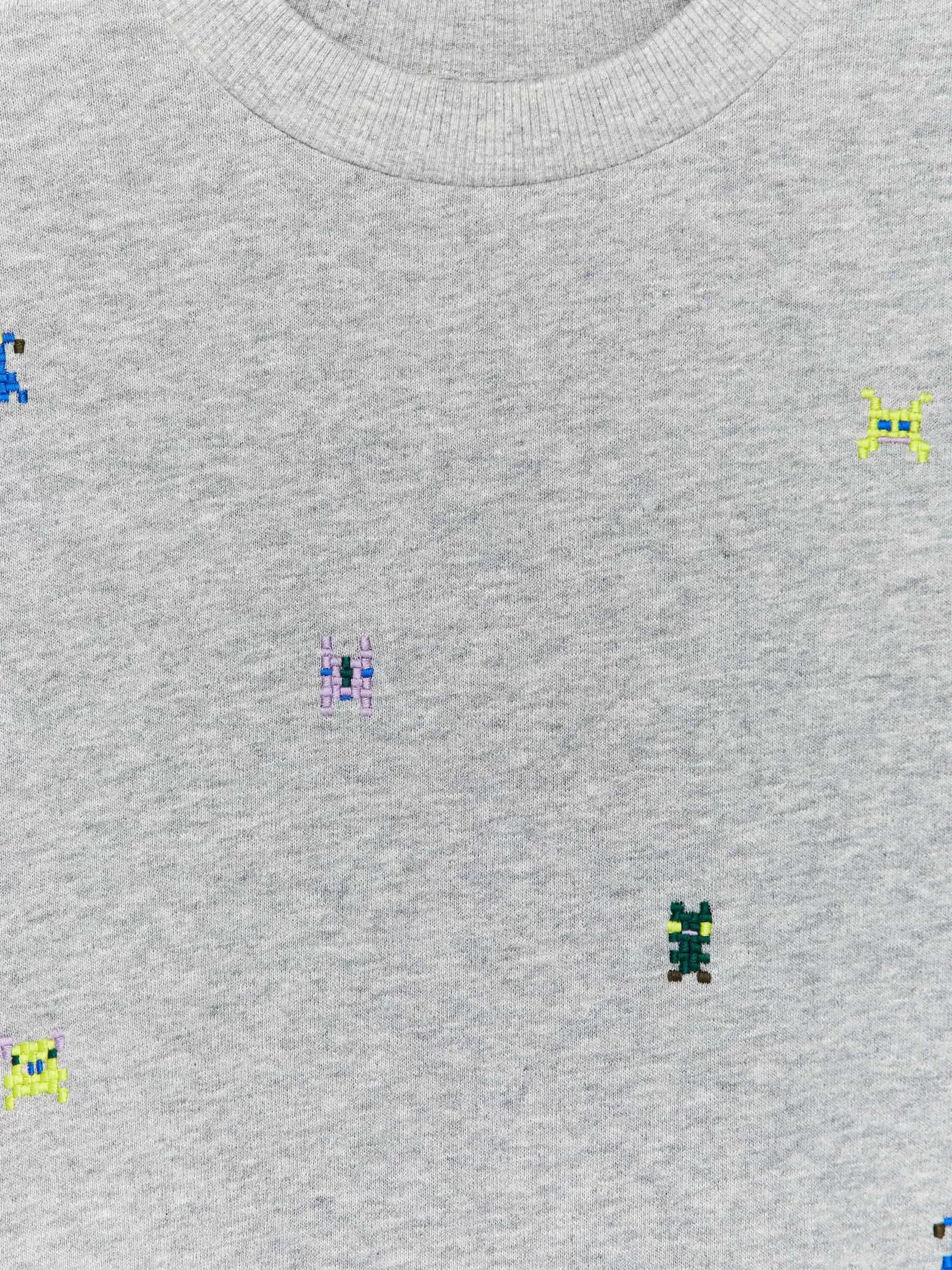 Tröja med en mjuk och mysig känsla, skuren för en avslappnad passform. Broderade detaljer med fusion bak för komfort. Ribbstickade beslag.