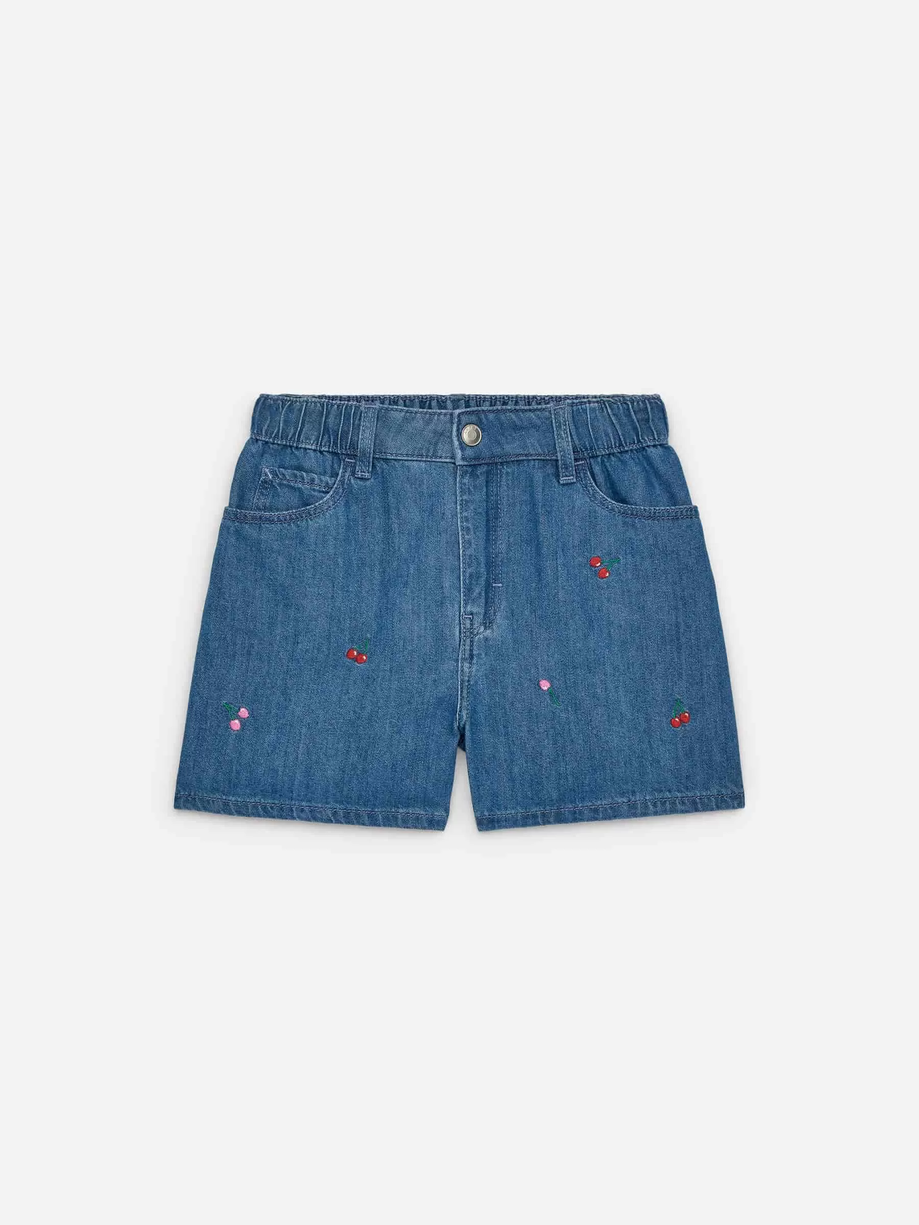Klassiska jeansshorts med fem fickor med broderade detaljer. Stylad med resår i midjan och ett justerbart inre midjeband. Avslappnad passform.