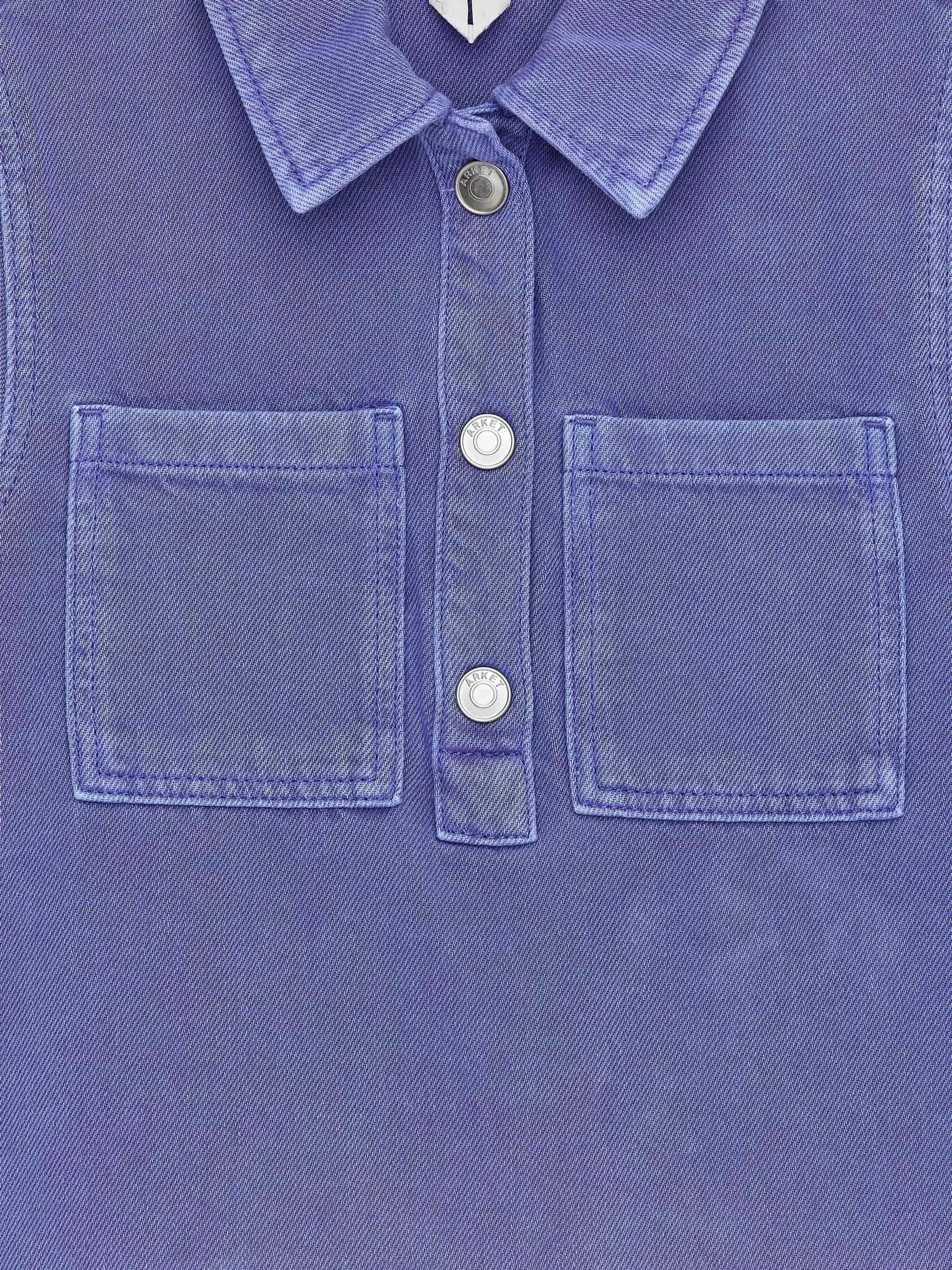 Långärmad denimklänning tillverkad av bomull. Patchfickor på bröstet och knäppning framtill med tryckknappar.