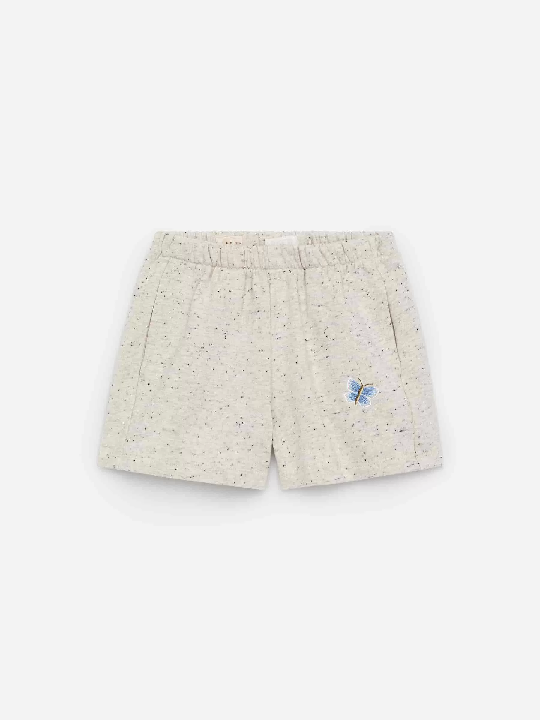 Shorts gjorda av ett mjukt fransk frottétyg. Med justerbar elastisk midja, sidosömsfickor och en enda ficka bak.