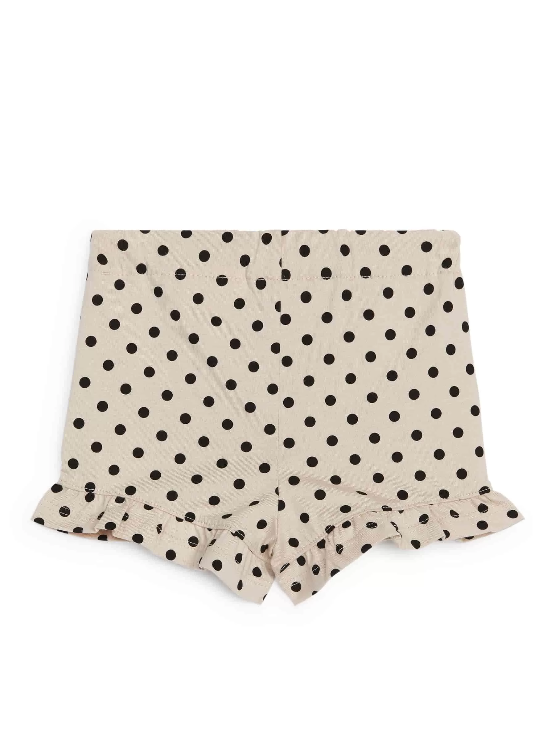 Mjuka jerseyshorts av bomull. Stylad med volangdetaljer i nederkant. Justerbara resårer i midjan.