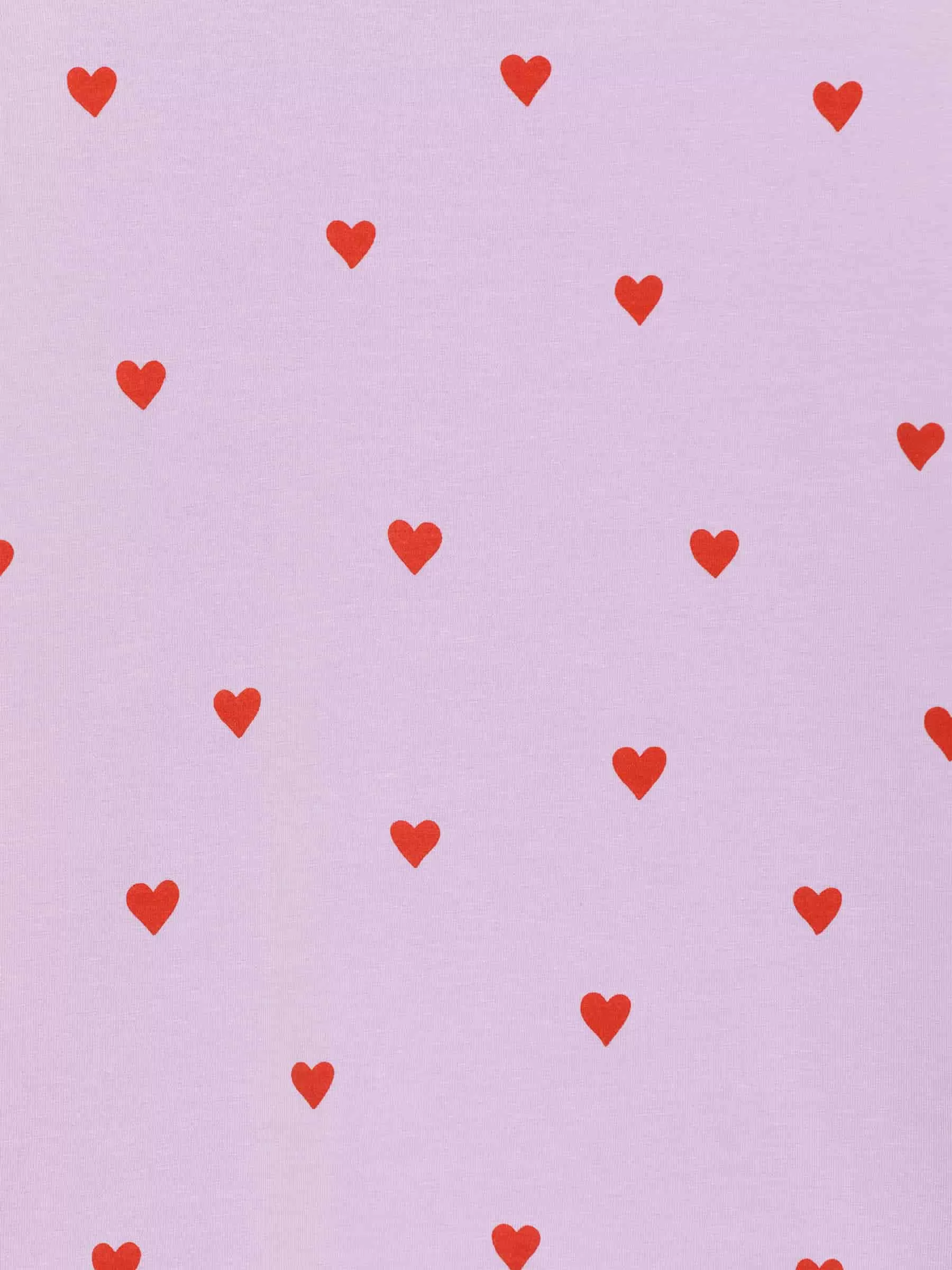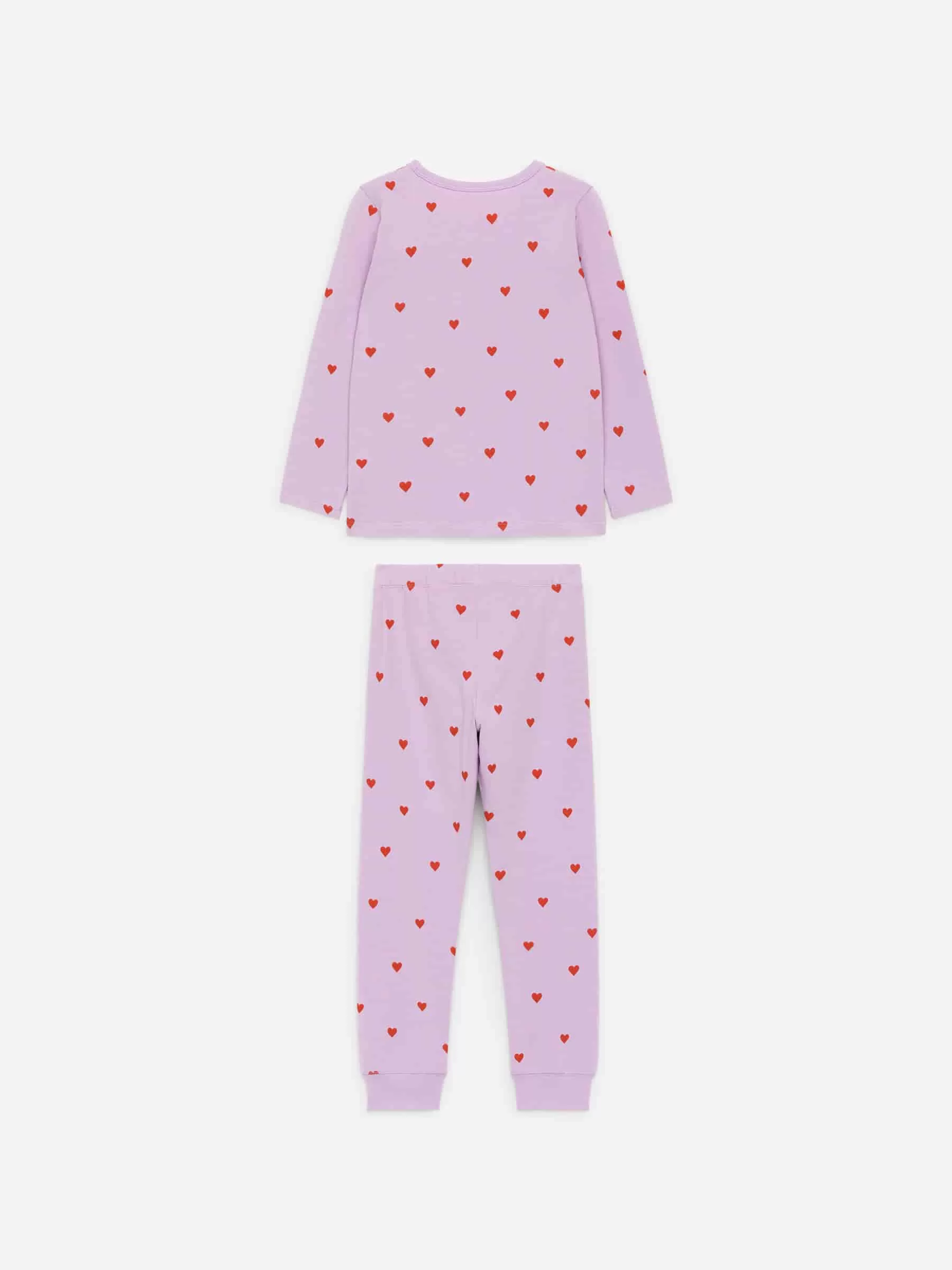 Den här tvådelade pyjamasen är sydd av ett mjukt jerseytyg i bomull. En rundad pyjamastopp med långa ärmar och byxor med resår i midjan. Ribbstickade muddar vid både ärmar och ben.