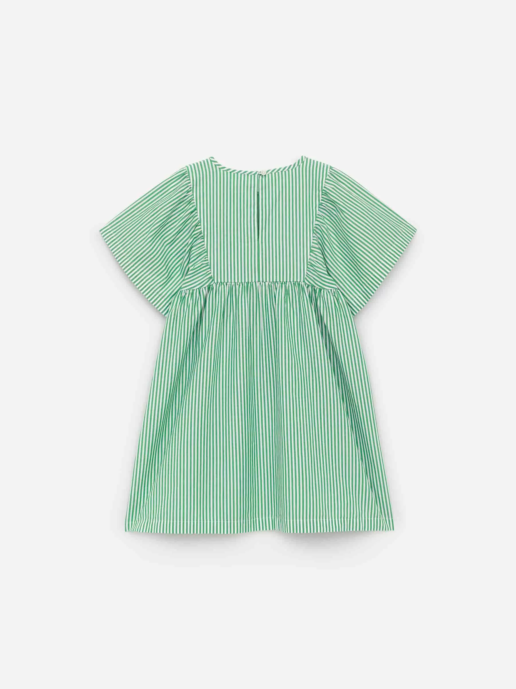 Sommarklänning sydd av en mjuk och krispig poplin. Med en A-linjeform är denna klassiska stil detaljerad med vida ärmar och knappar mitt bak.