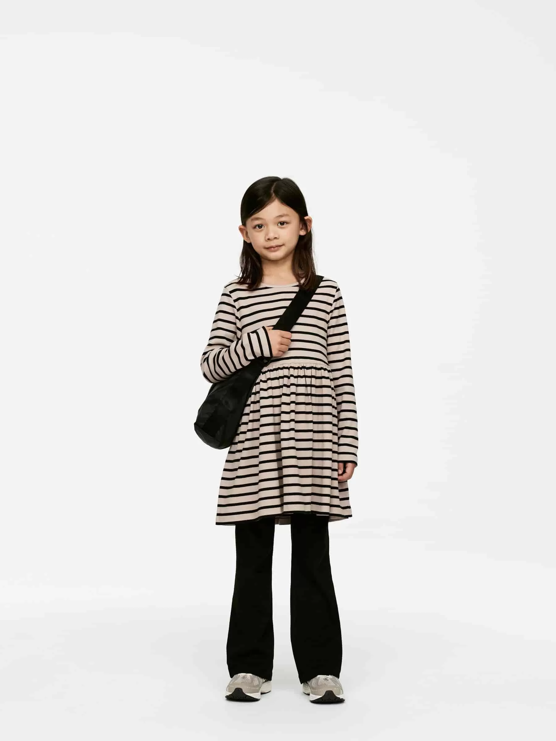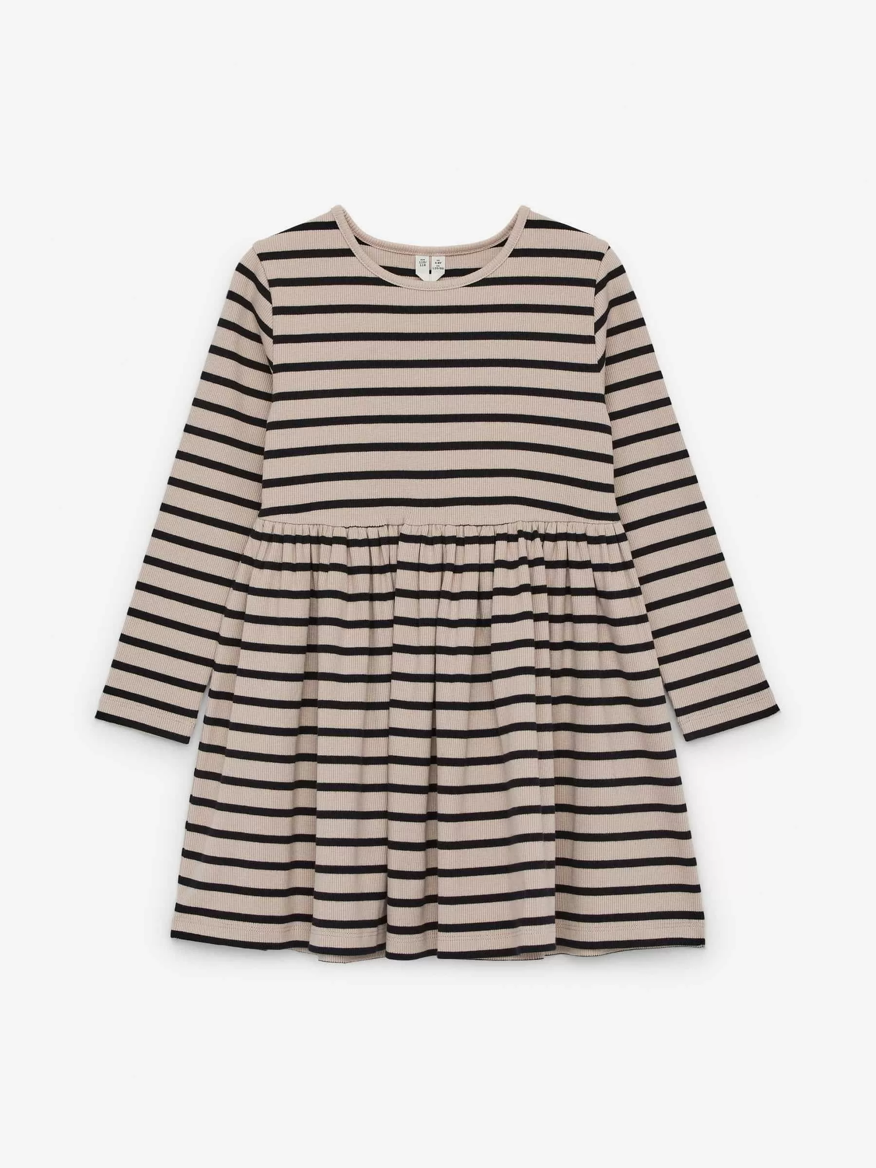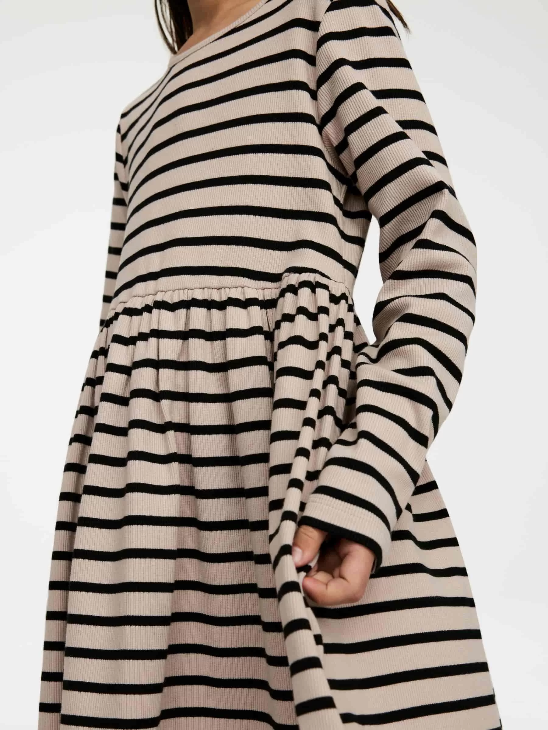 ARKE Barn Klänning med ribbad bomull Svart/Beige