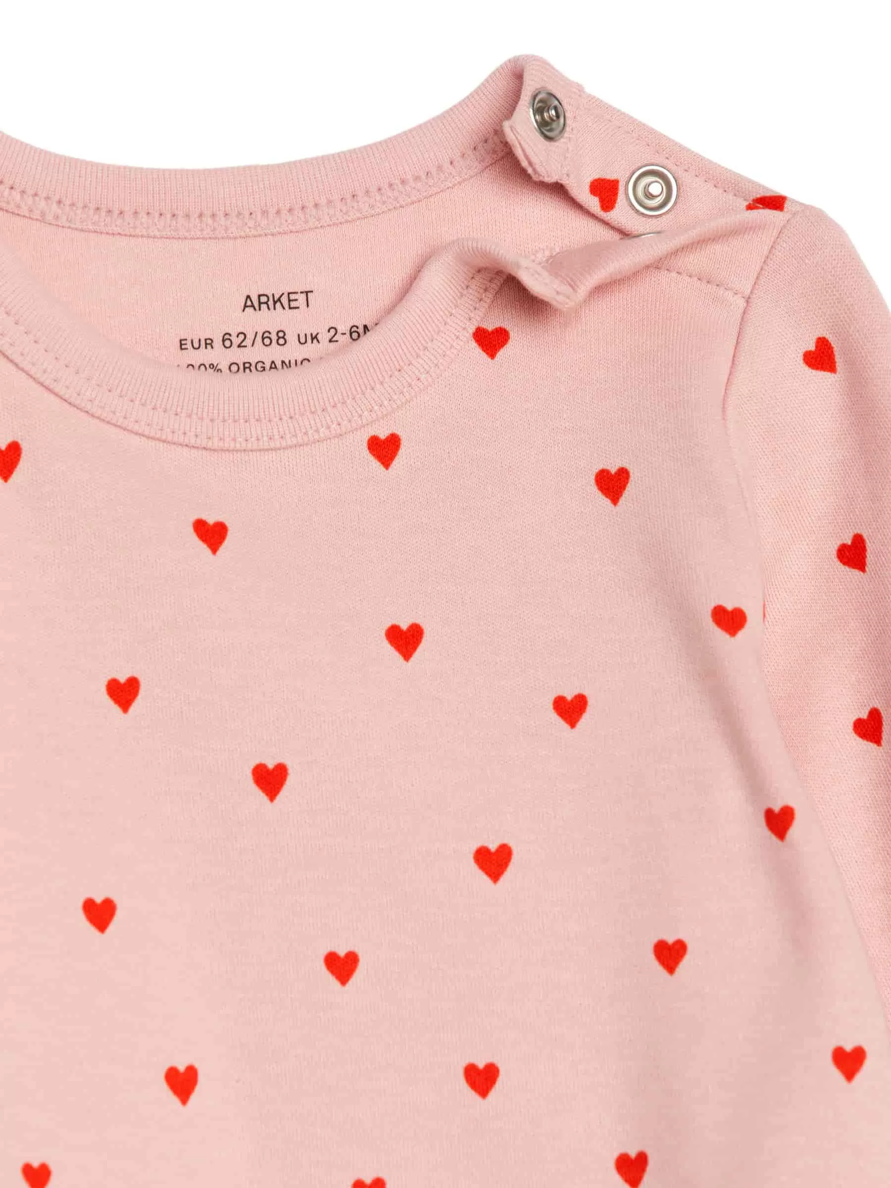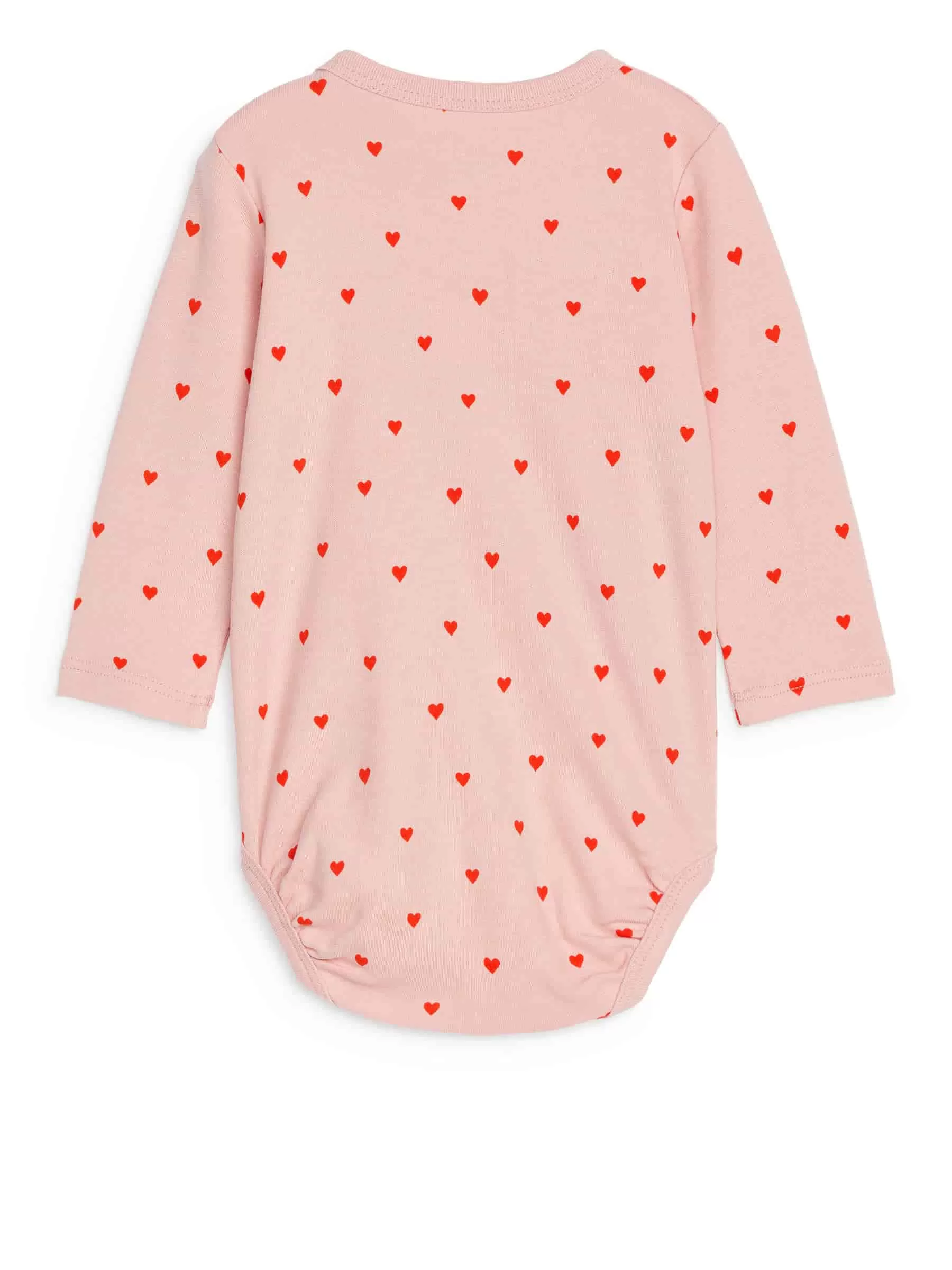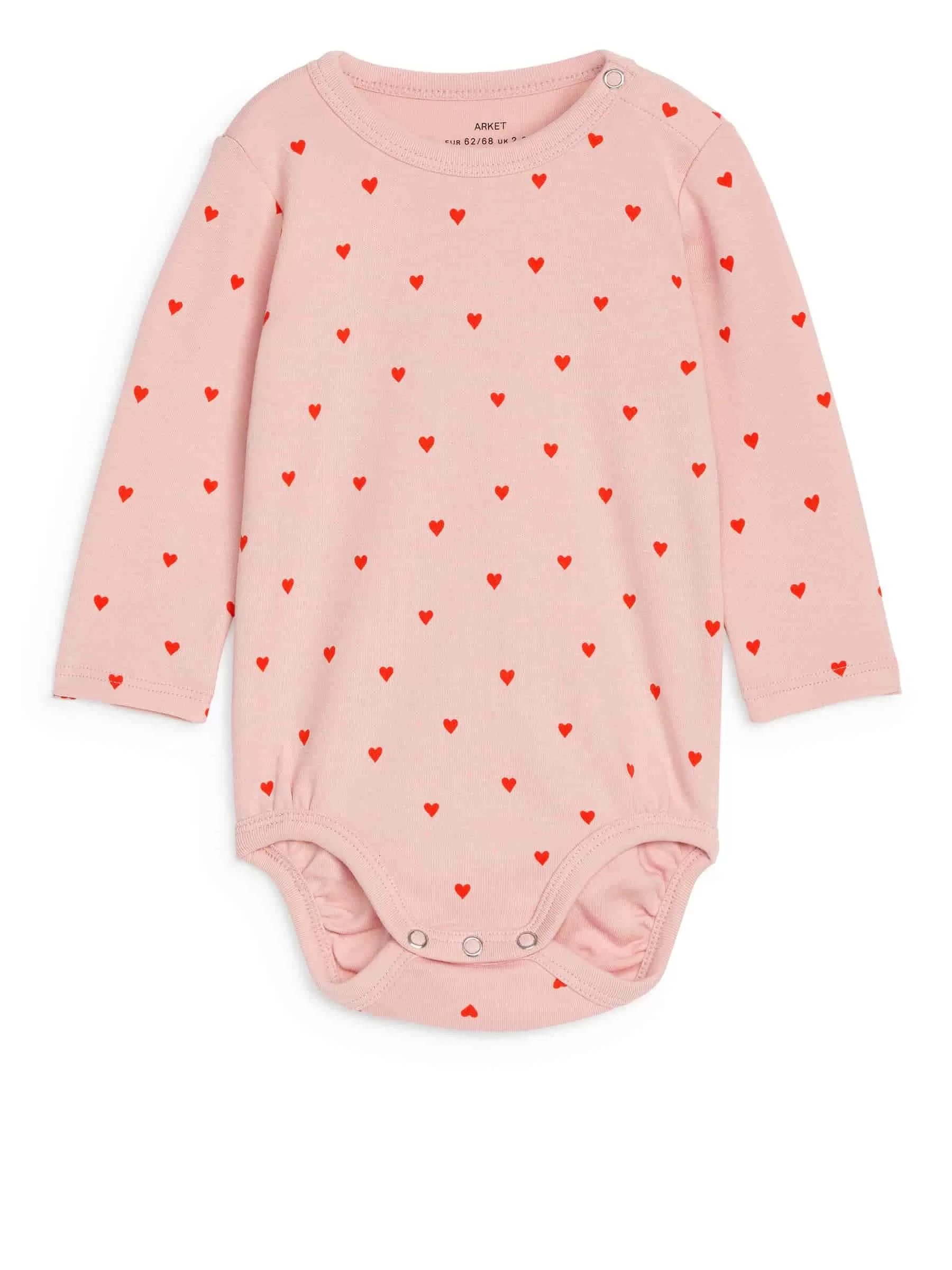 Långärmad body i mjuk bomullsjersey. Tryckknappar på axeln och i grenen gör det enkelt att klä på sig och byta om.