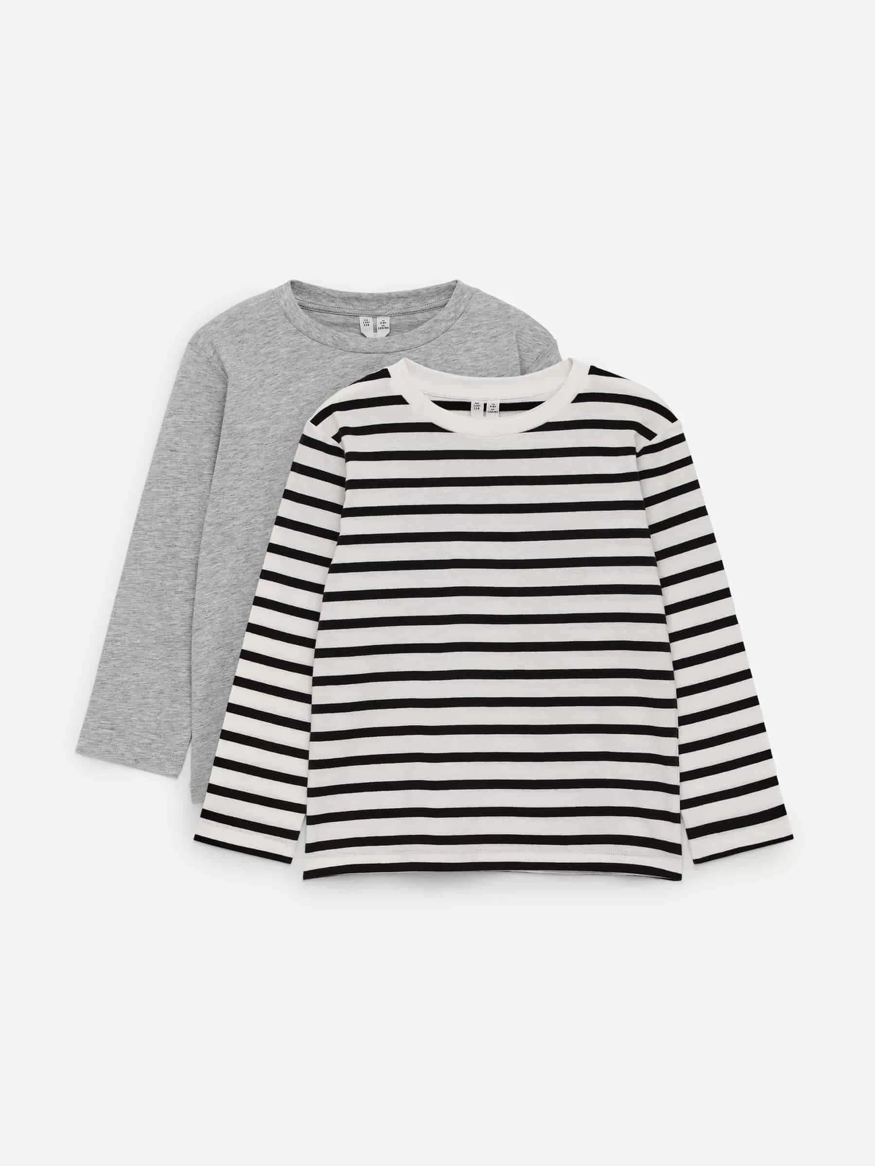 Långärmad T-shirt gjord av mjuk bomullsjersey. Klippt för en normal passform och säljs i ett set om två.