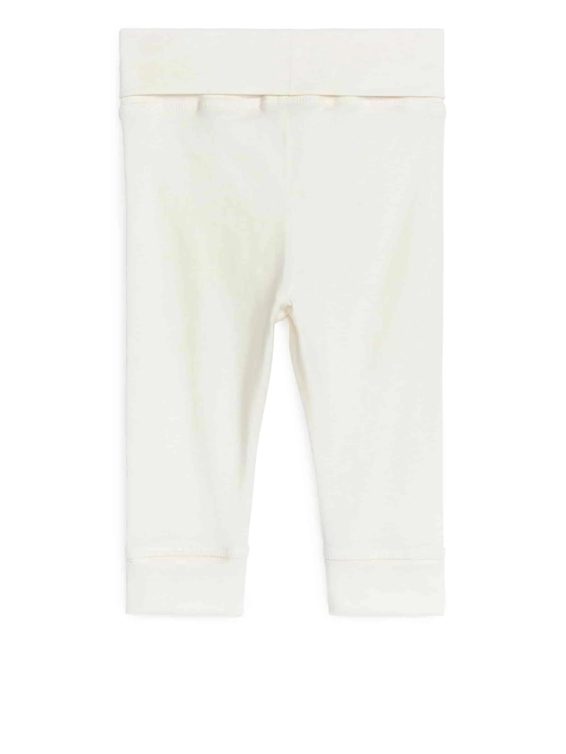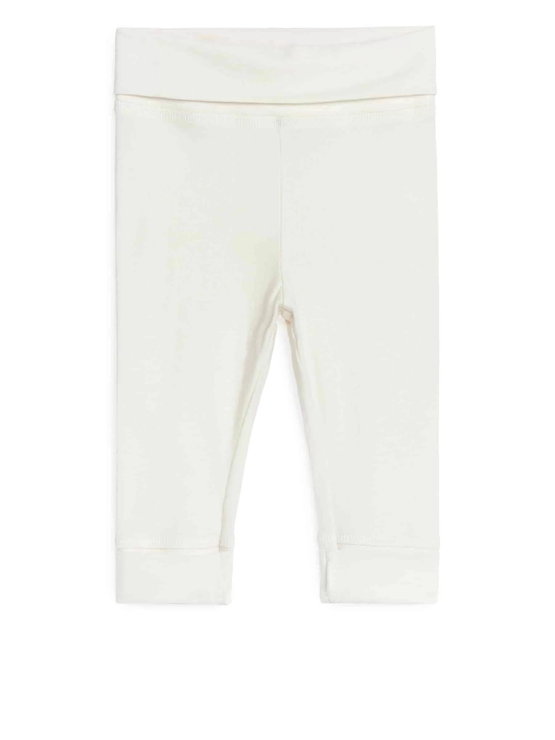 Leggings för det nyfödda barnet. Tillverkad av en ultramjuk, stretchig bomullsjersey med en borstad yta för en persikoliknande känsla. Midjeband och ärmslut är vikta för möjlighet att justera längd och passform.