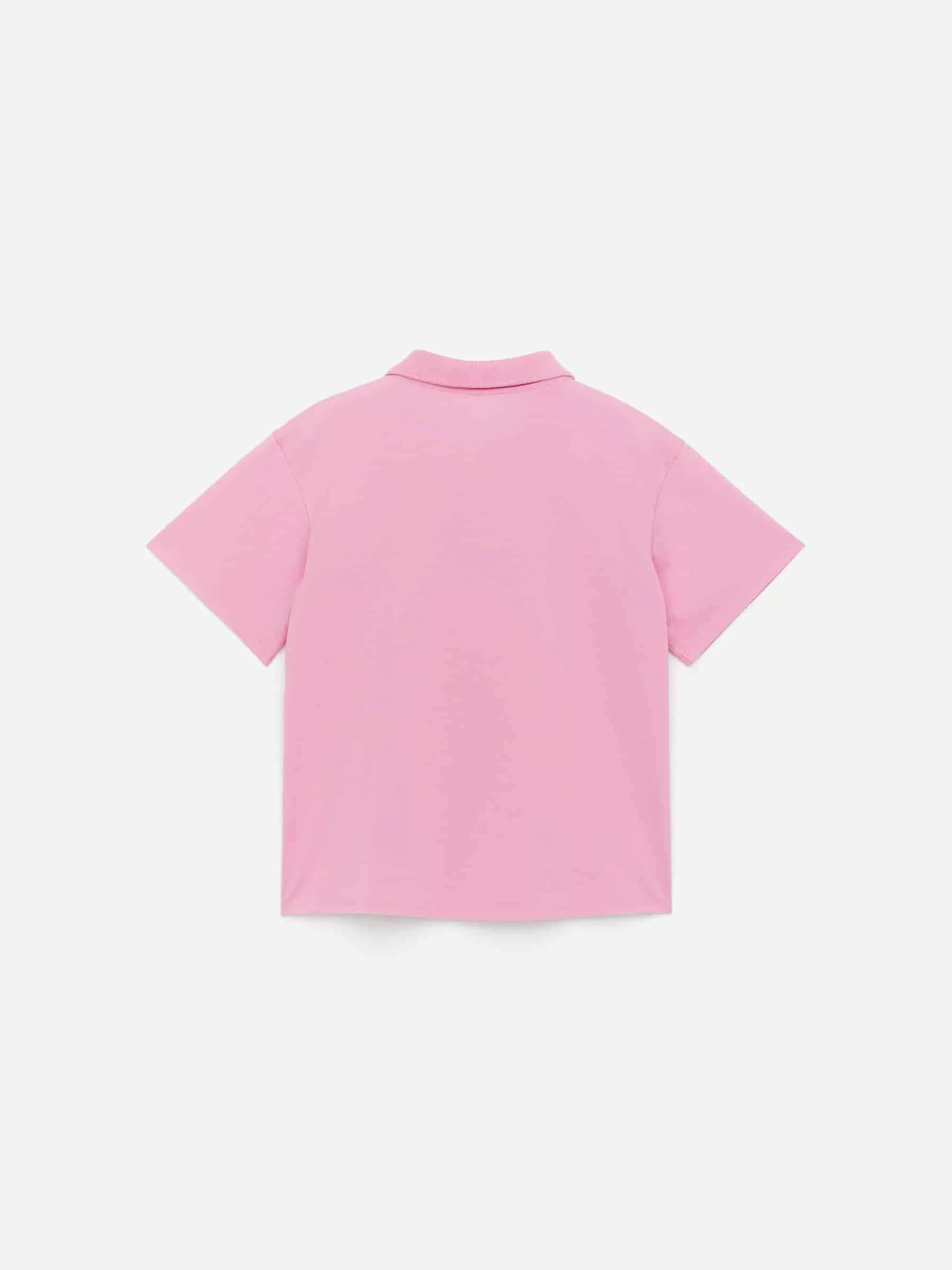 Kortärmad pikétröja med lätt tappade axlar skuren av en pikéstickad bomullsjersey. Detaljerad med ribbad krage, sidoslitsar och knappslå.