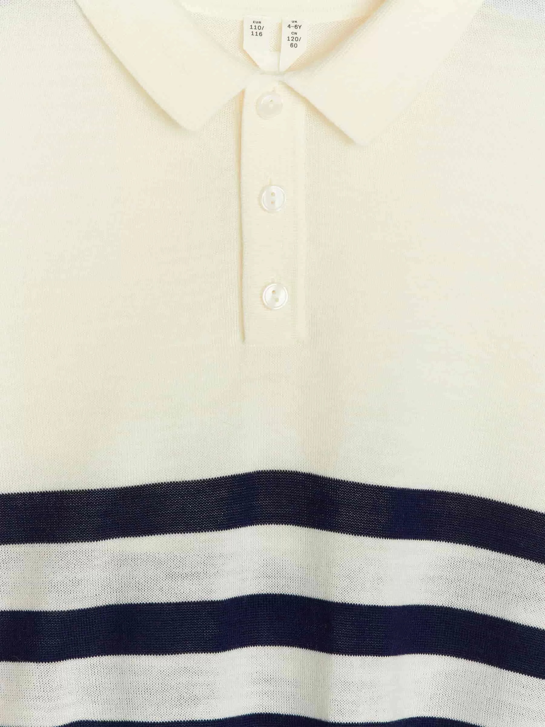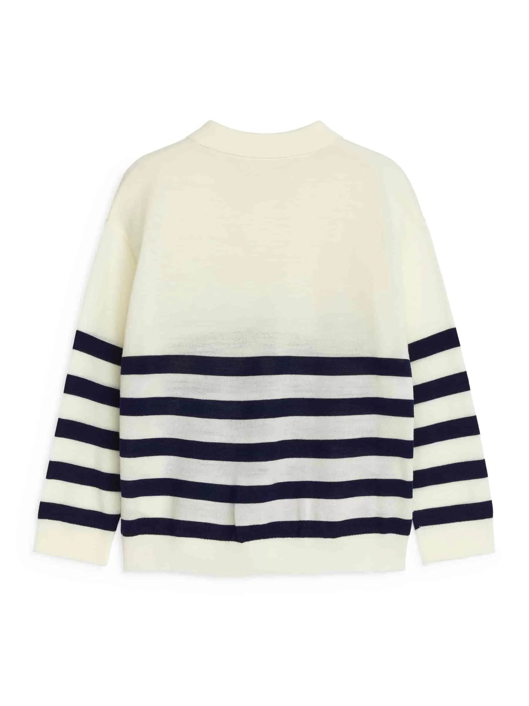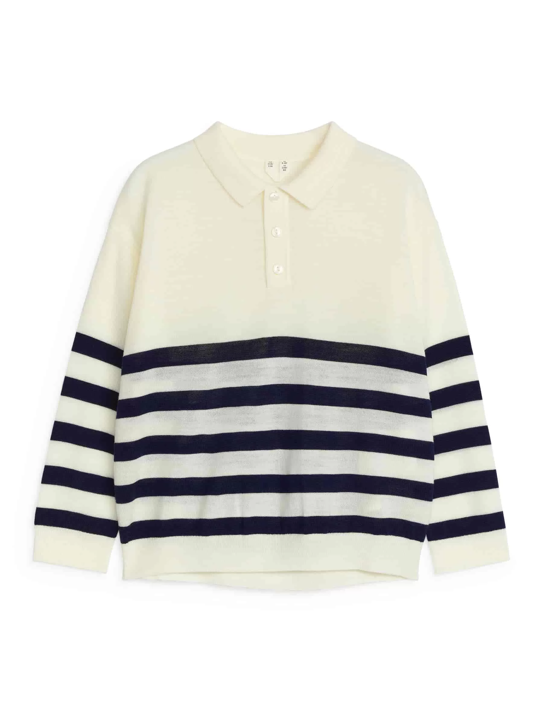 Stickad pikétröja tillverkad av ull. Stylad med långa ärmar, halvknäppning och ribbad kant. Avslappnad passform. Tröjan innehåller 100 % RWS-ull (TE-00047206). Produkter certifierade enligt Responsible Wool Standard (RWS) innehåller ullfibrer från gårdar som är oberoende certifierade enligt kraven på djurskydd och markförvaltning.