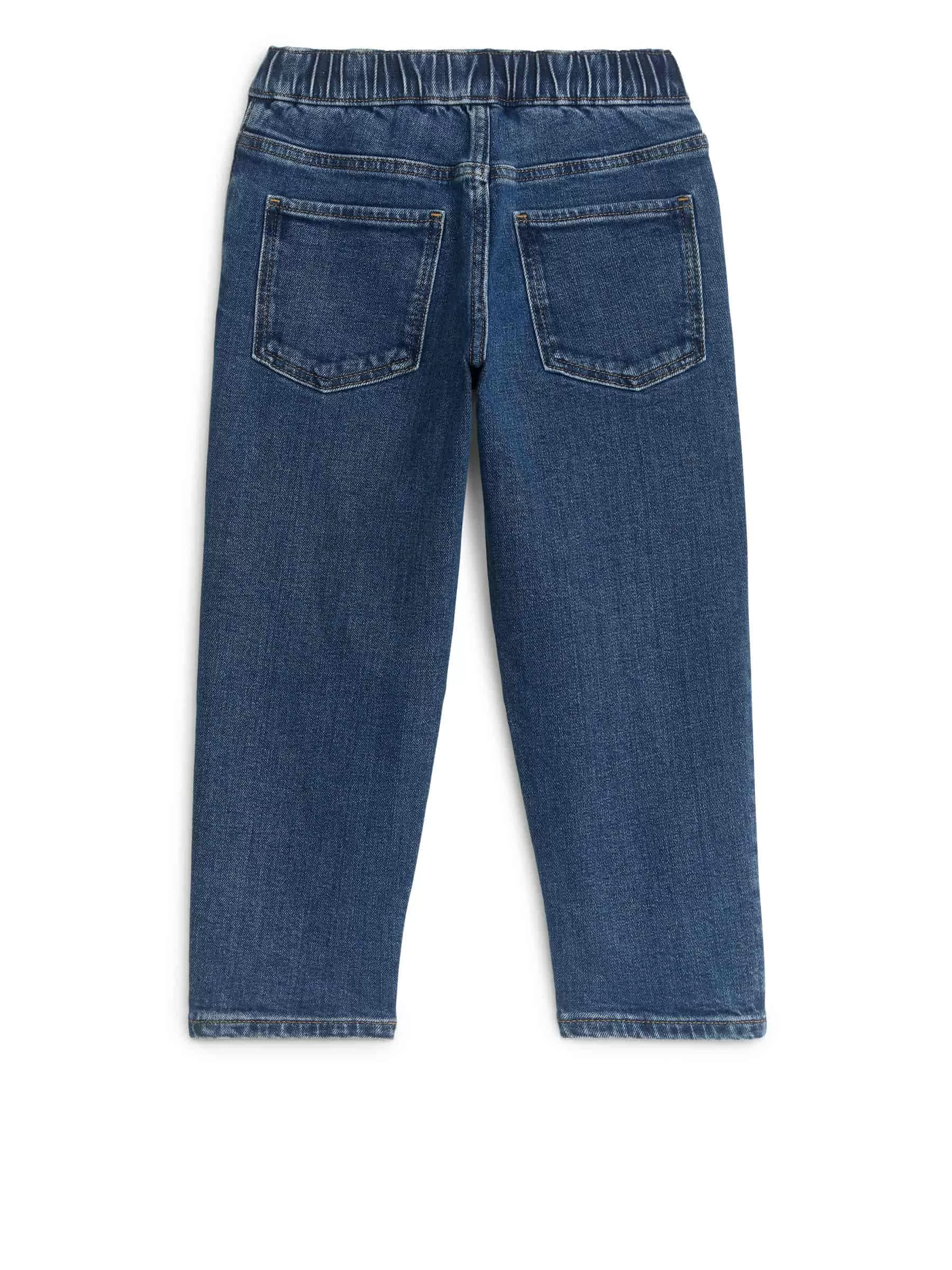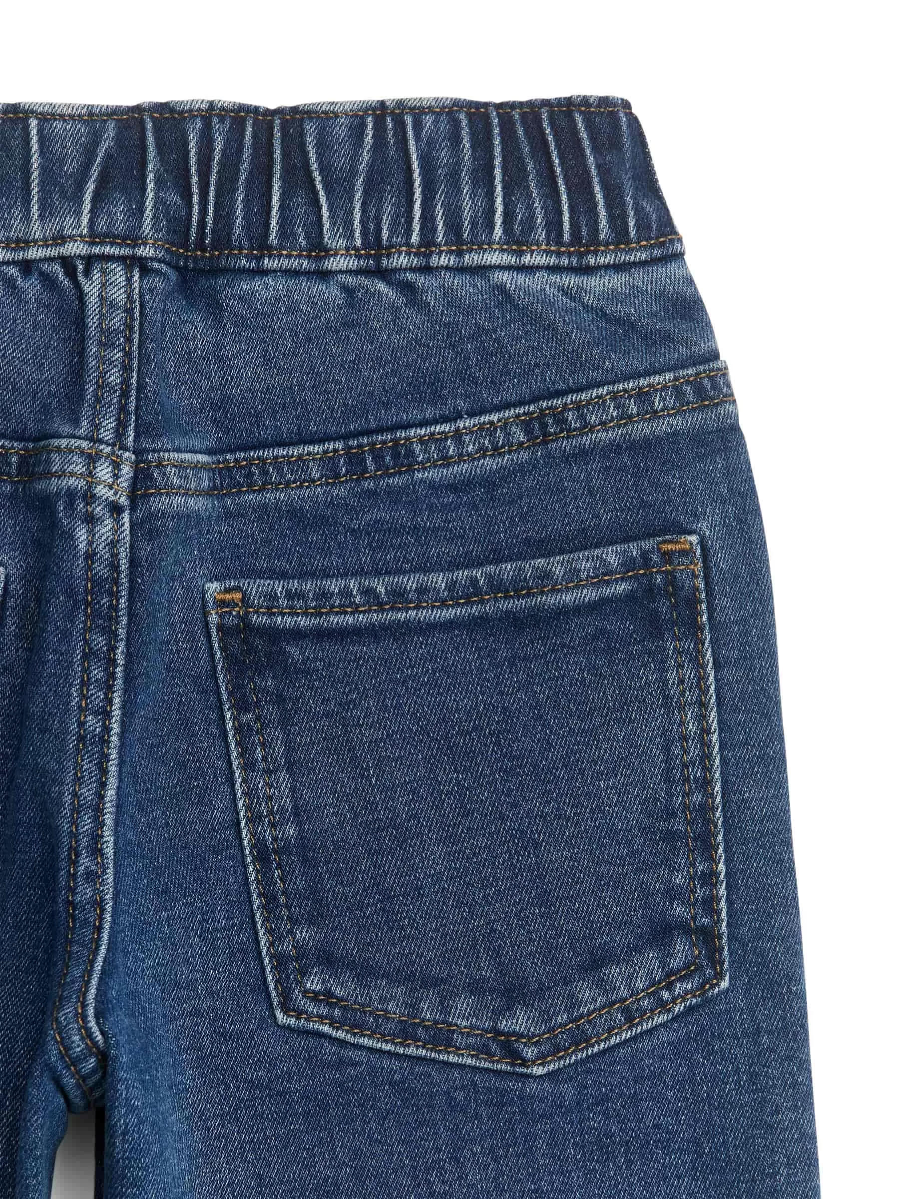 Pull-on jeans i vid passform med raka ben. Elastiskt midjeband, dragkedja och fickor fram och bak.