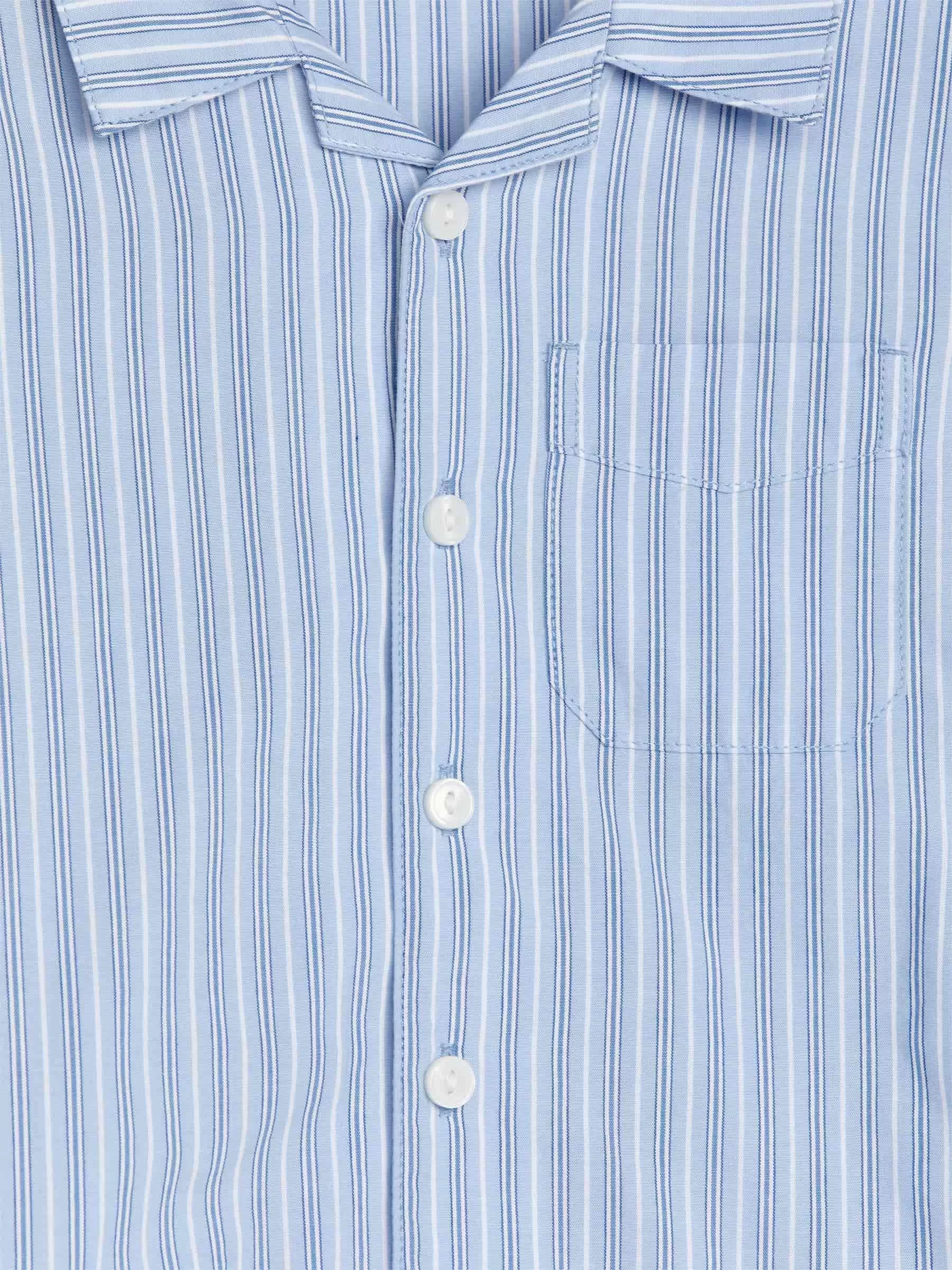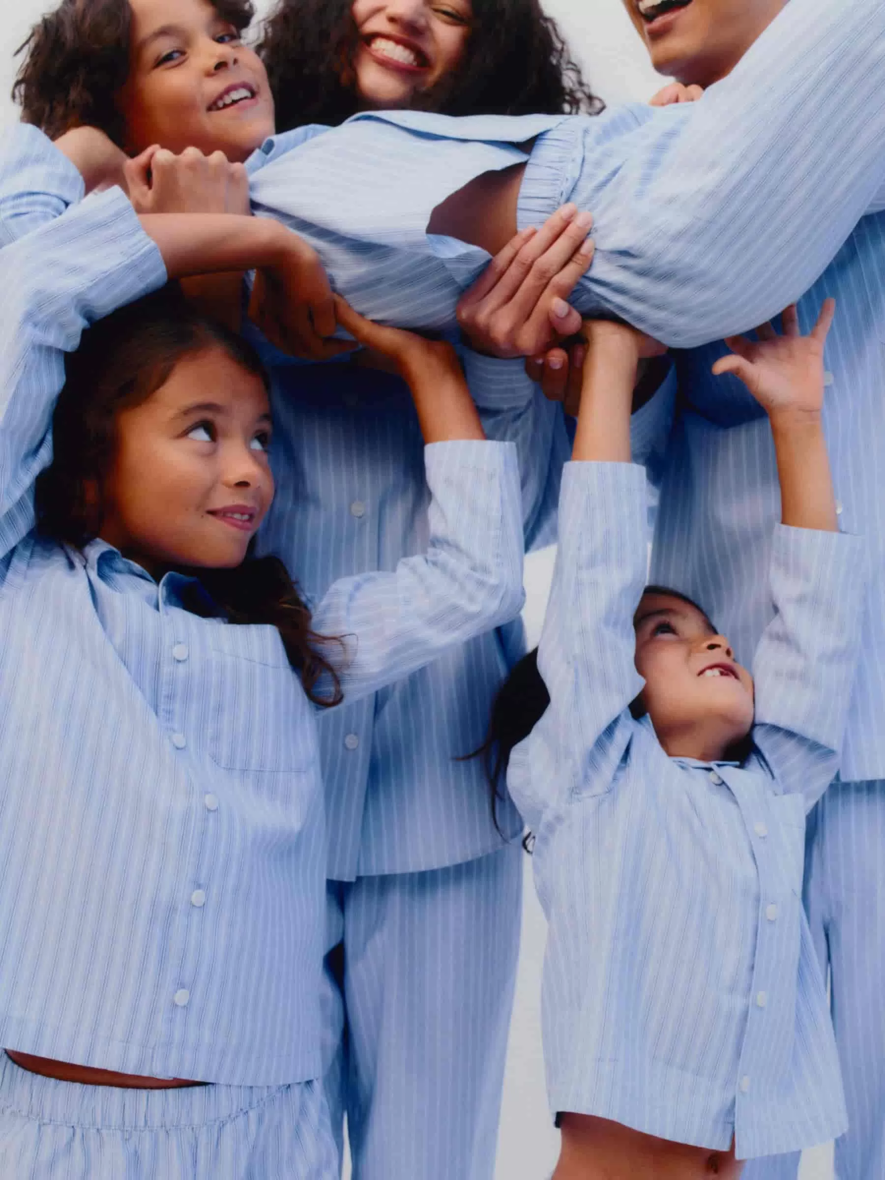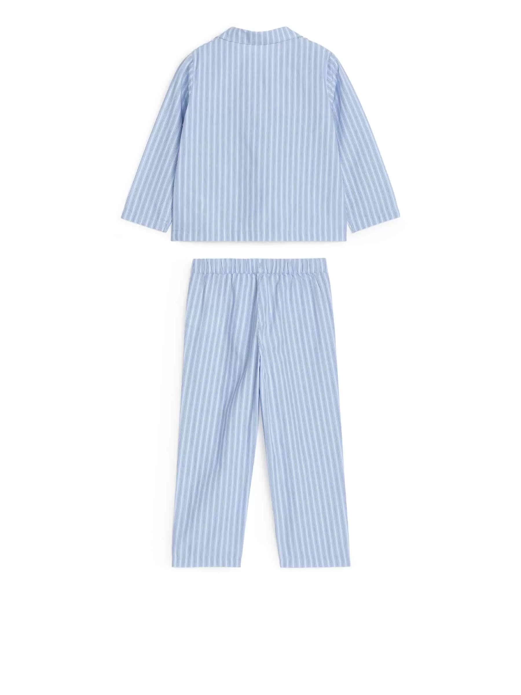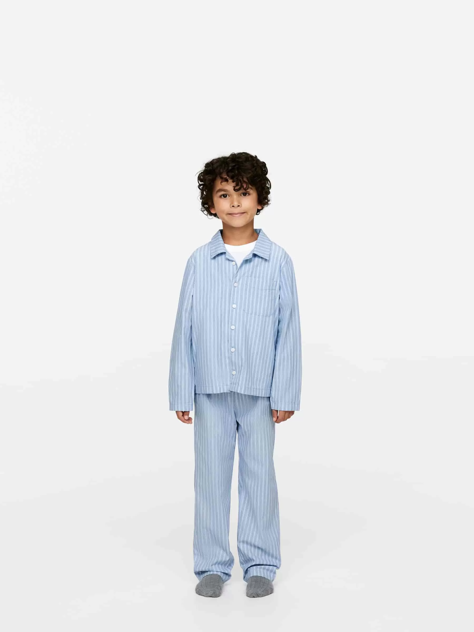 Pyjamasset med långärmad skjorta med knäppning och en enkel bröstficka och byxor med resår i midjan. Normal passform.