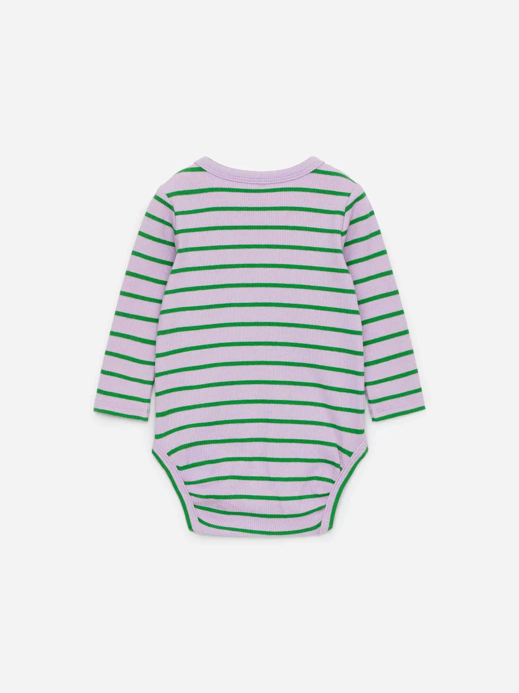 ARKE Barn Ribbstickad långärmad body Lila/grön