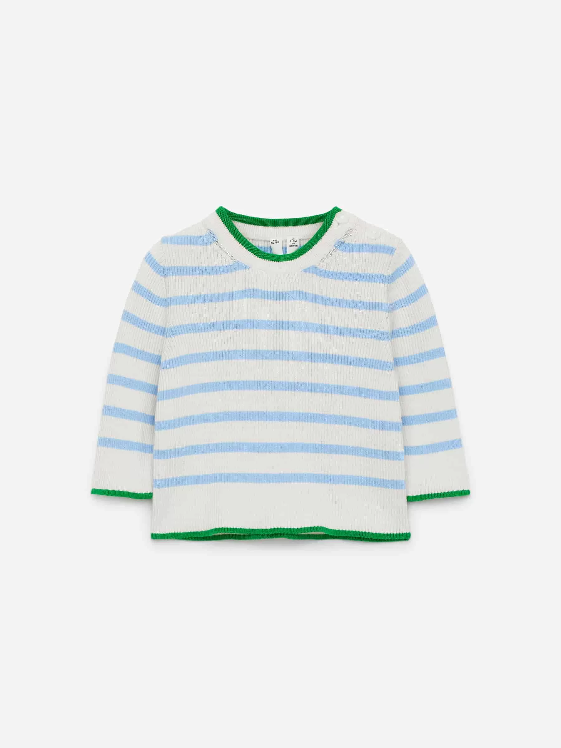 ARKE Barn Ribbstickad tröja för nyfödd Blå/Off White/Grön