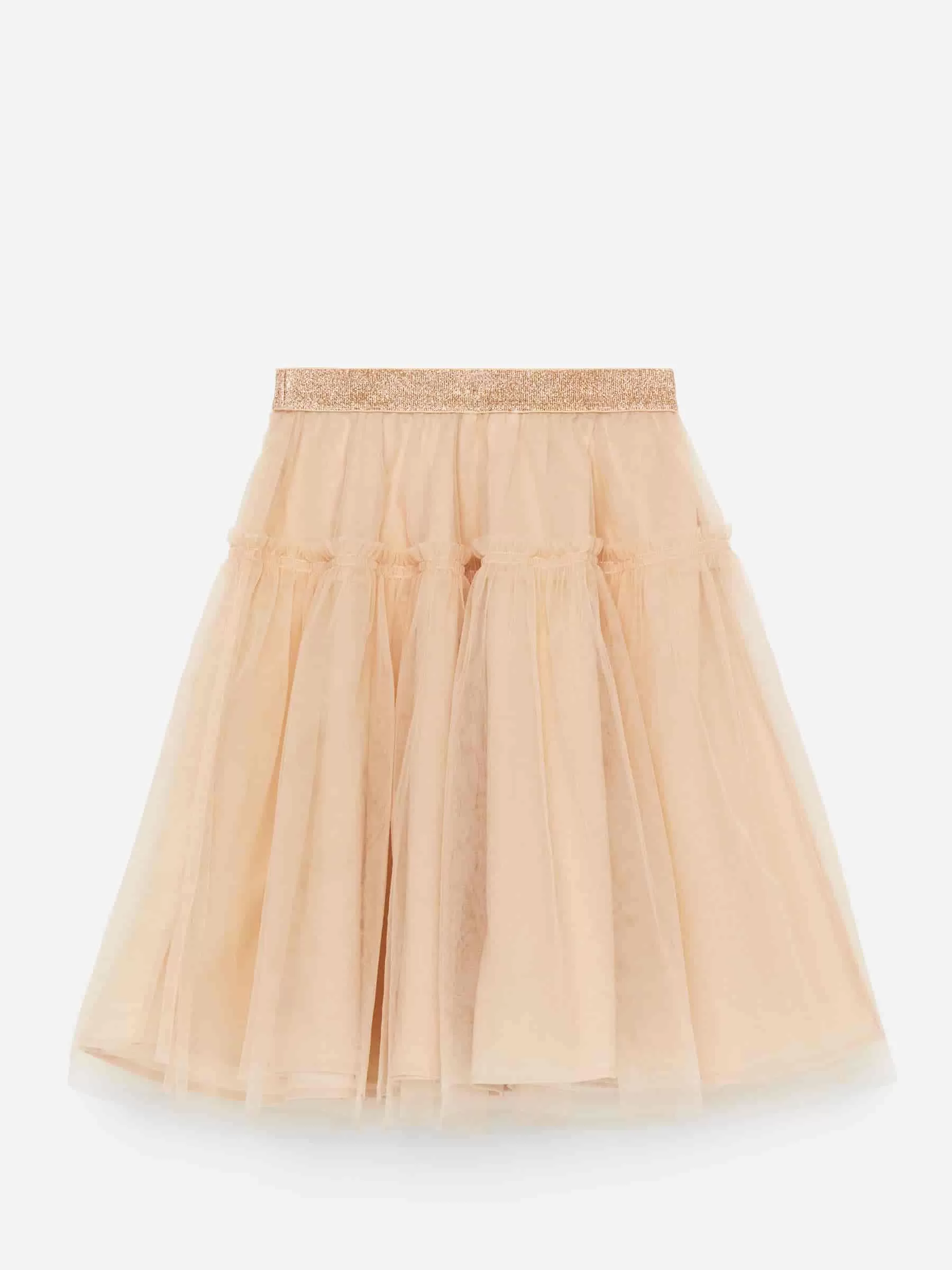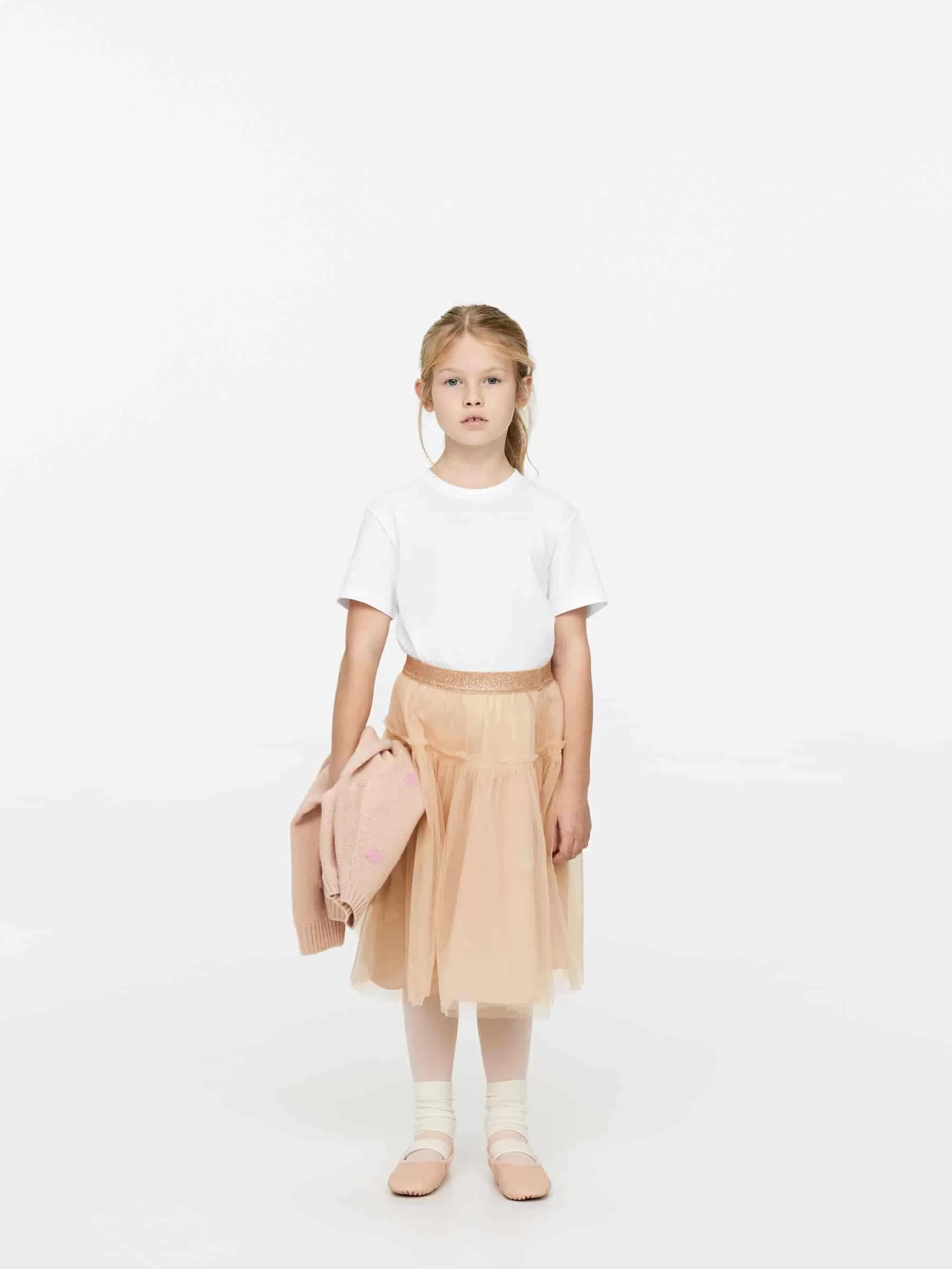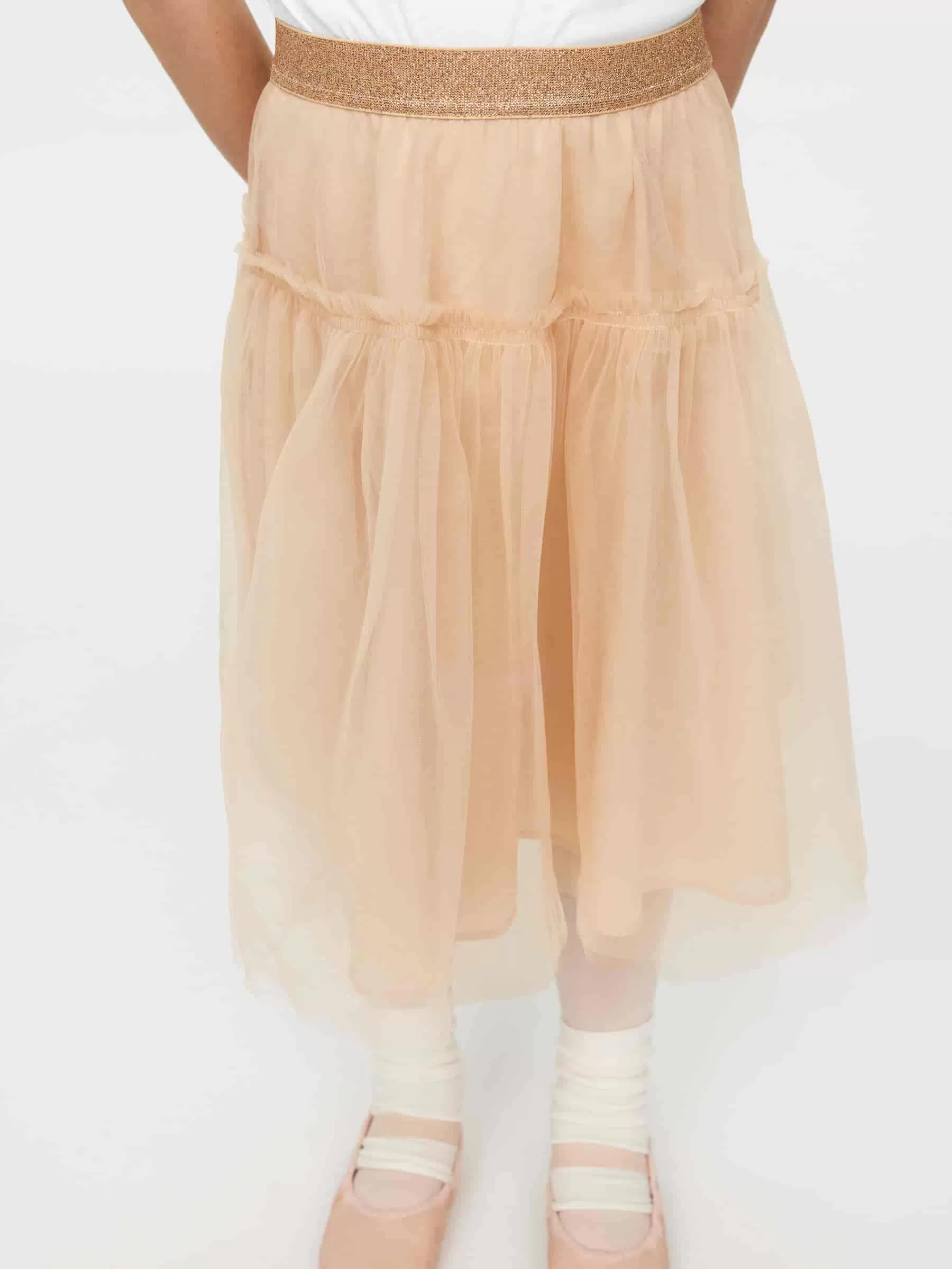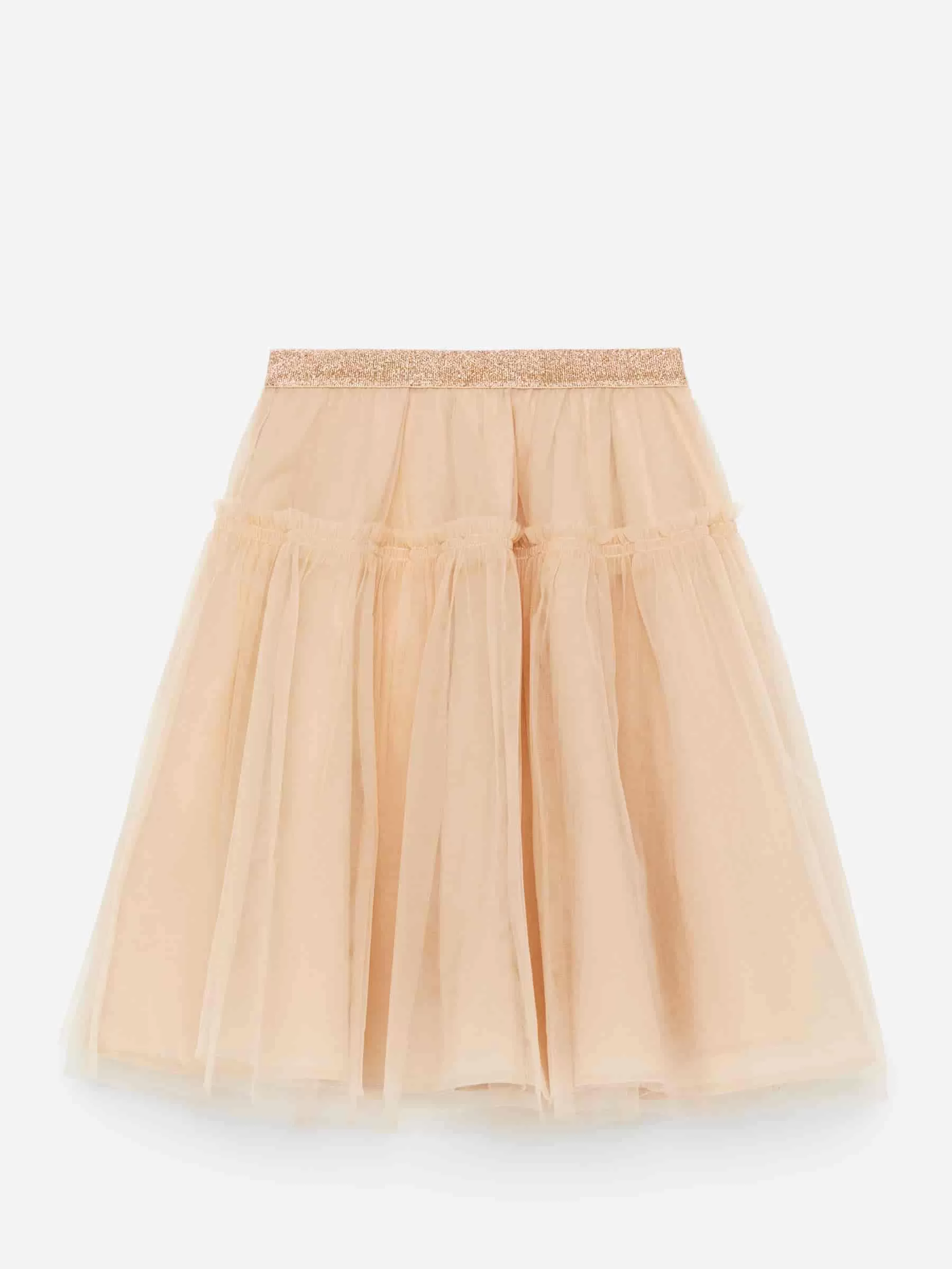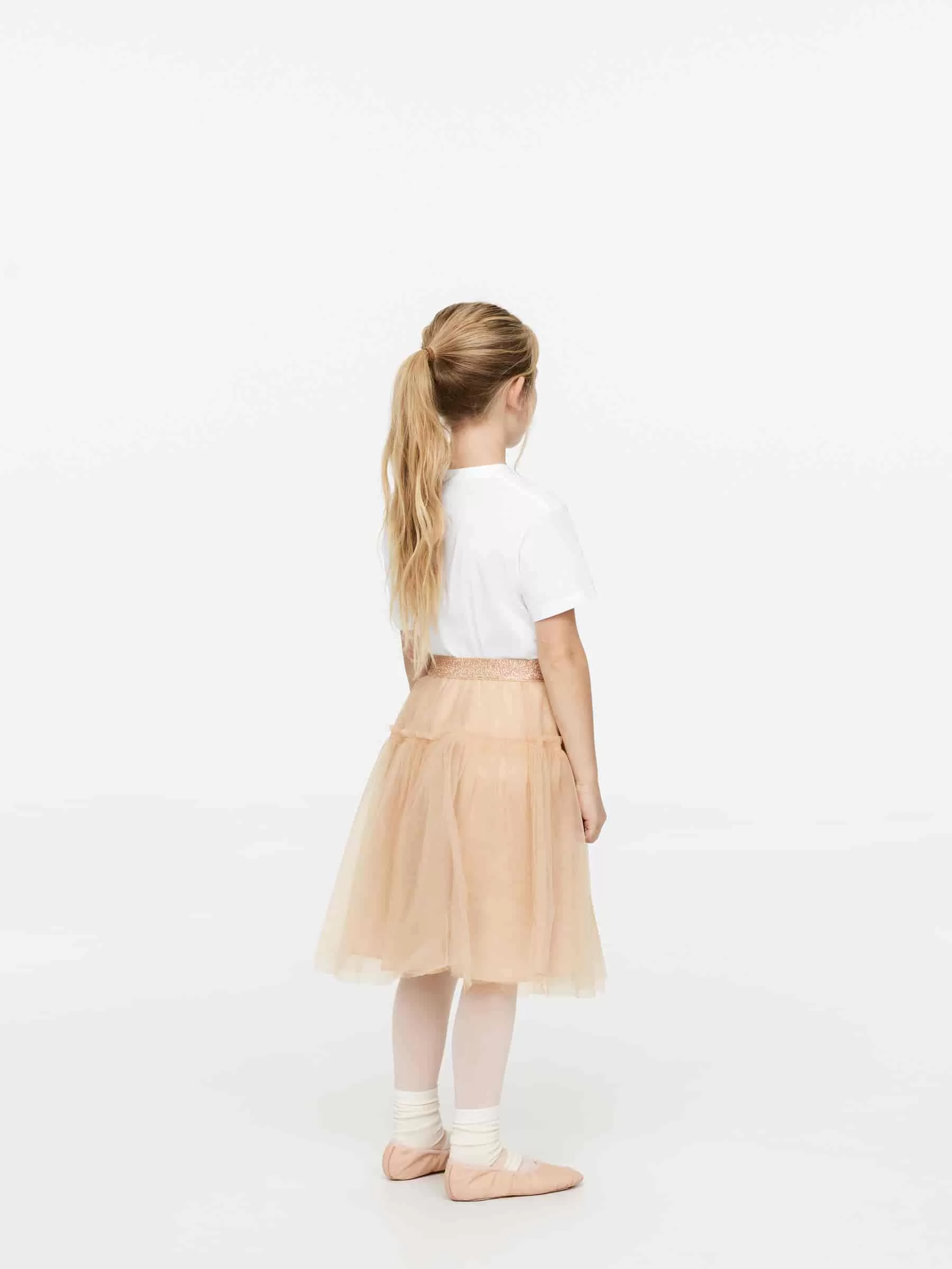 Tyllkjol med resår i midjan. Råa kanter. Fodrad.