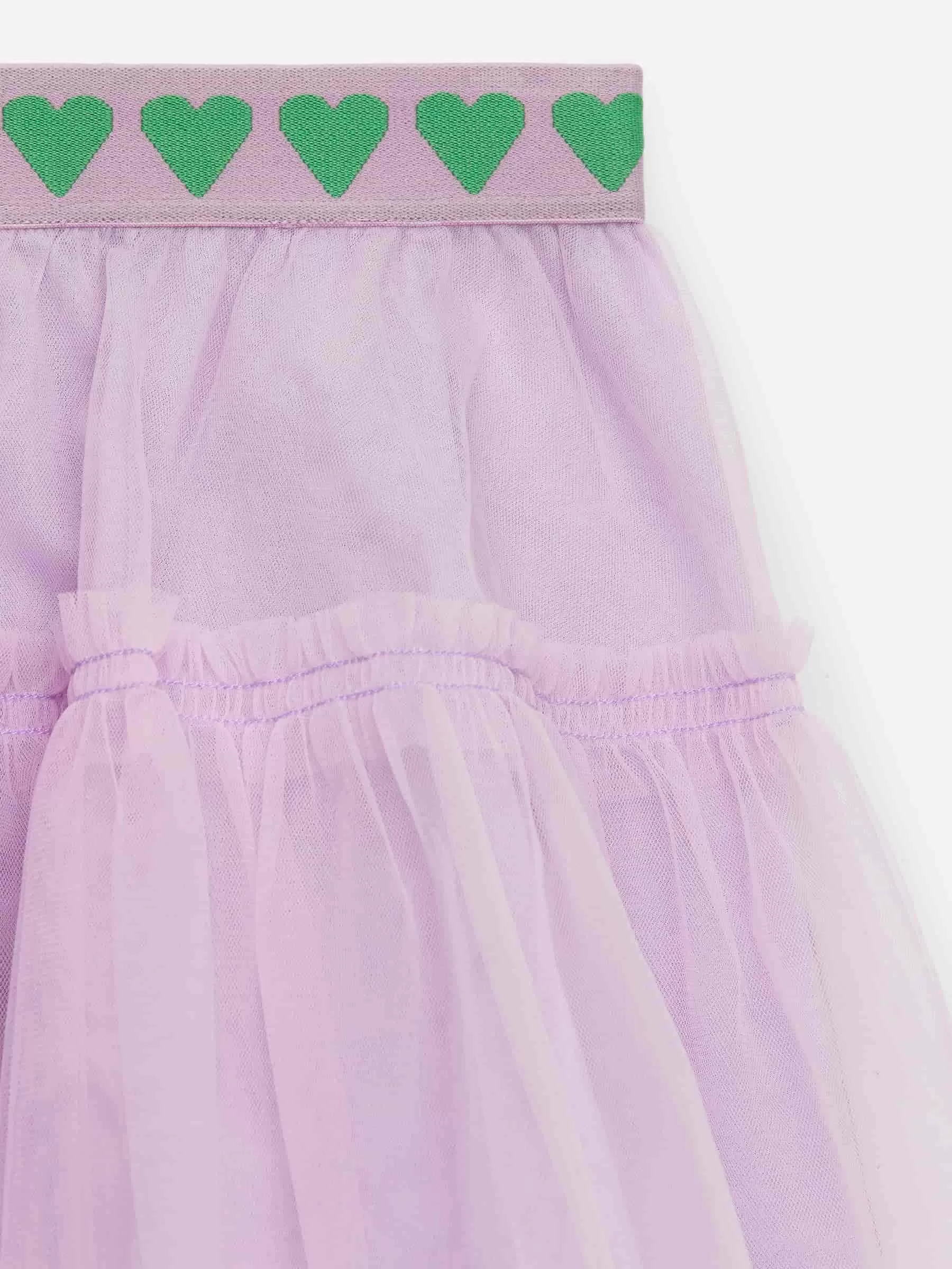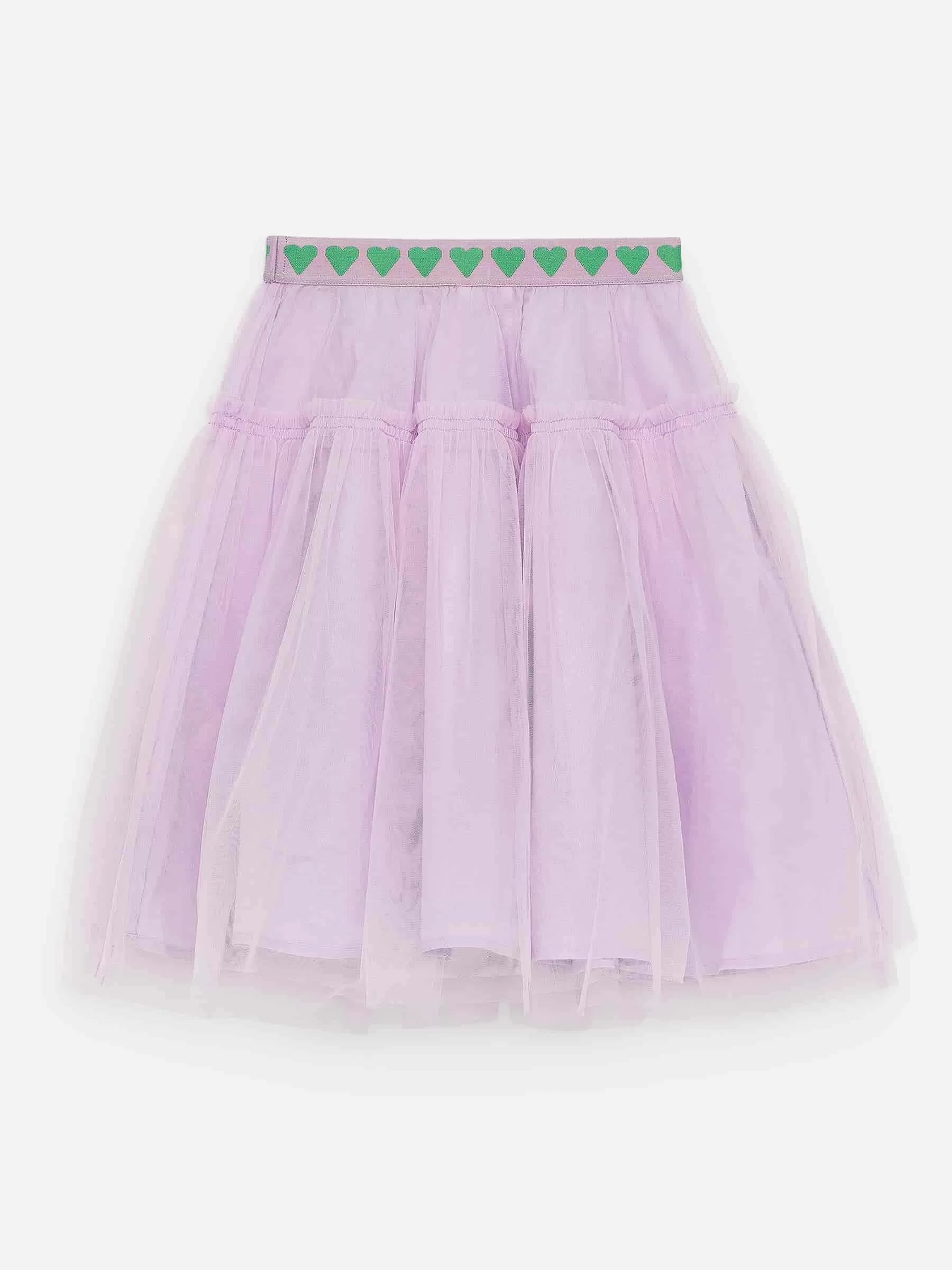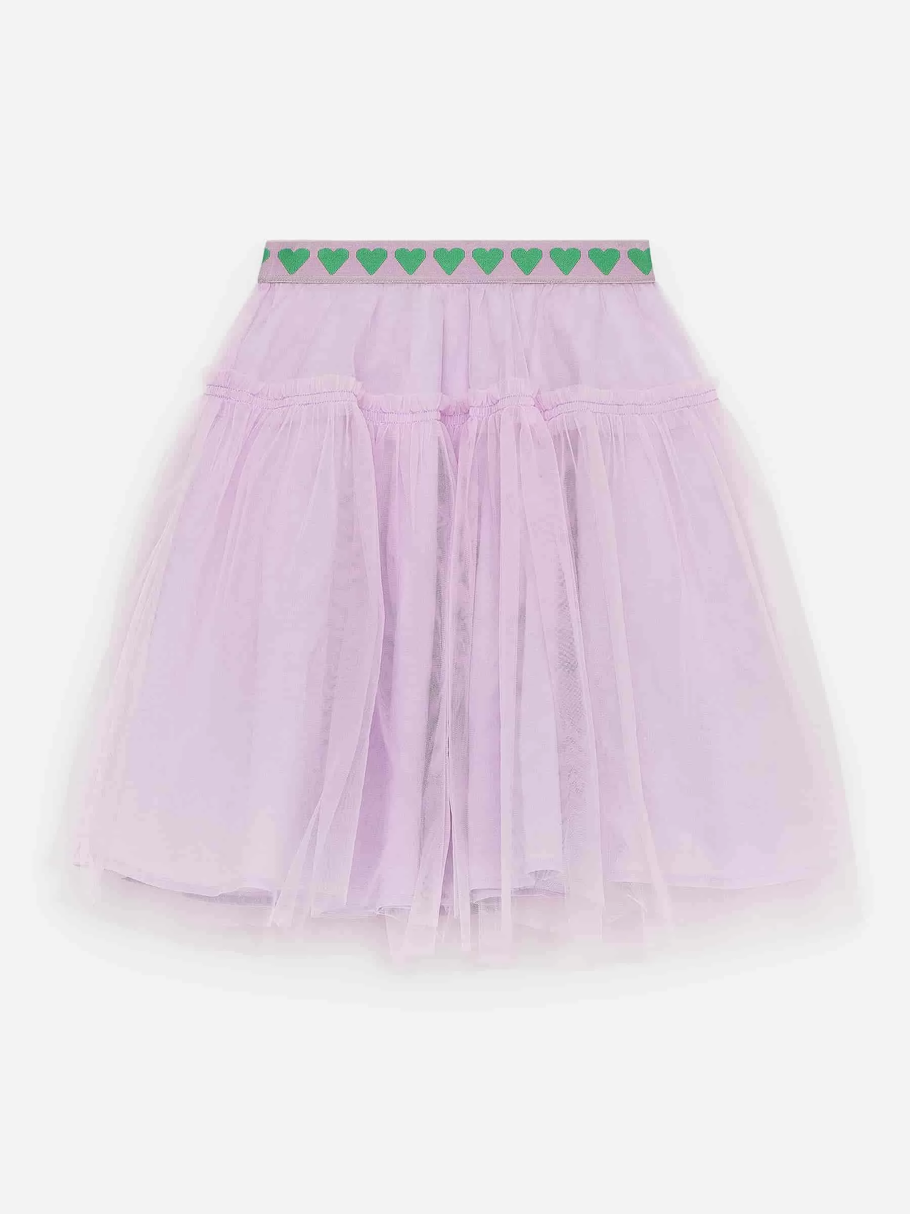 Tyllkjol med resår i midjan. Råa kanter. Fodrad.