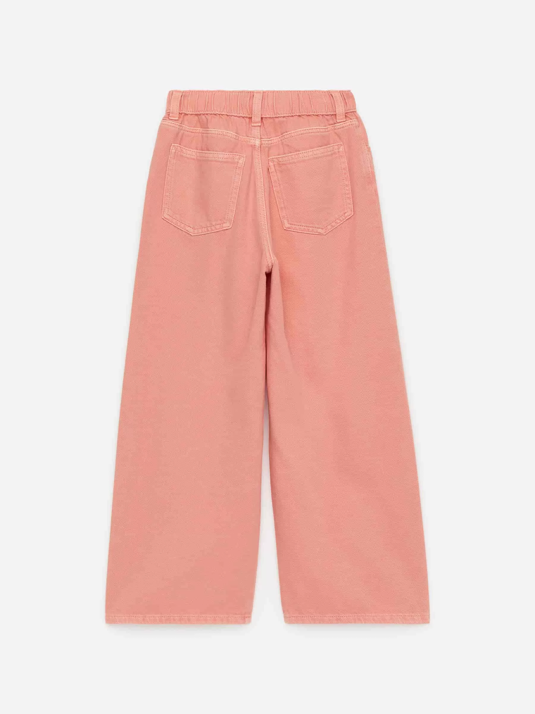 Vida jeans i tvättat bomullstyg. Justerbara resårer i midjan. Fickor fram och bak samt bälteshällor.