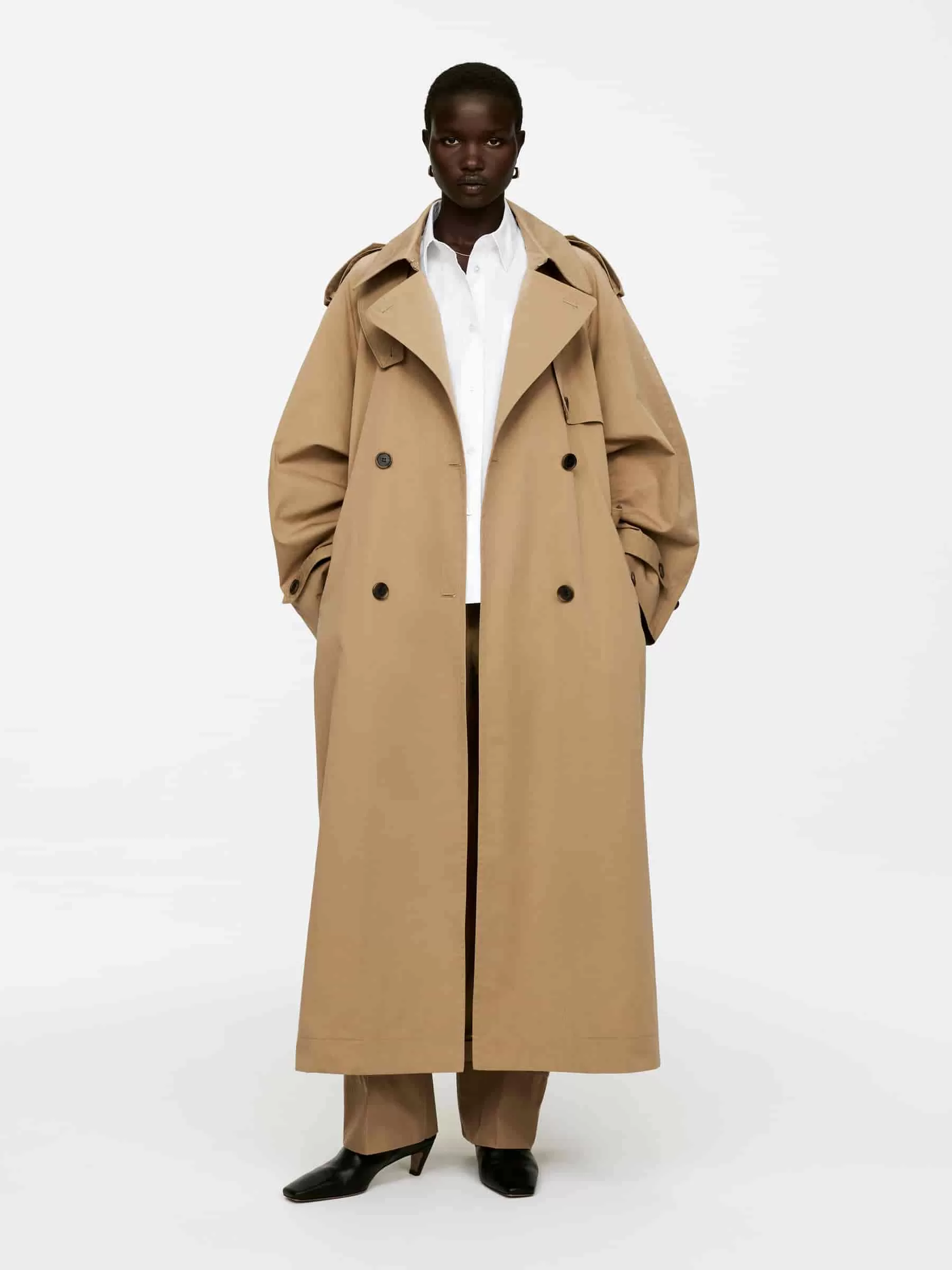 Klassisk trenchcoat tillverkad av en bomullsblandning. En oversize stil med ett skärp med öljetter och foder vid ärmar. Denna jacka är en del av ARKET 2-in-1 Series™, ett system av funktionella skallager och isolerande foder som kan bäras antingen som individuella plagg eller fästas i varandra.