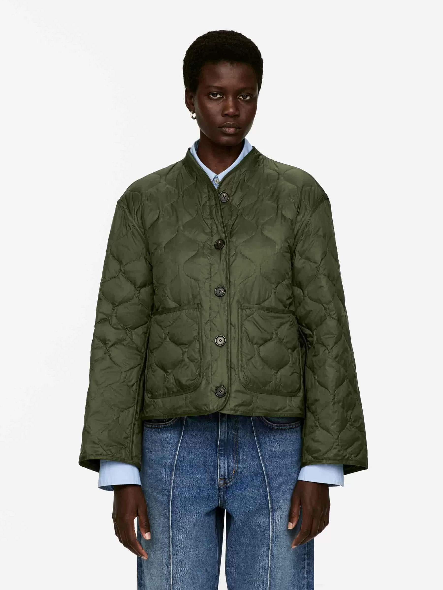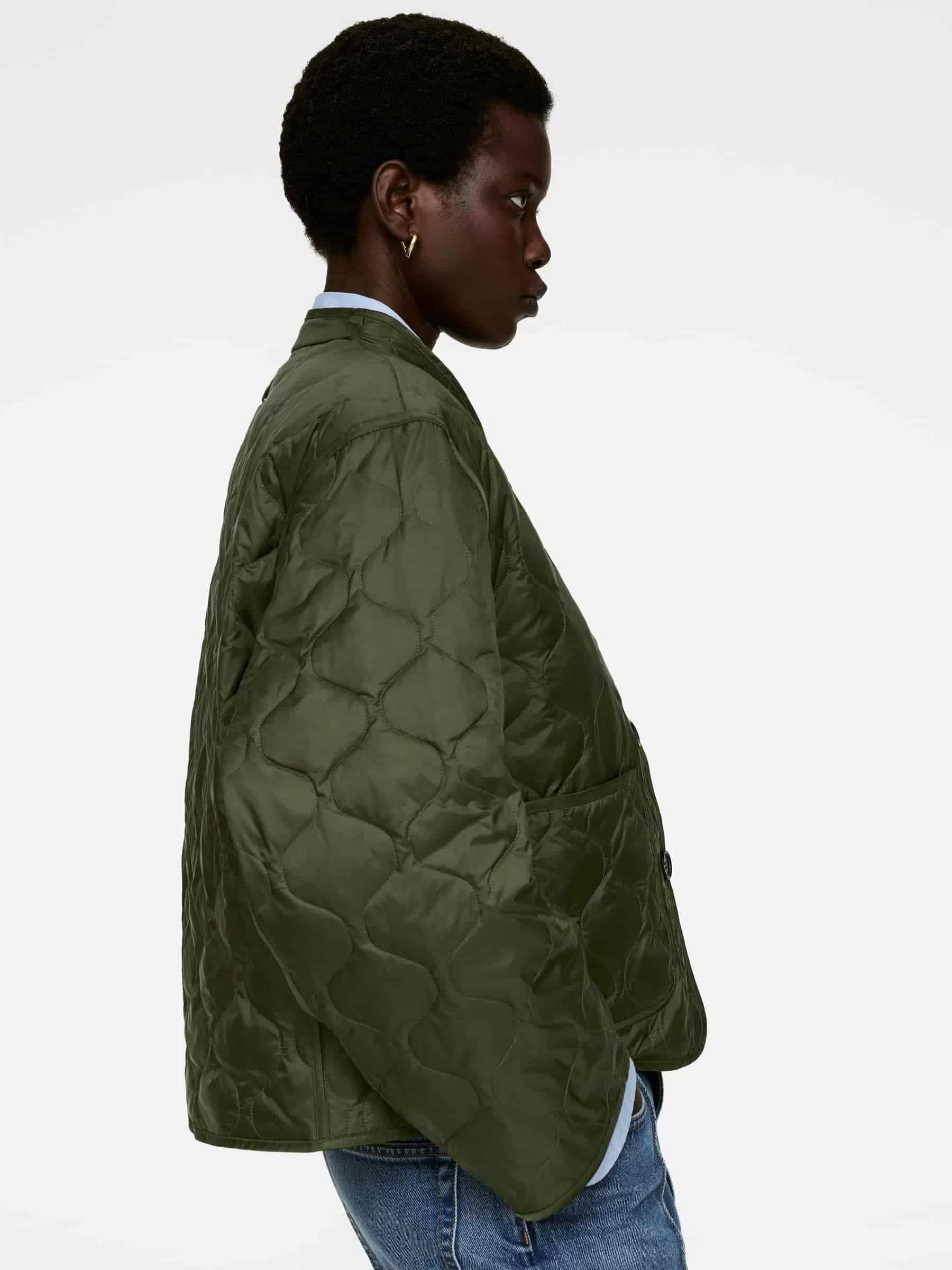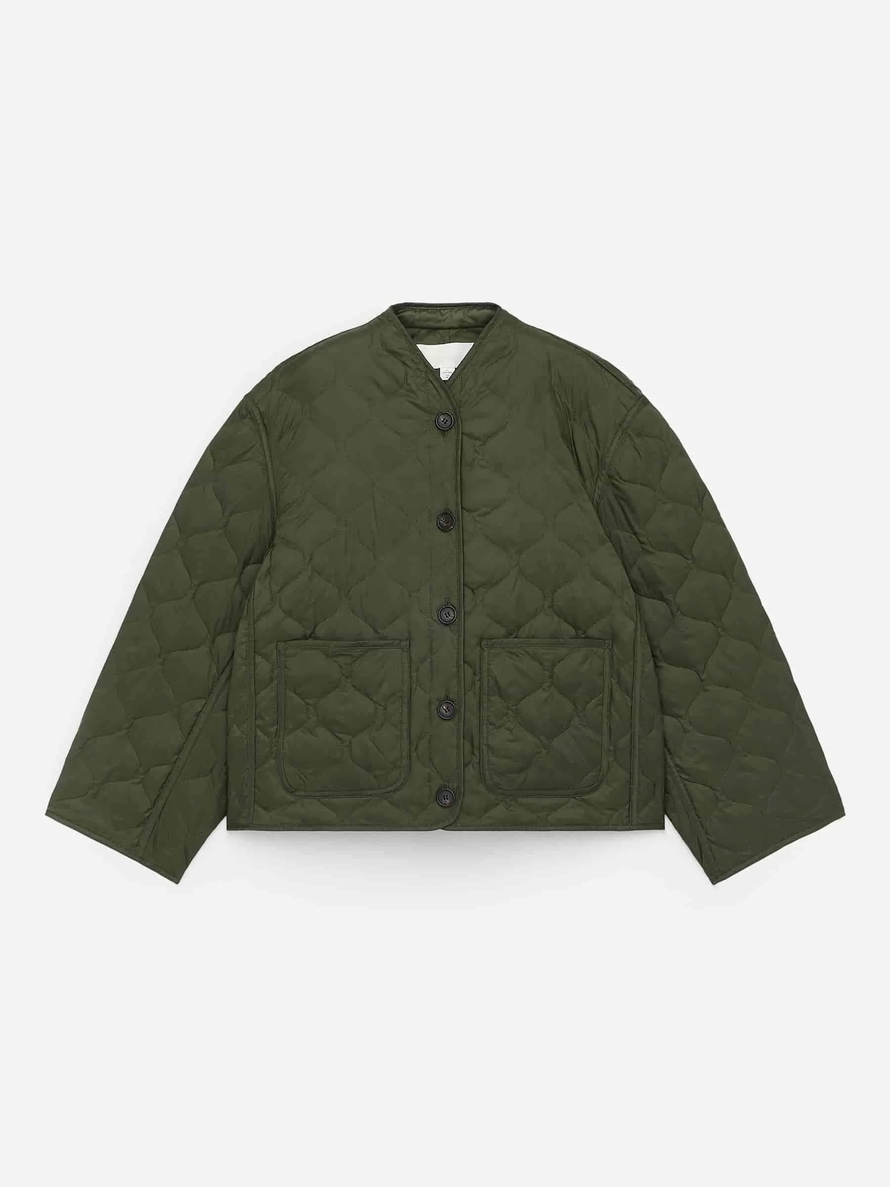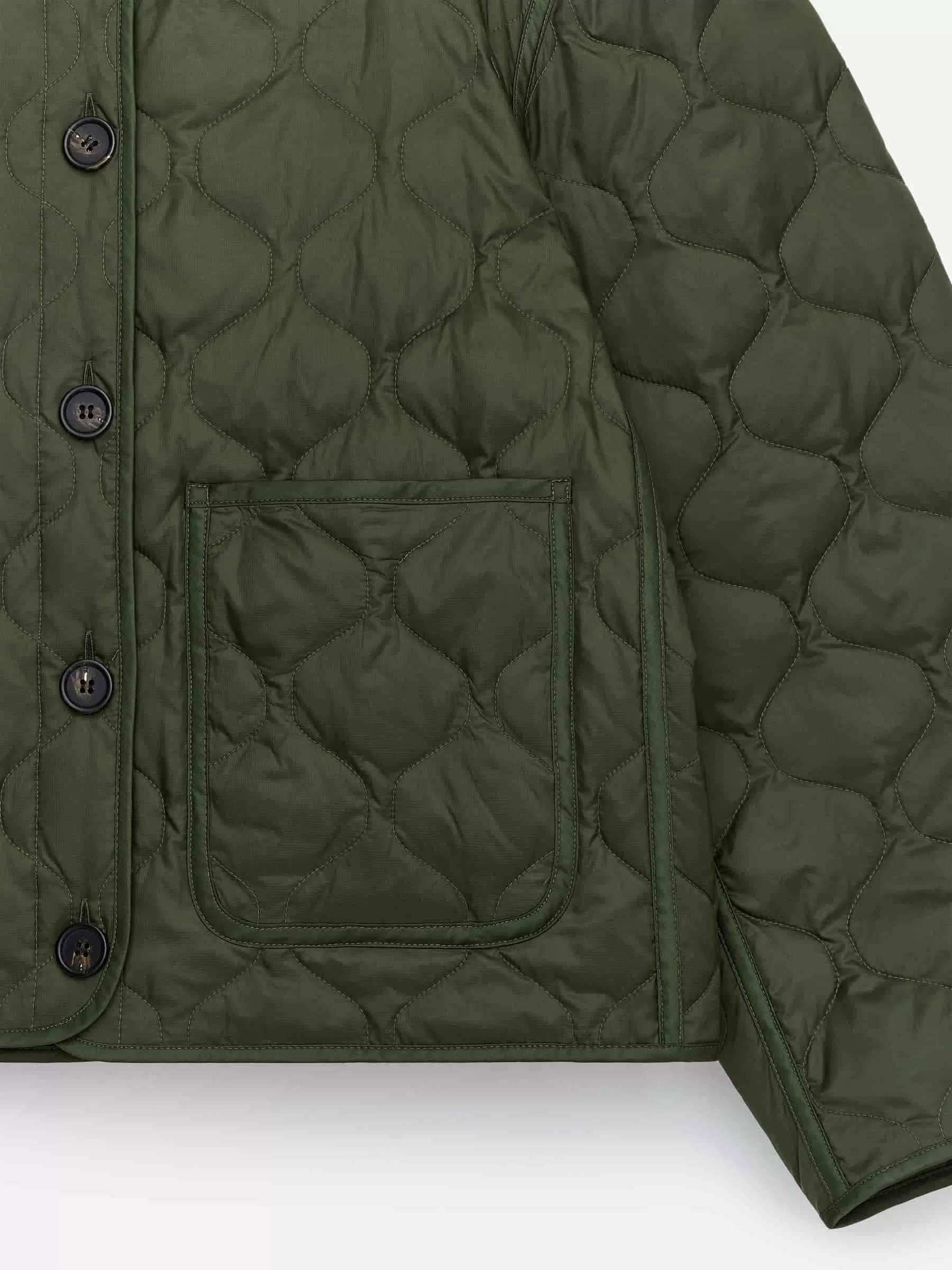 Quiltad linerjacka fylld med en blandning av dun och fjädrar. Patchfickor framtill och knäppning. En del av 2-i-1-serien, ett modulärt ytterplaggssystem som inkluderar skal och isolerande foder speciellt utformade för att knäppas ihop och bilda en helt vadderad kappa. Upcycled Down-produkterna är fyllda med återvunnet dun och fjädrar från Re:Down®. Dessa material, insamlade från använda textilier, tvättas och steriliseras vid höga temperaturer utan användning av kemikalier.