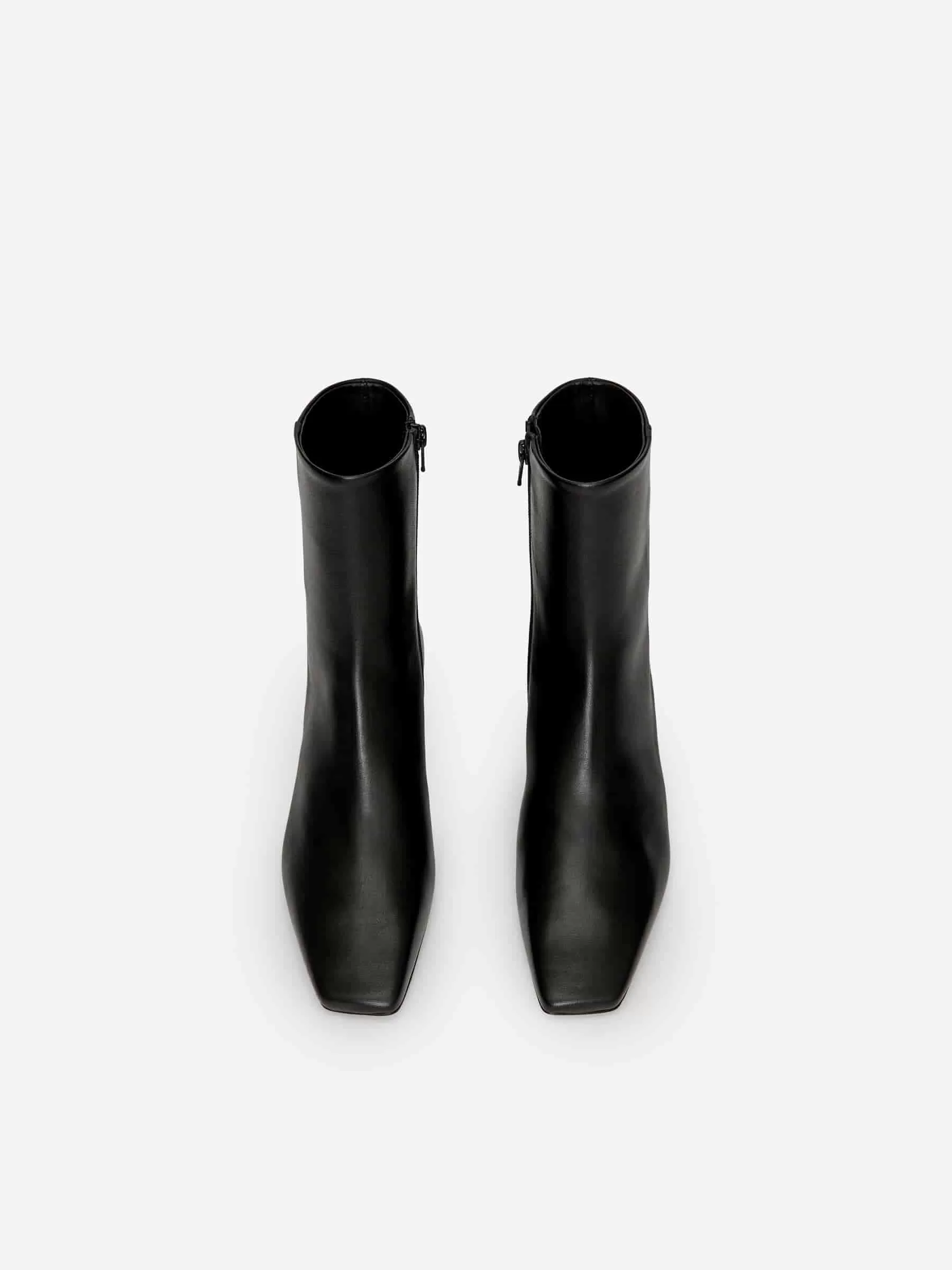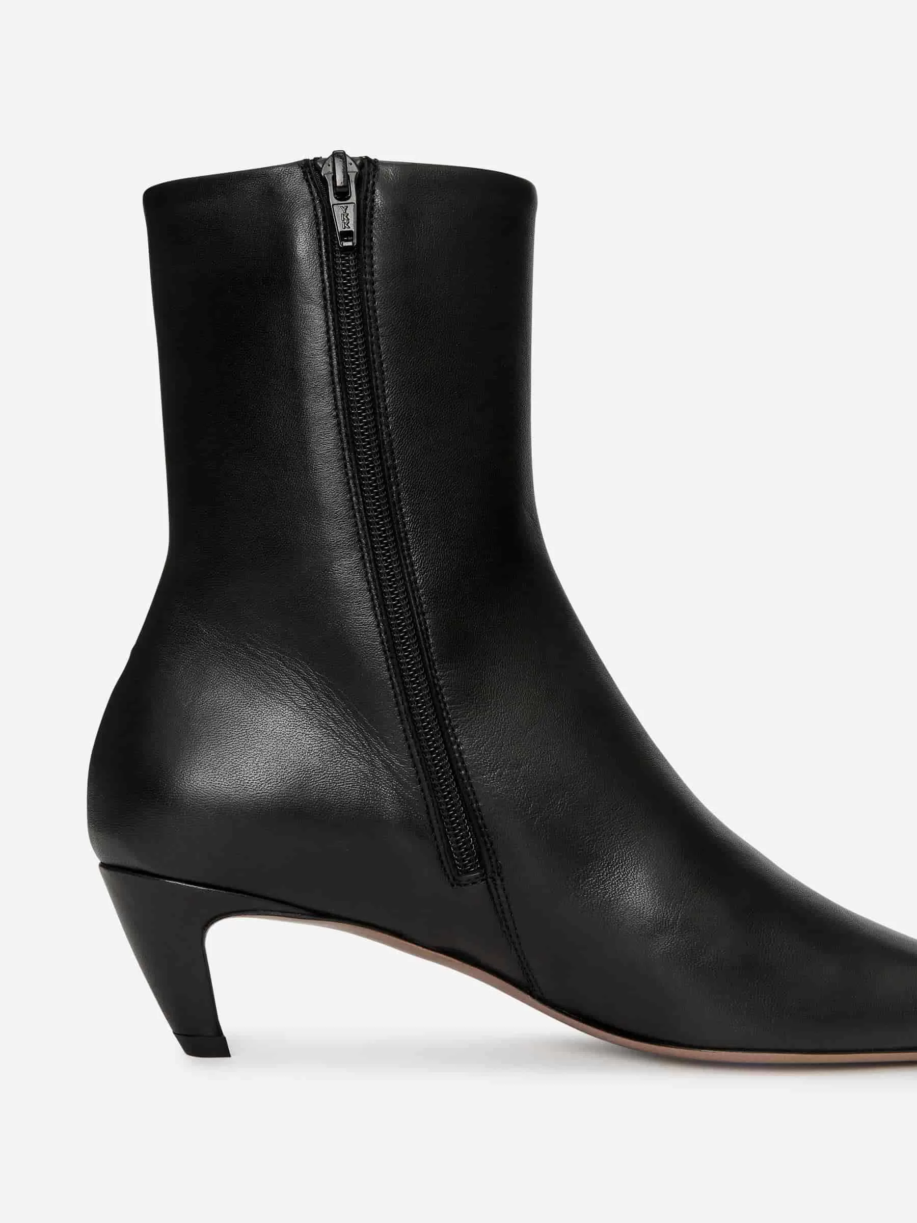 Stövlar gjorda av kromfritt läder. En stilren skuren stil med lätt rundad häl och fyrkantig tå. Dragkedja på insidan. Klackhöjd 5 cm.