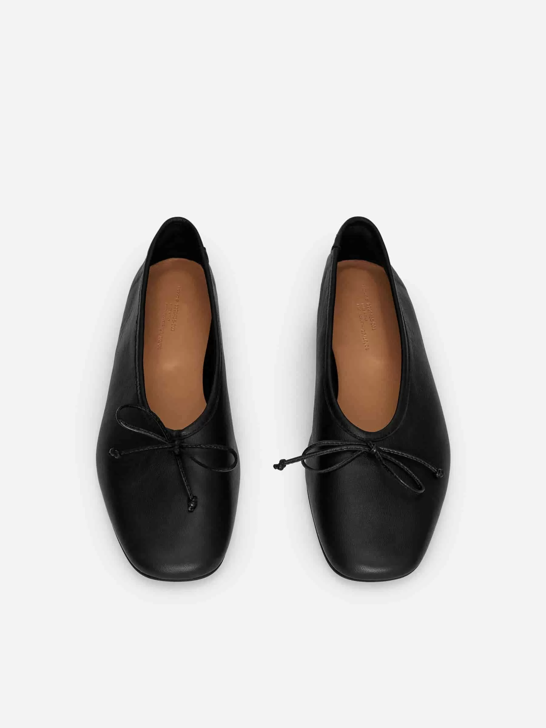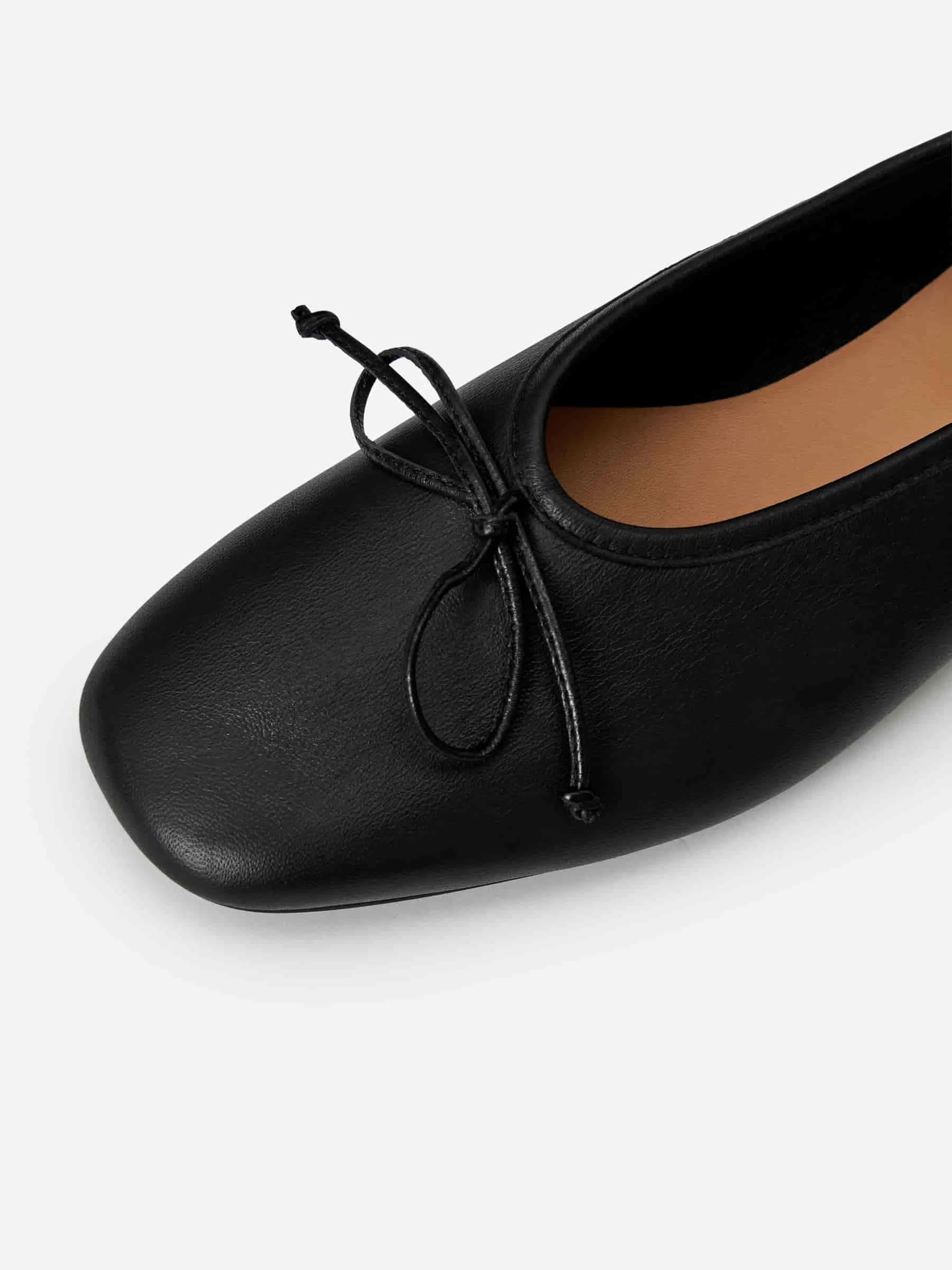 Ballerina tillverkad av mjukt läder som har genomgått en metallfri garvningsprocess. Stylad med en hög överlinje och en rosettdetalj i läder. Läderfoder och lädersula.