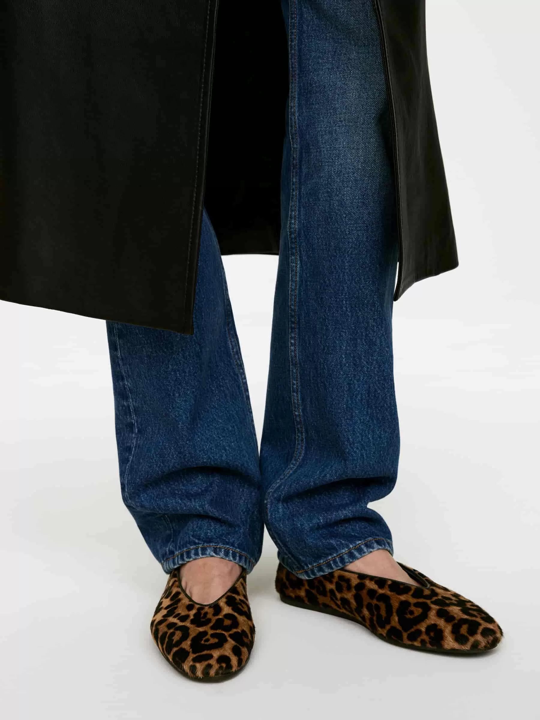 Ballerinor i läder med hårig struktur. Styled med en V-formad överlinje och en rundad tå. Gummisula.