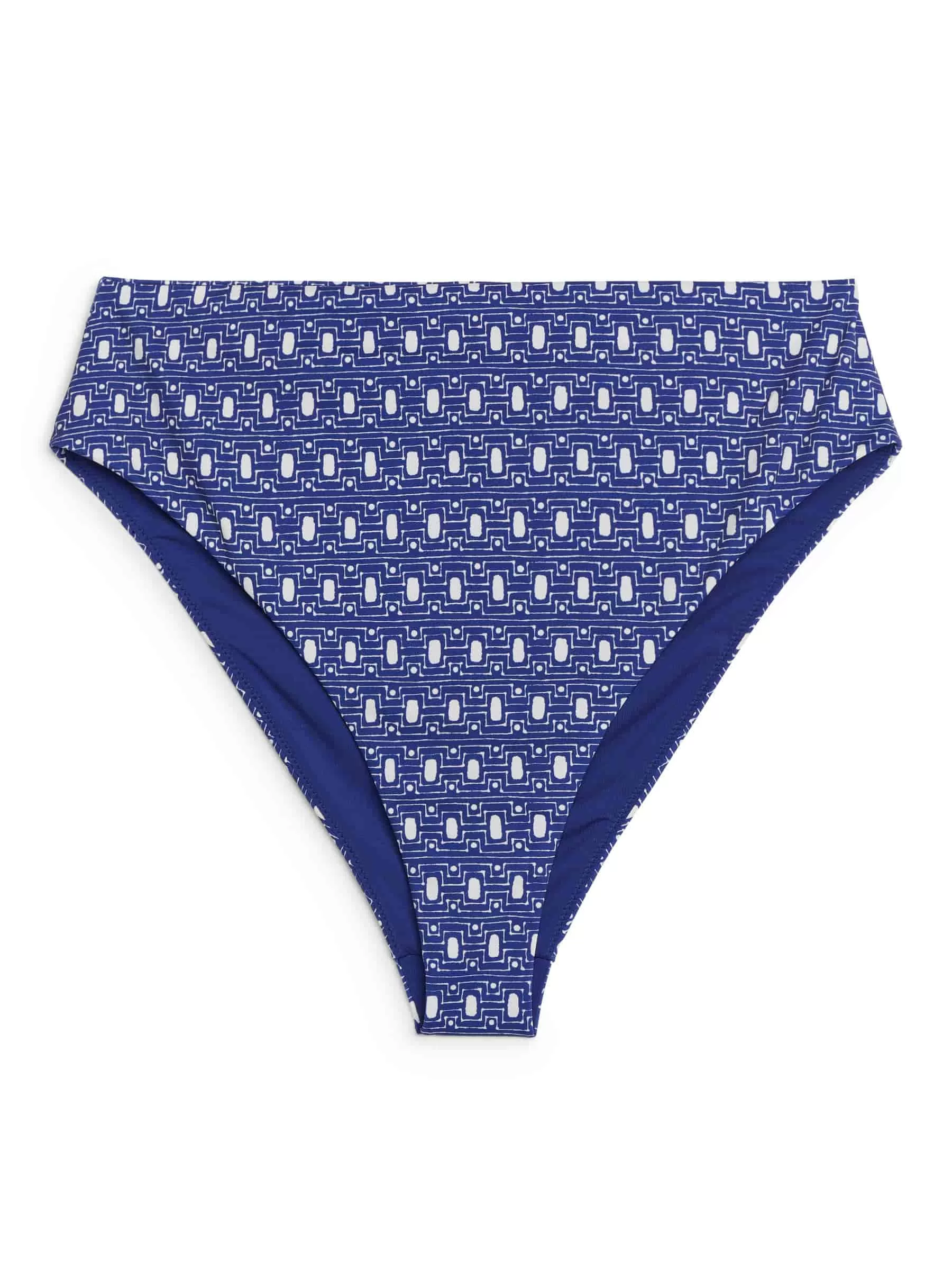 Bikinitrosor med hög midja och hög benöppning. Helfodrad.