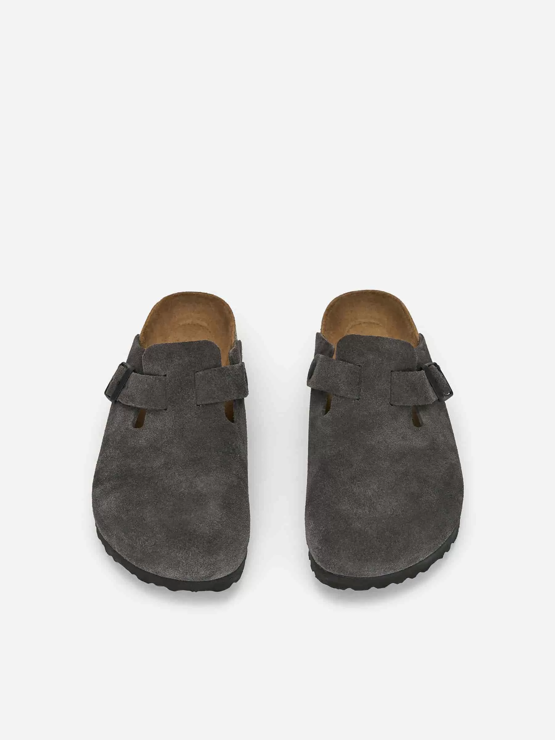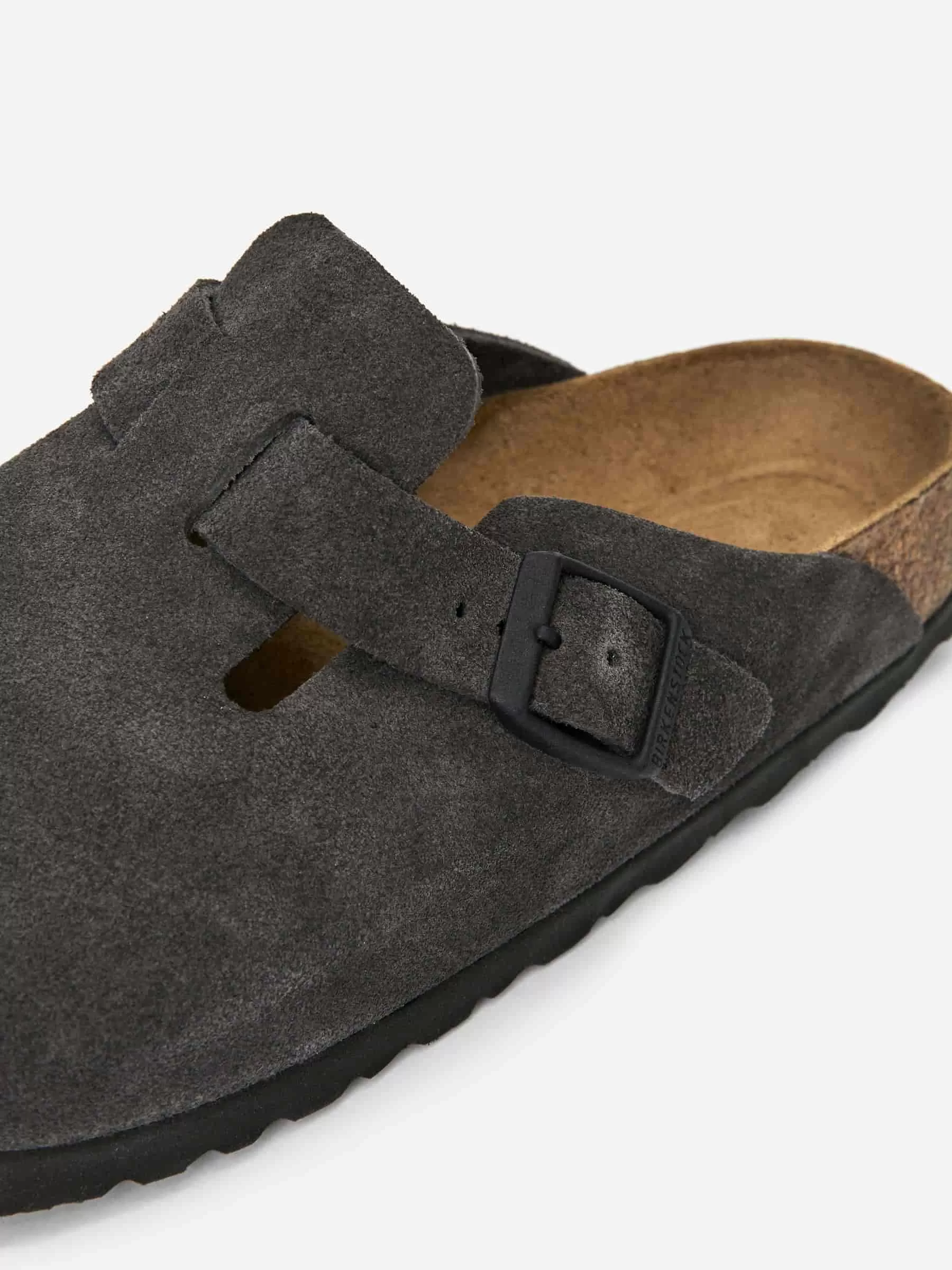 Birkenstock Boston är en mångsidig klassiker som kan bäras både inomhus och utomhus. Har en ovandel i mocka, en mjuk och anatomiskt formad fotbädd och en EVA-sula.