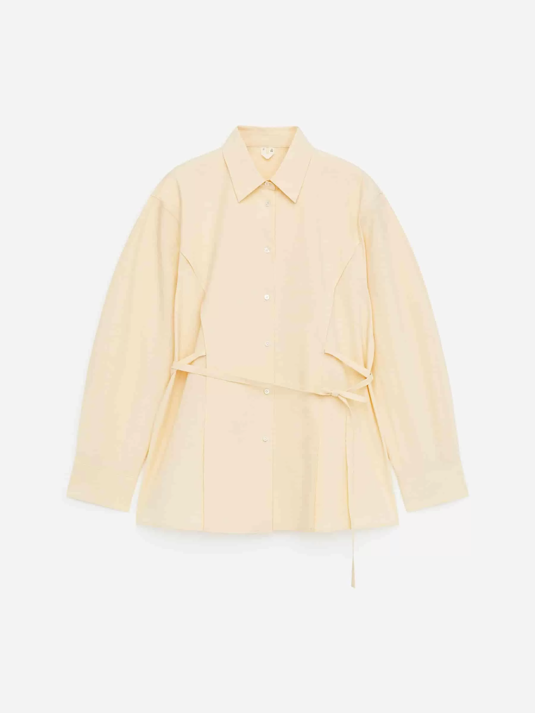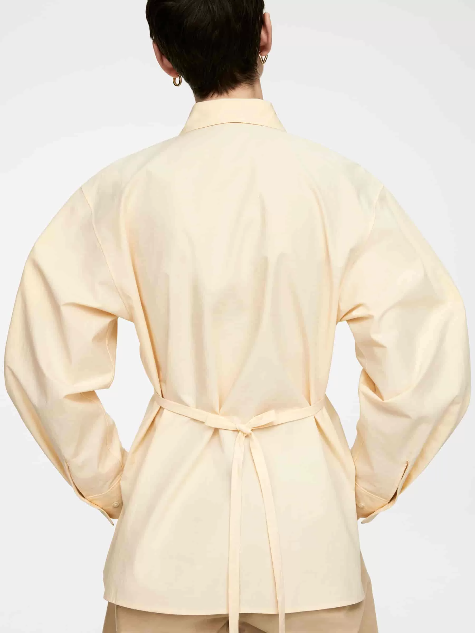 ARKE Dam Blus i bomull med knytskärp Dammig gul