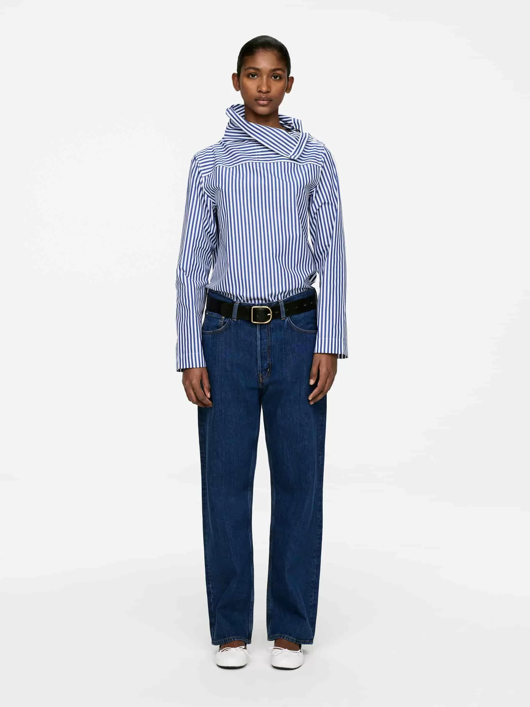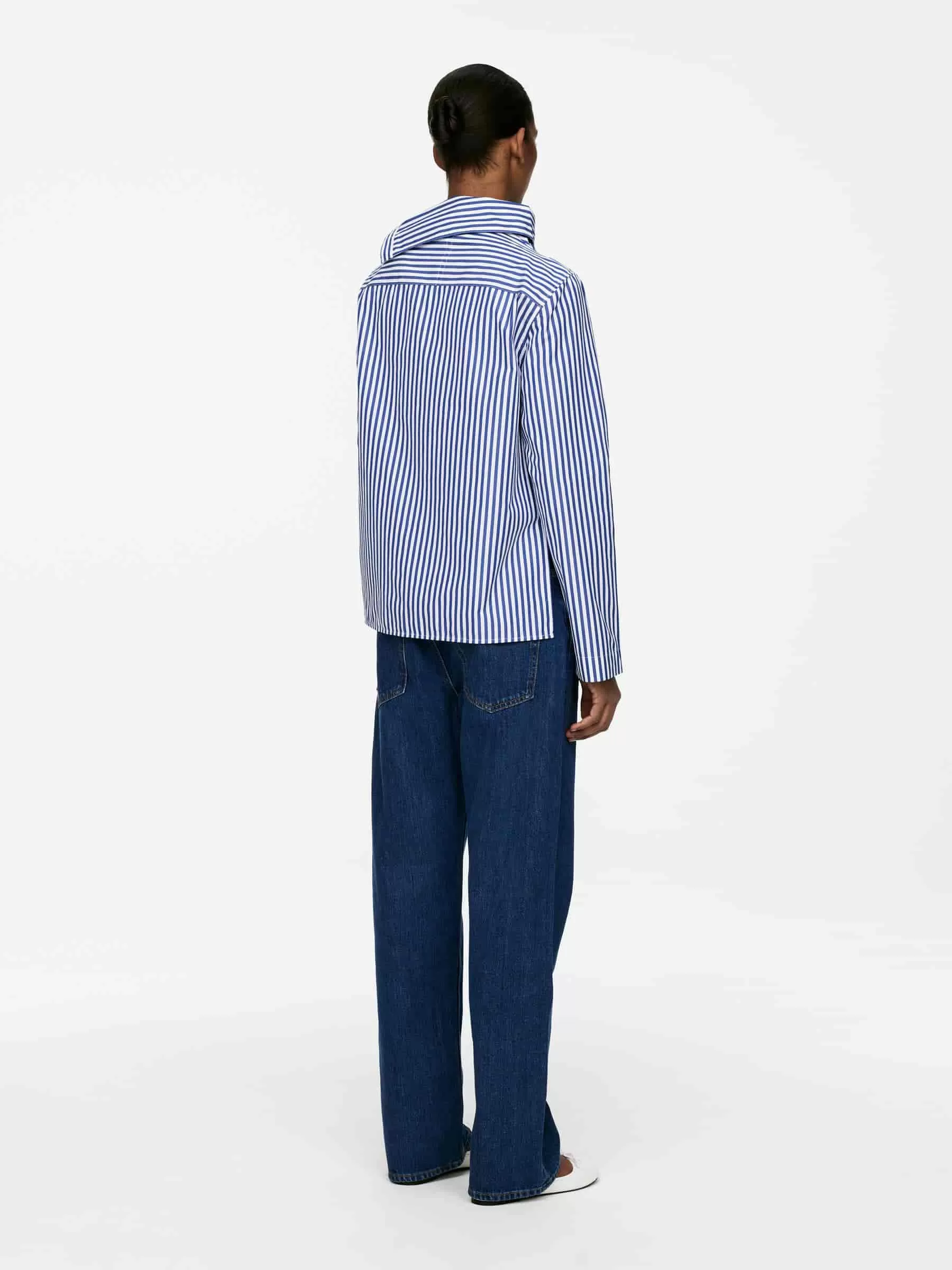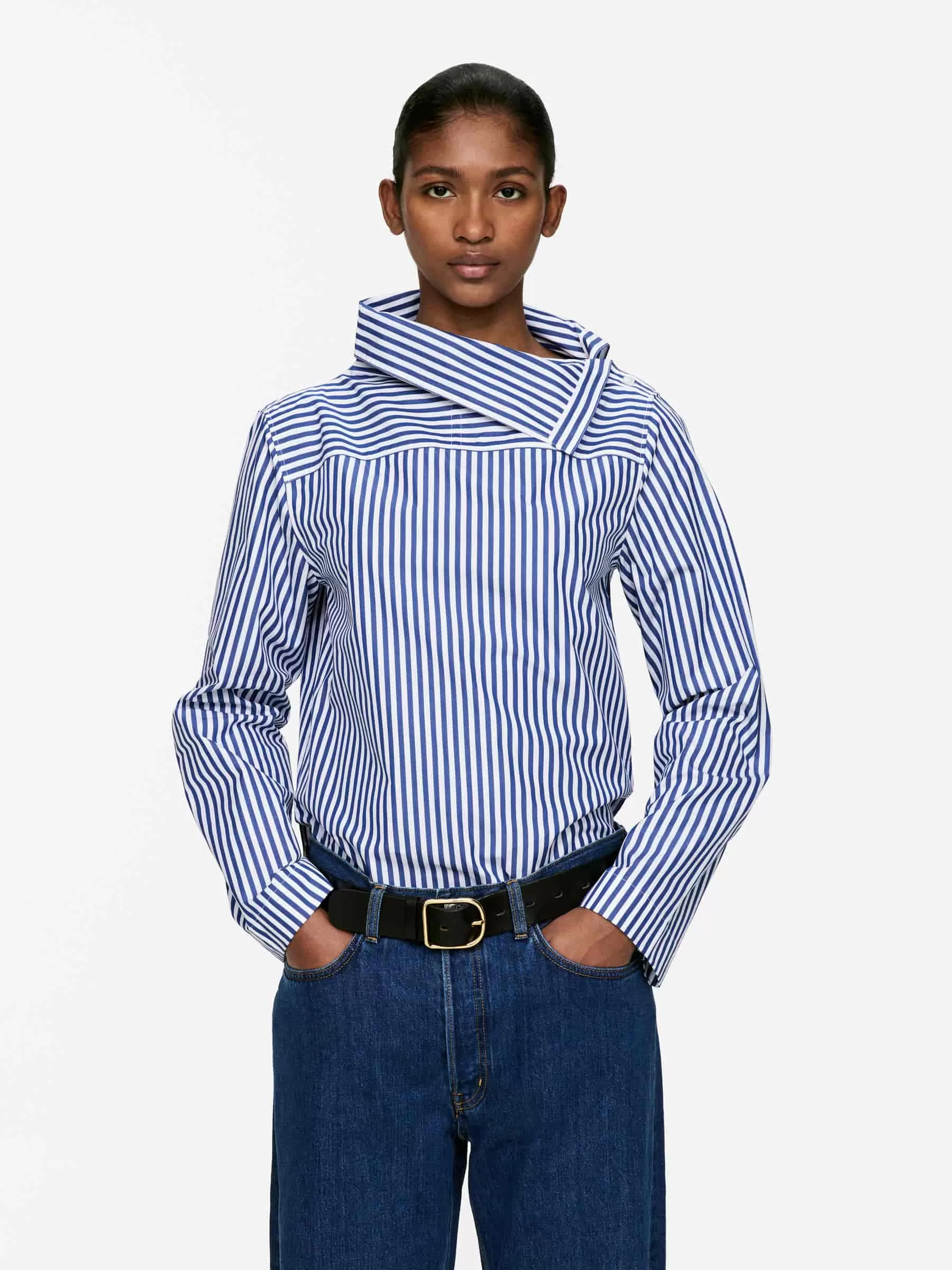 Långärmad bomullsblus stylad med en vikt krage med knappstängning. Normal passform.