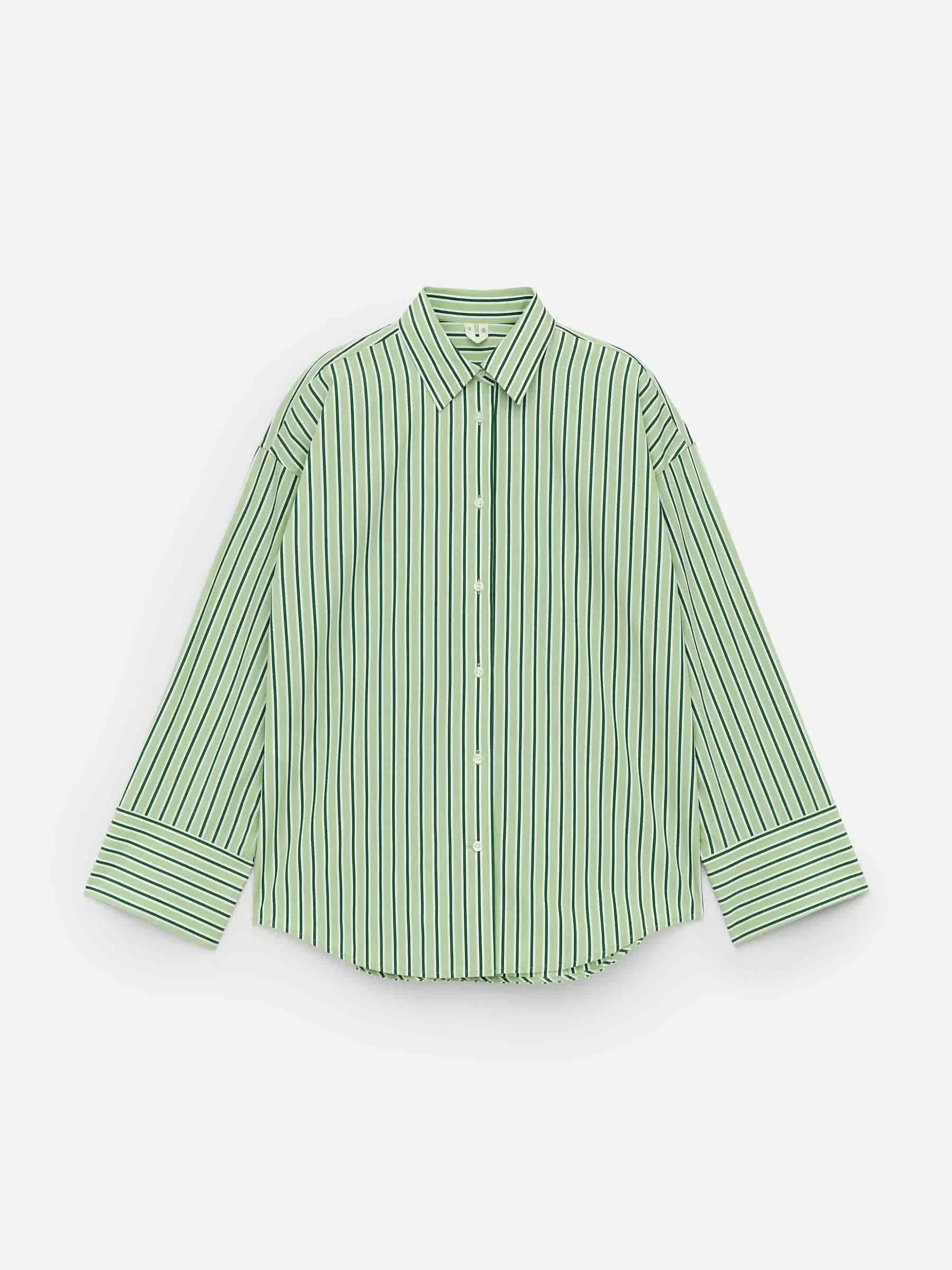 ARKE Dam Bomullsskjorta med vid ärm Vit/grön