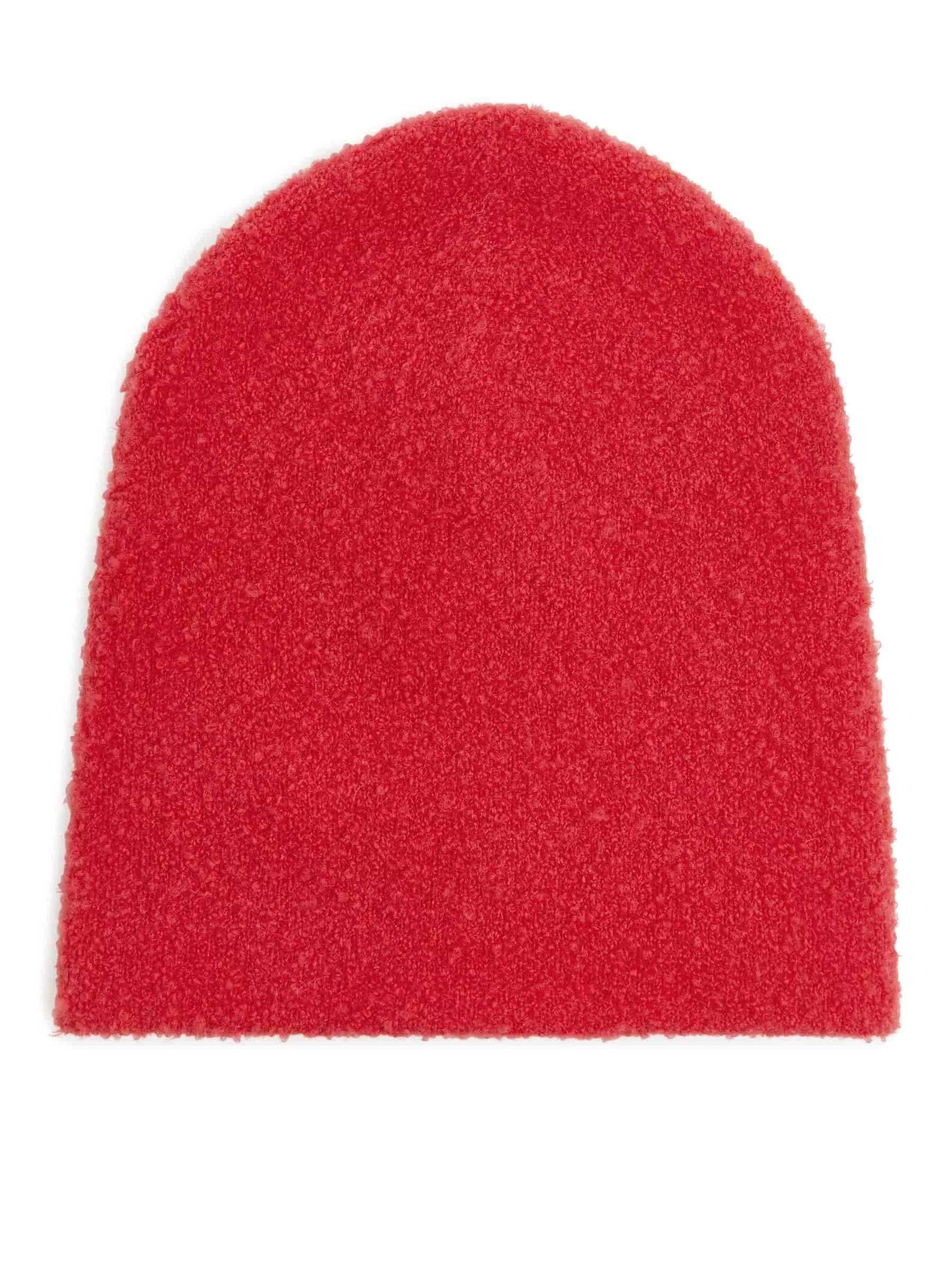 Mössa tillverkad av ett plysch bouclétyg gjord av en ullblandning.