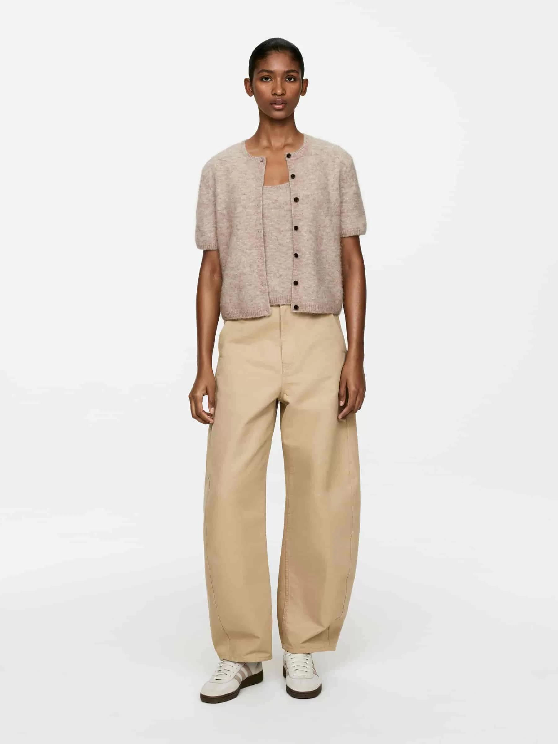 Kortärmad kofta stickad i en ull- och alpackablandning. Stylad med knappstängning och normal passform. Denna stil innehåller 31% RAS Alpaca och 31% RWS ull (TE-00047206). Produkter certifierade enligt Responsible Wool Standard (RWS) och Responsible Alpaca Standard (RAS) innehåller ull och alpackafiber från gårdar som är oberoende certifierade enligt kraven på djurskydd och markförvaltning.