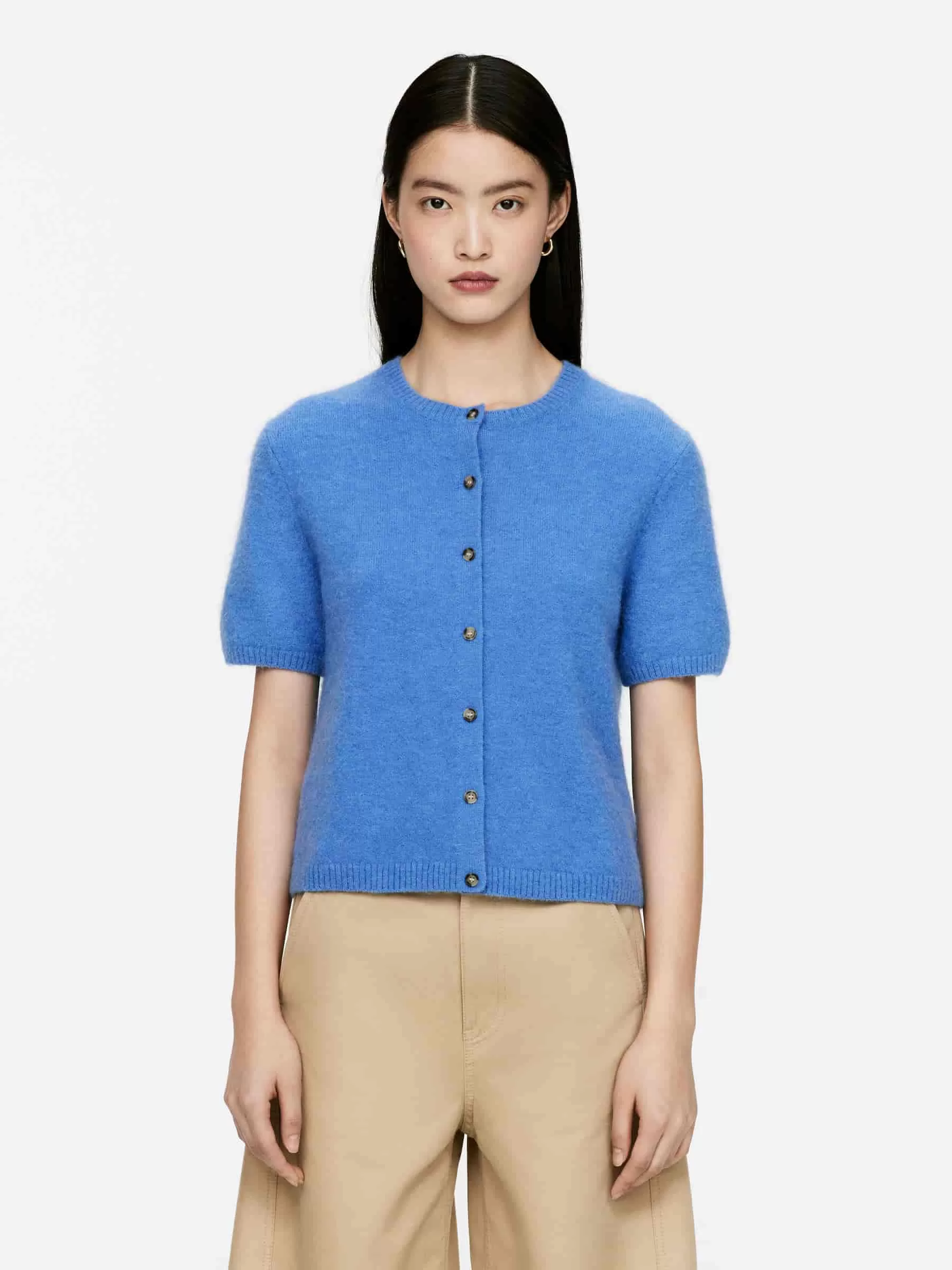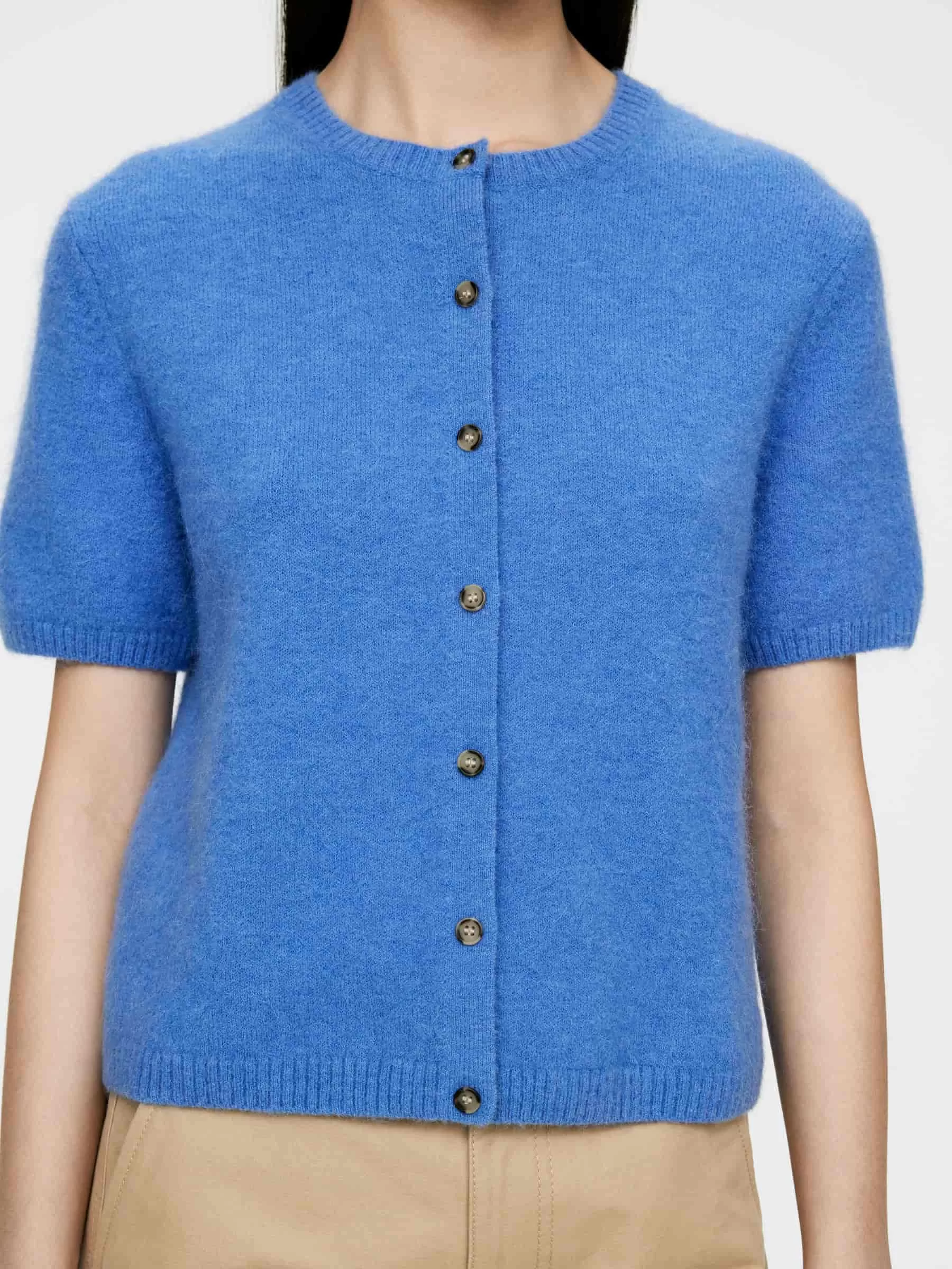 Kortärmad kofta stickad i en ull- och alpackablandning. Stylad med knappstängning och normal passform. Denna stil innehåller 31% RAS Alpaca och 31% RWS ull (TE-00047206). Produkter certifierade enligt Responsible Wool Standard (RWS) och Responsible Alpaca Standard (RAS) innehåller ull och alpackafiber från gårdar som är oberoende certifierade enligt kraven på djurskydd och markförvaltning.