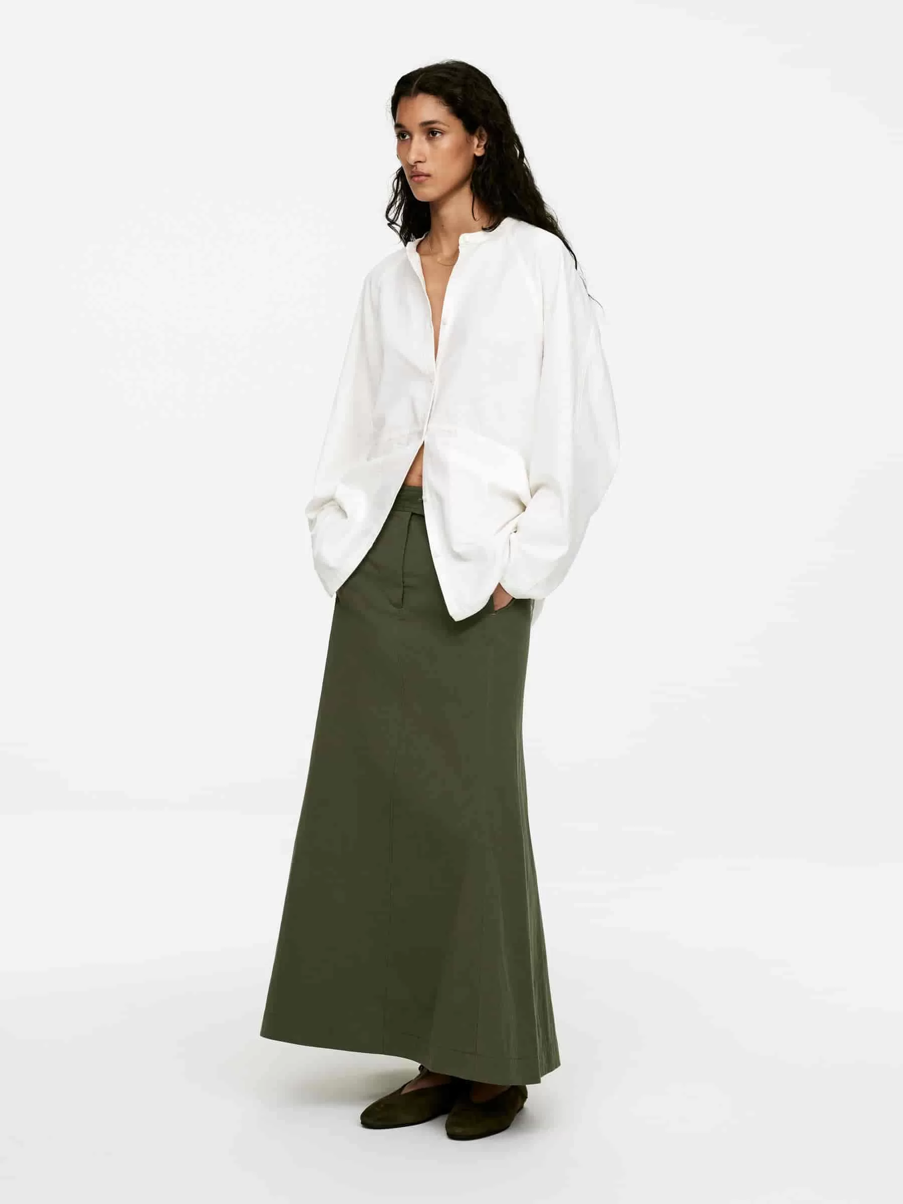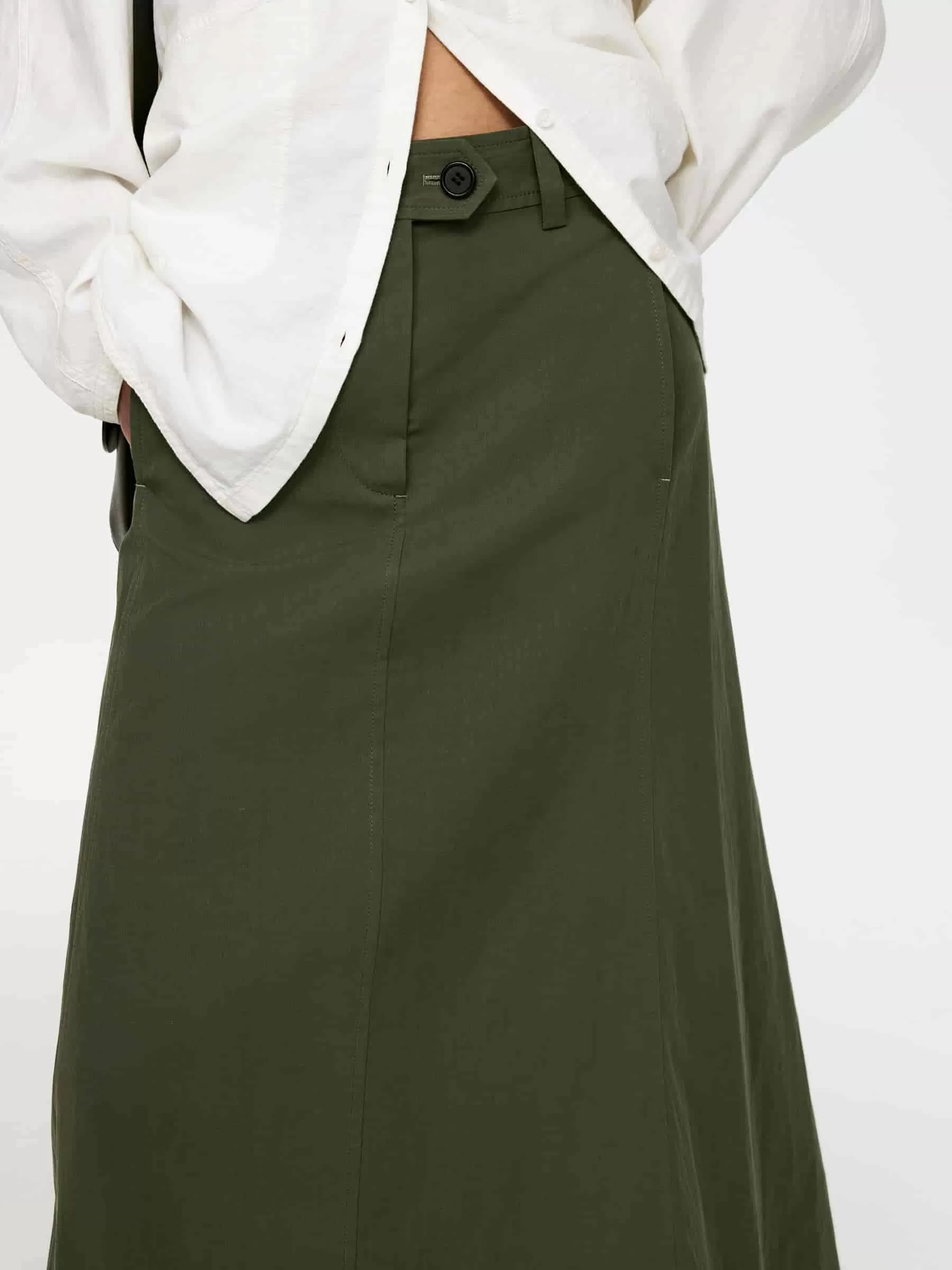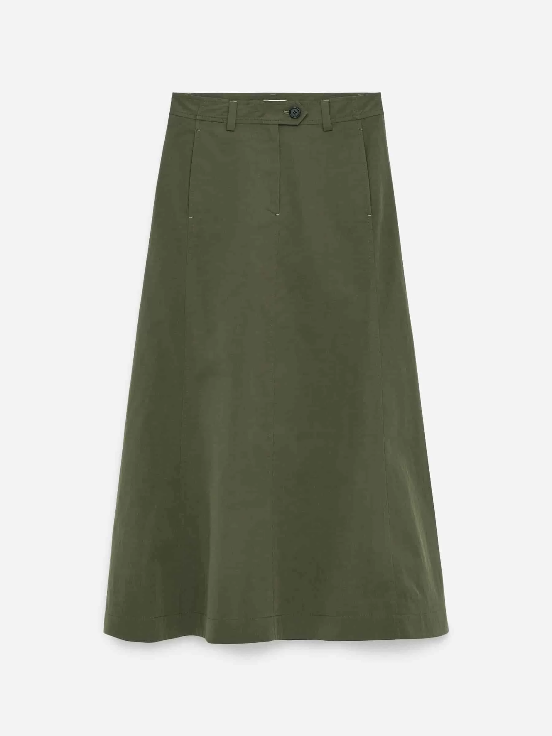 Maxi kjol tillverkad av en bomullsblandning. Denna lätt utsvängda stil har fickor i sidsömmar och stängning med knappgylf. Smal till normal passform.