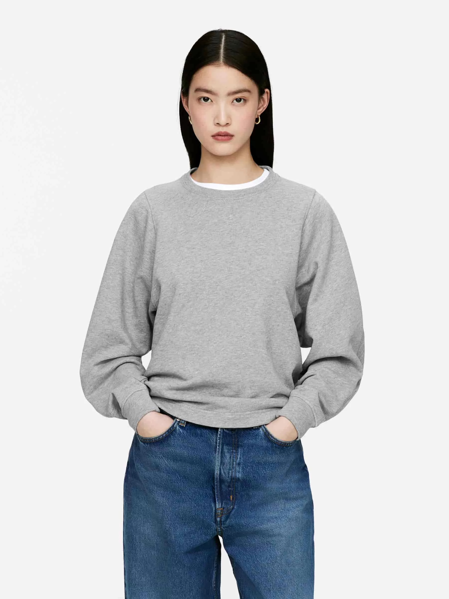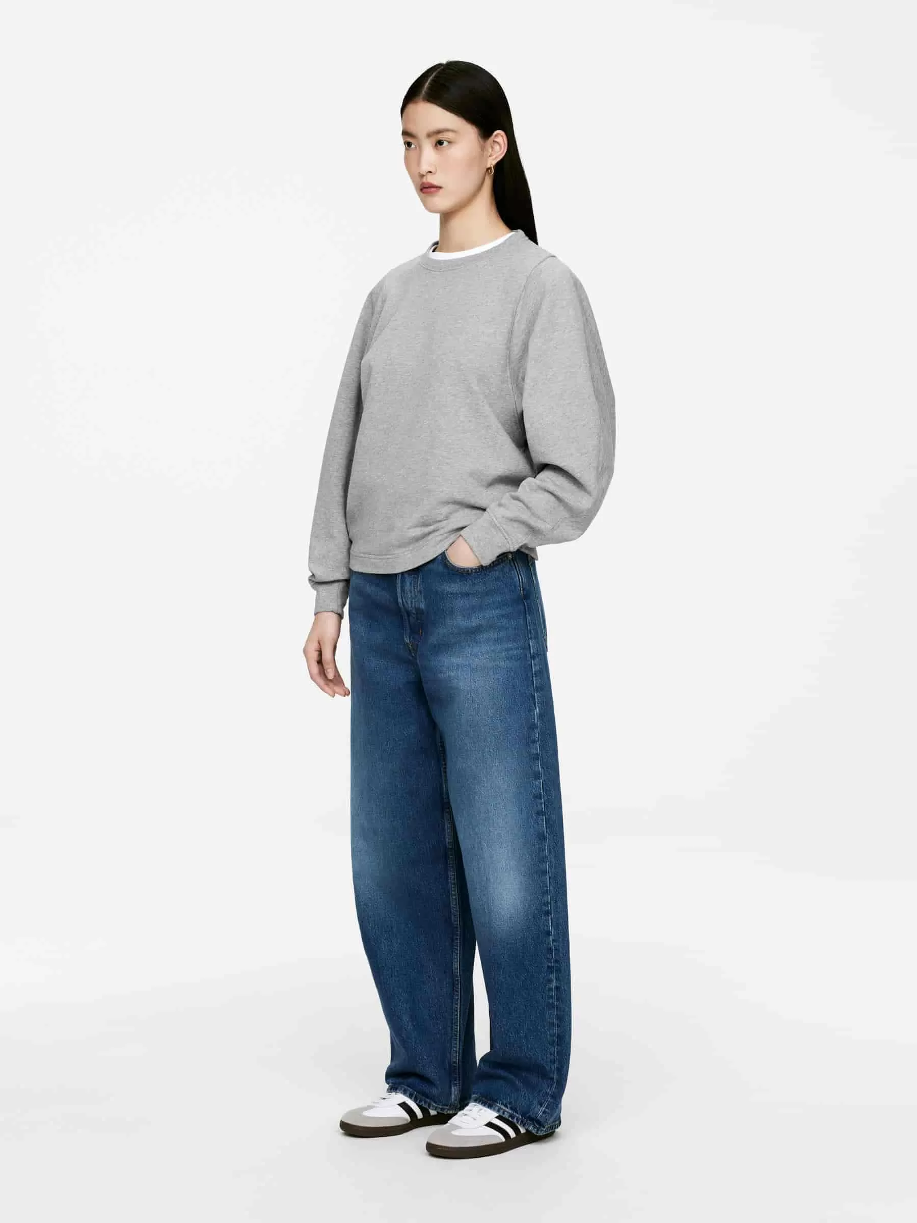 Tröja tillverkad av bomullsfrotté med en lätt borstad undersida för extra komfort. En kokongformad stil med vertikala sömsdetaljer nerför ärmarna och mitt bak. Normal passform.