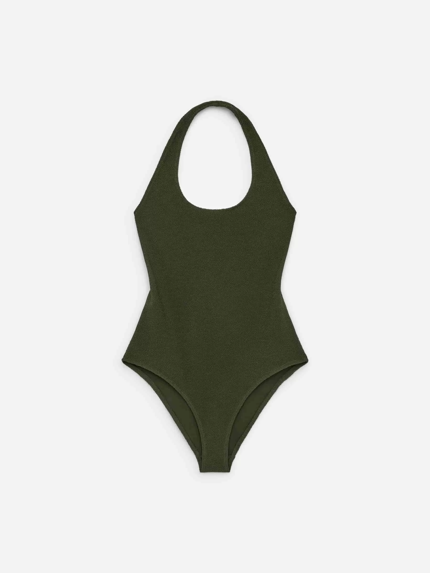 ARKE Dam Crinkle Halterneck Baddräkt Khaki Grön