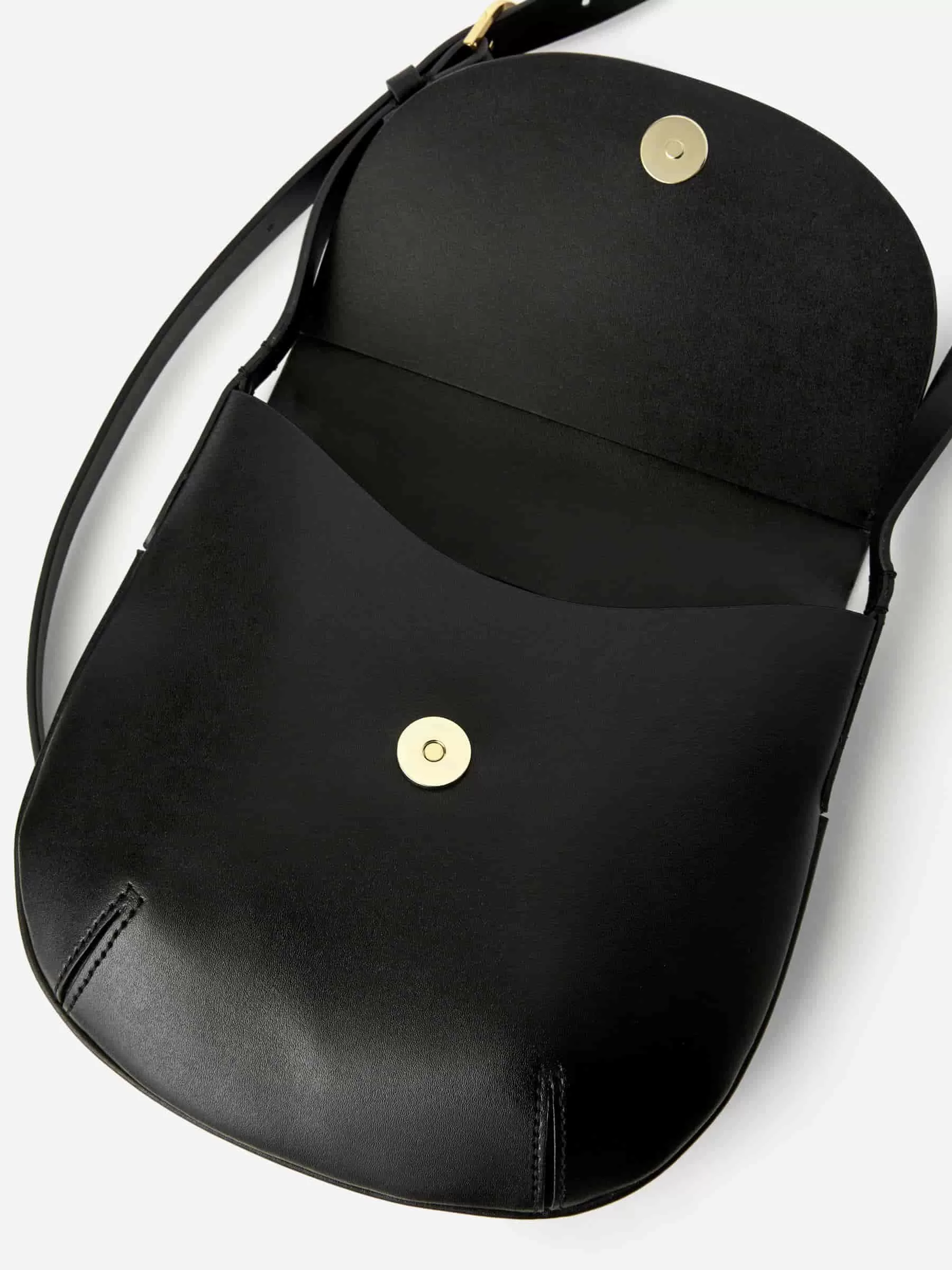 Crossbodyväska i kromfritt läder. Har en flik med magnetstängning, en innerficka och guldpläterade detaljer. Bredd 20 cm, höjd 19 cm. Axelremsfall 55 cm.