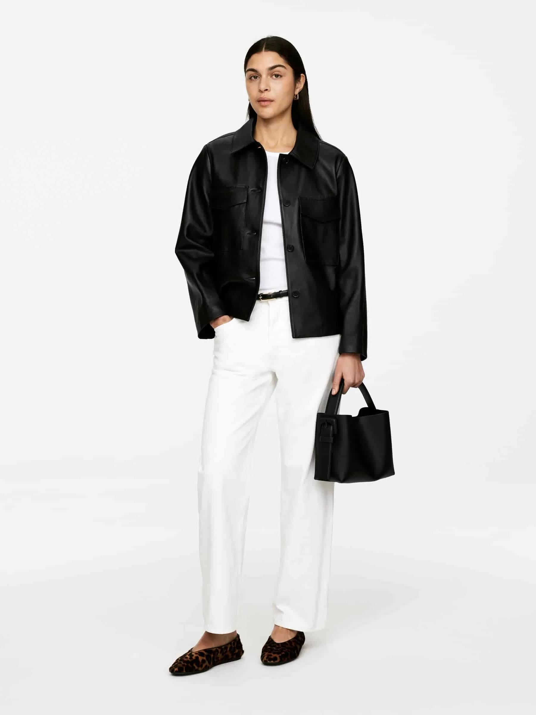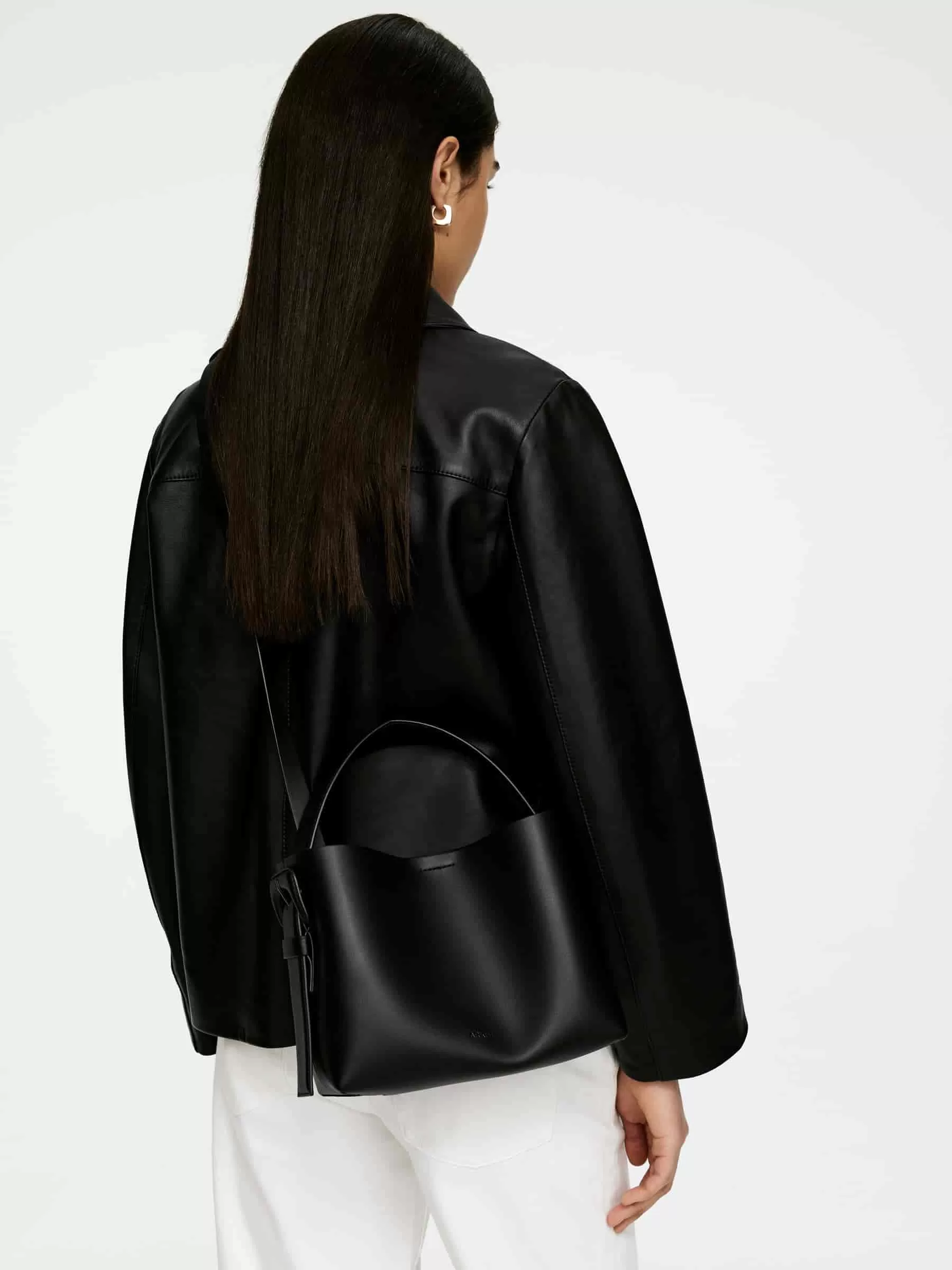 Mellanstor crossbody-väska tillverkad av styvt bondat läder. Detaljerad med en magnetisk stängning och ett brett övre handtag med ett läderklädd spänne. Både axelrem och övre handtag är justerbara i längd. Väskan rymmer ett mittfack med dragkedja. Mått 23 cm x 19 cm x 10,5 cm. Lädret som används har genomgått en kromfri garvningsprocess.