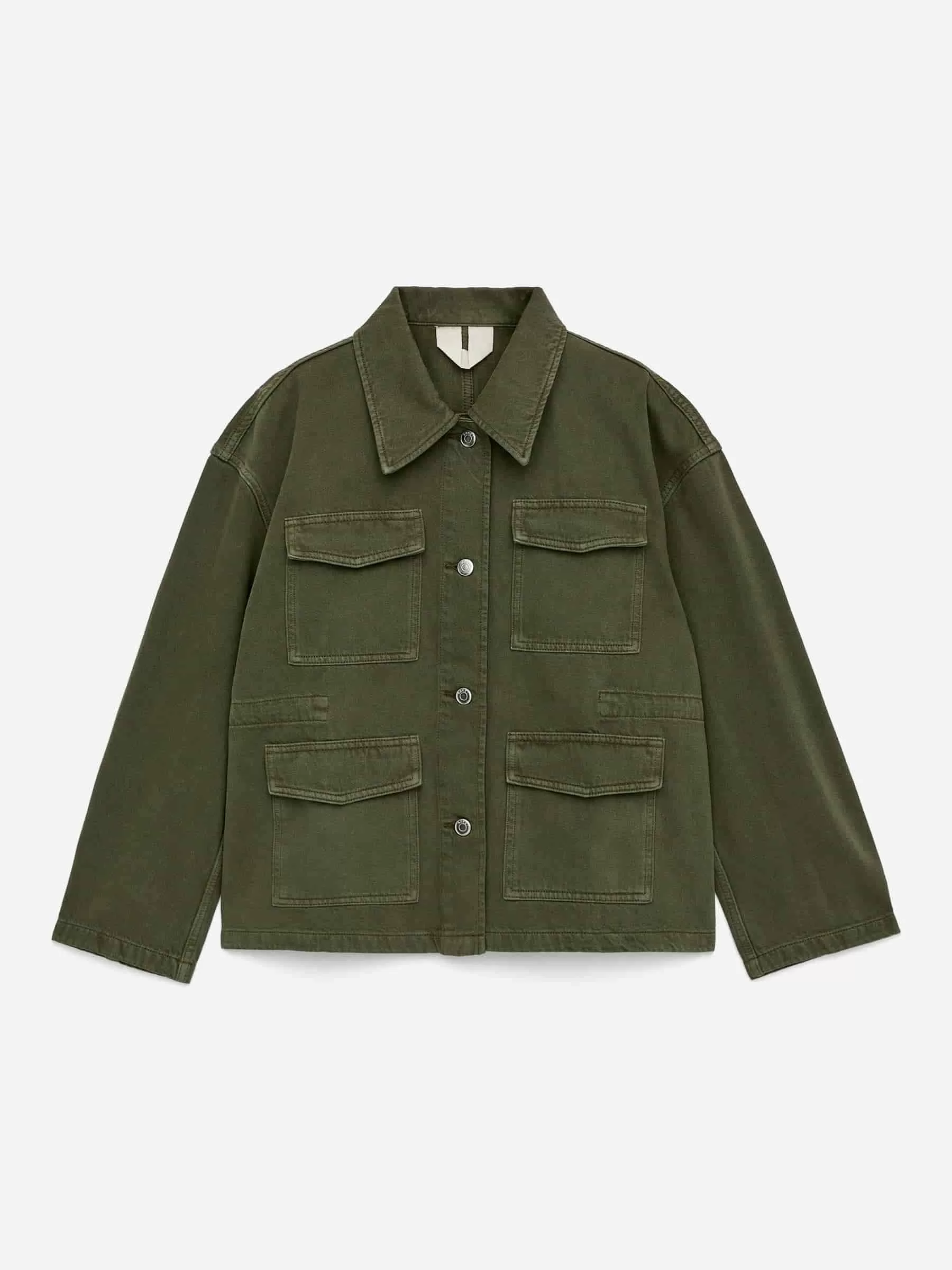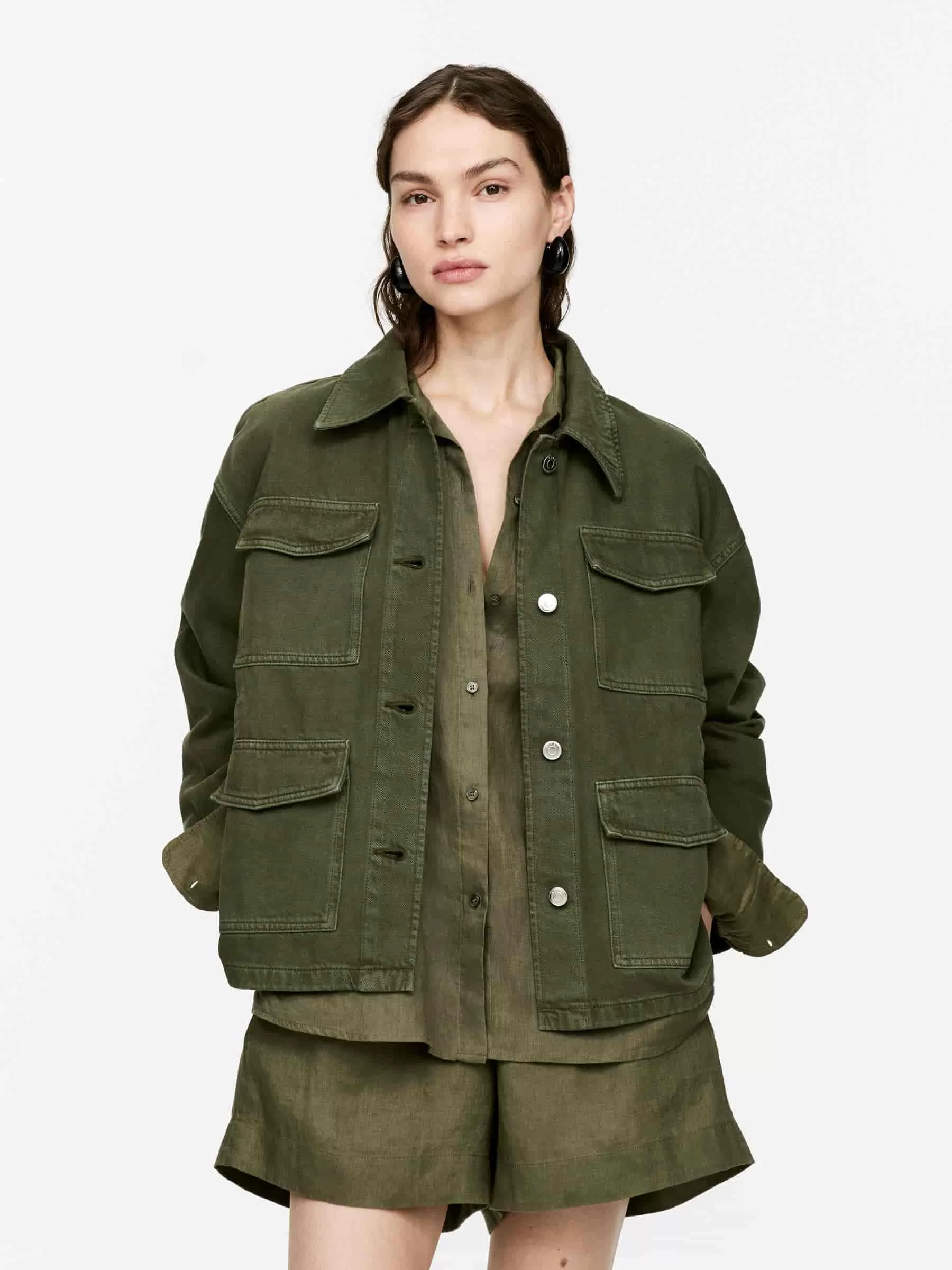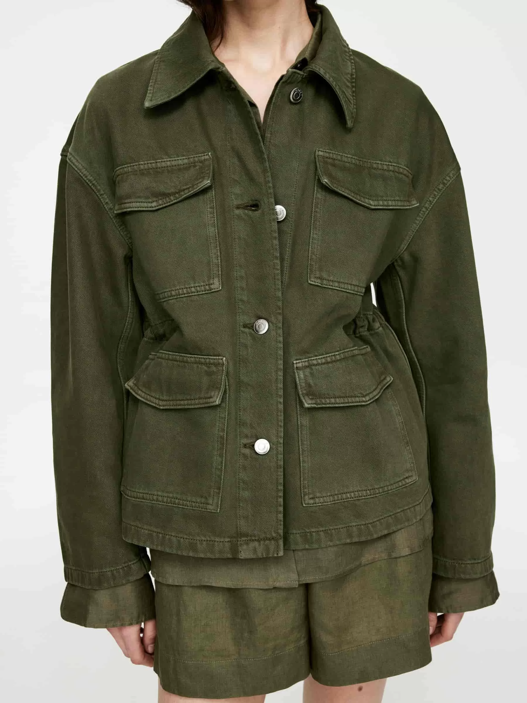 Jansjacka tillverkad av bomull. En ofodrad stil med både bröst- och framfickor och en justerbar dragsko i midjan.