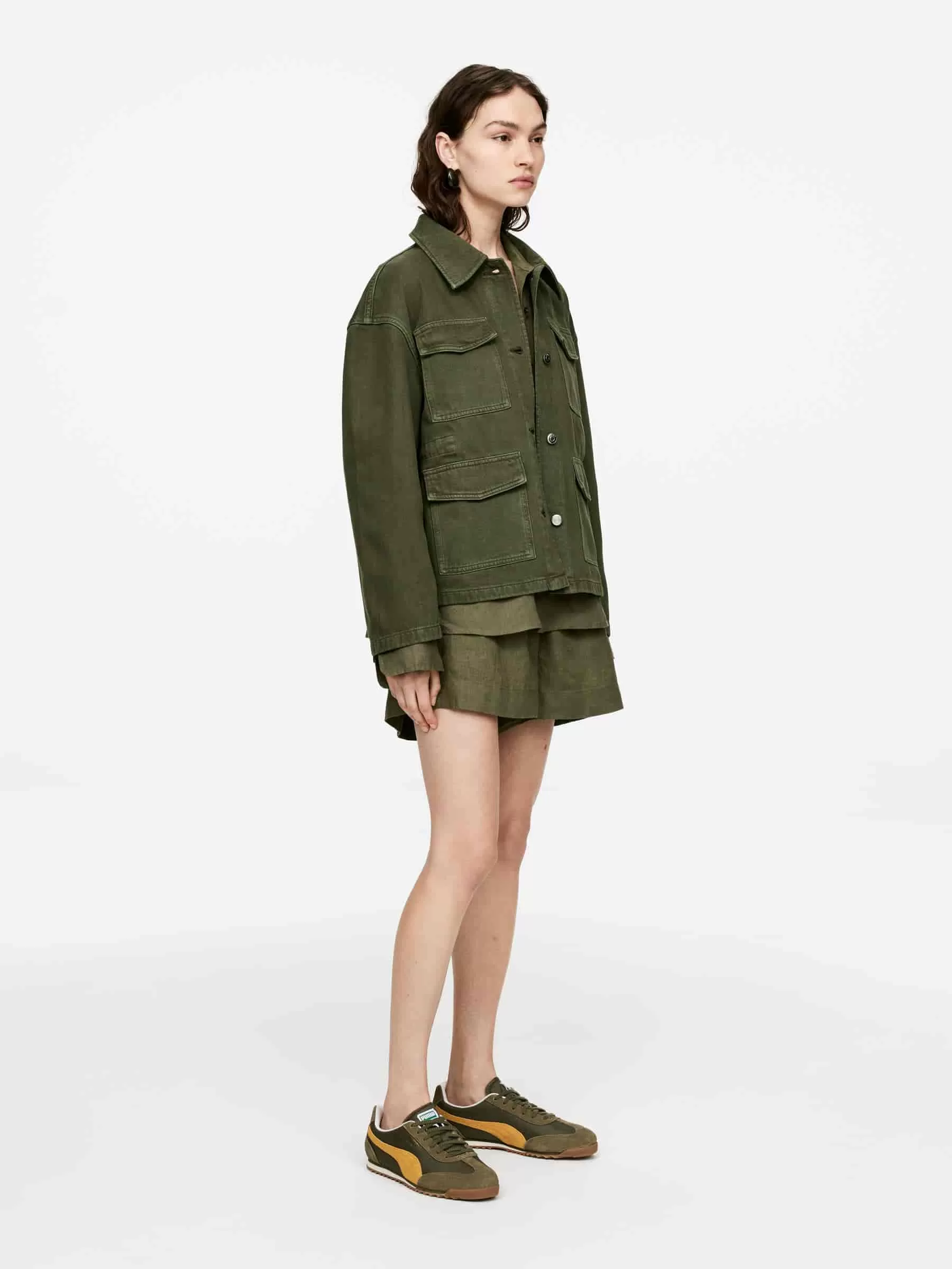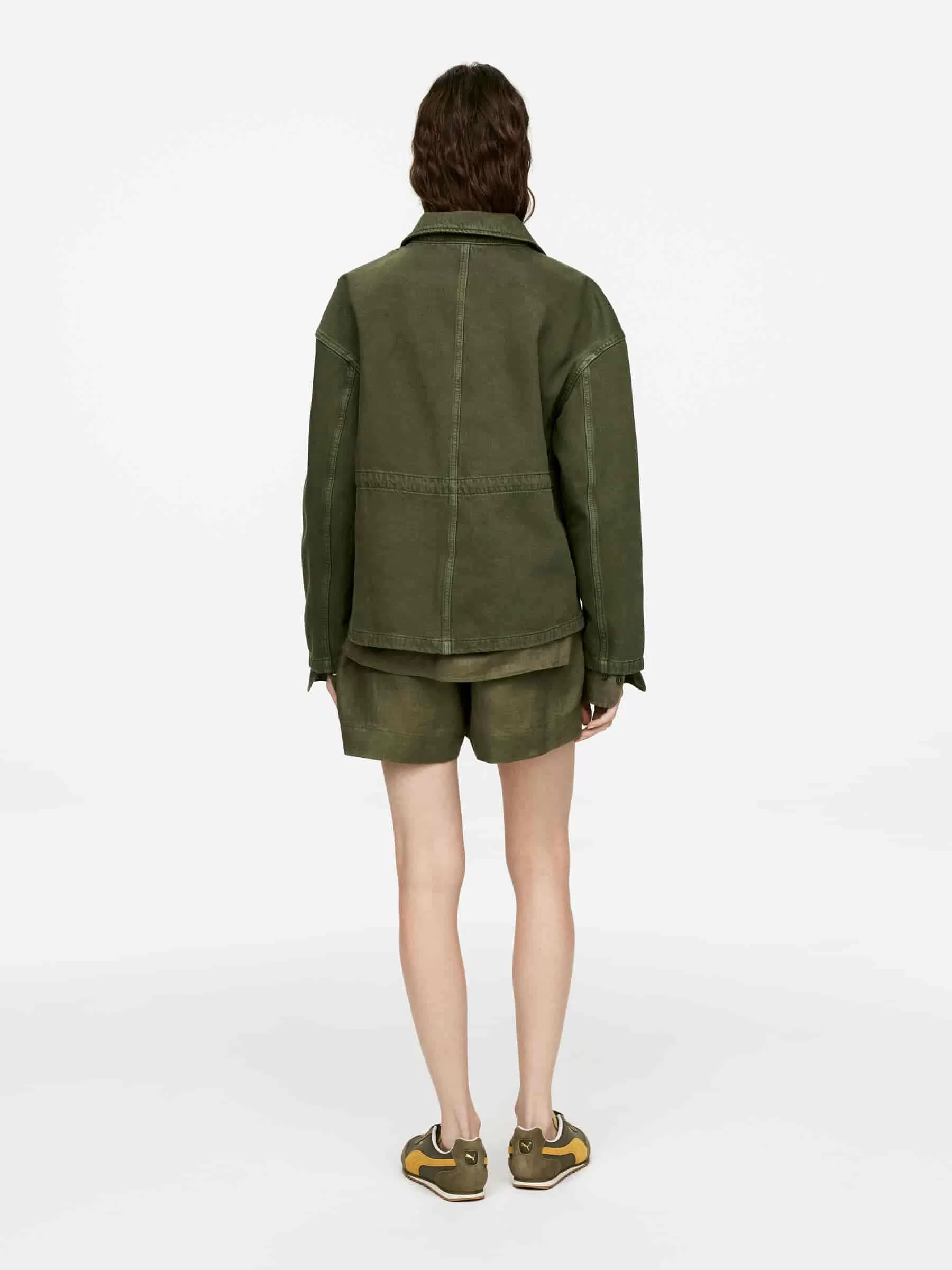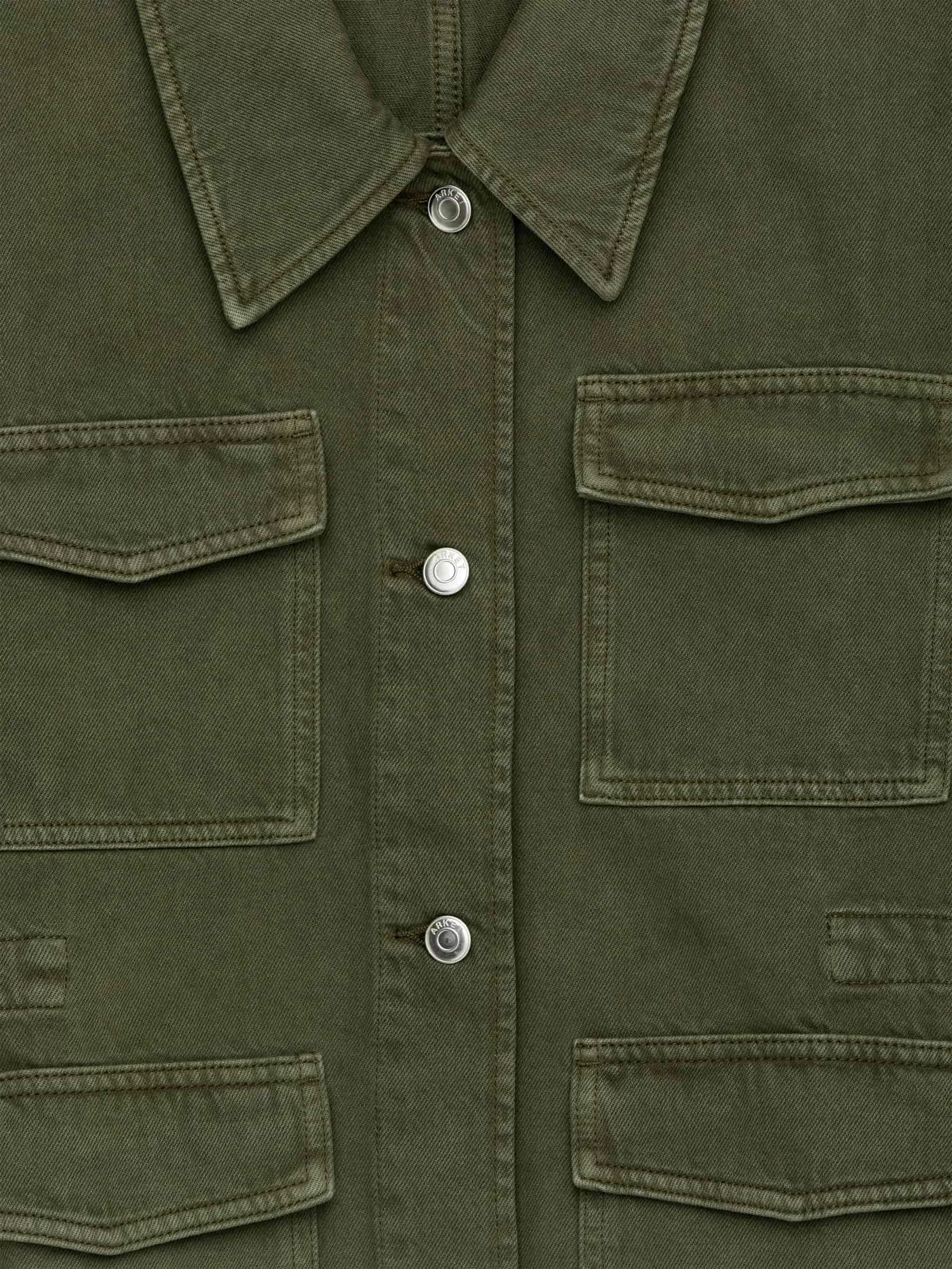 Jansjacka tillverkad av bomull. En ofodrad stil med både bröst- och framfickor och en justerbar dragsko i midjan.