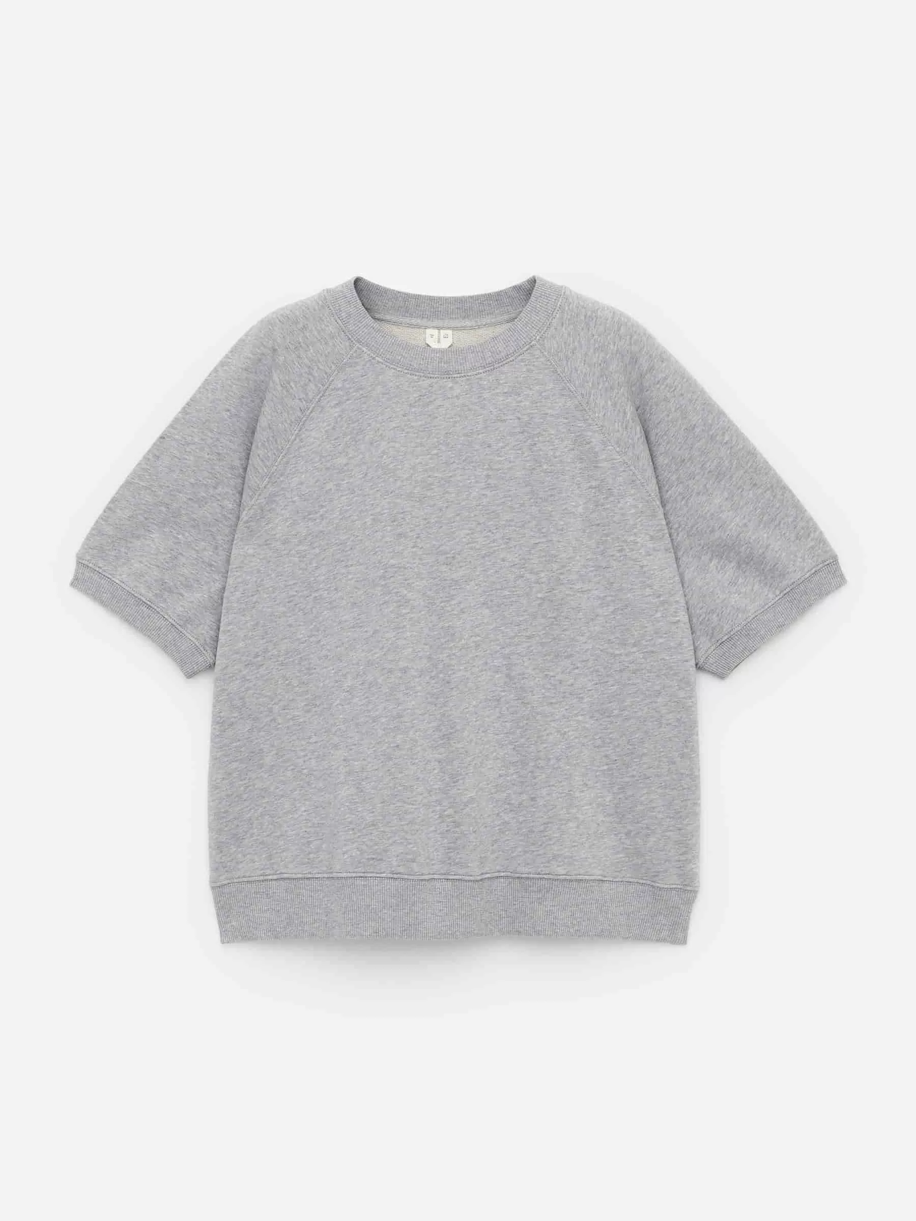 Kortärmad tröja tillverkad av bomull med en fransk frotté undersida för fukttransporterande egenskaper. En rund halsringning med raglanskurna ärmar och ribbstickade kantdetaljer. Normal passform.