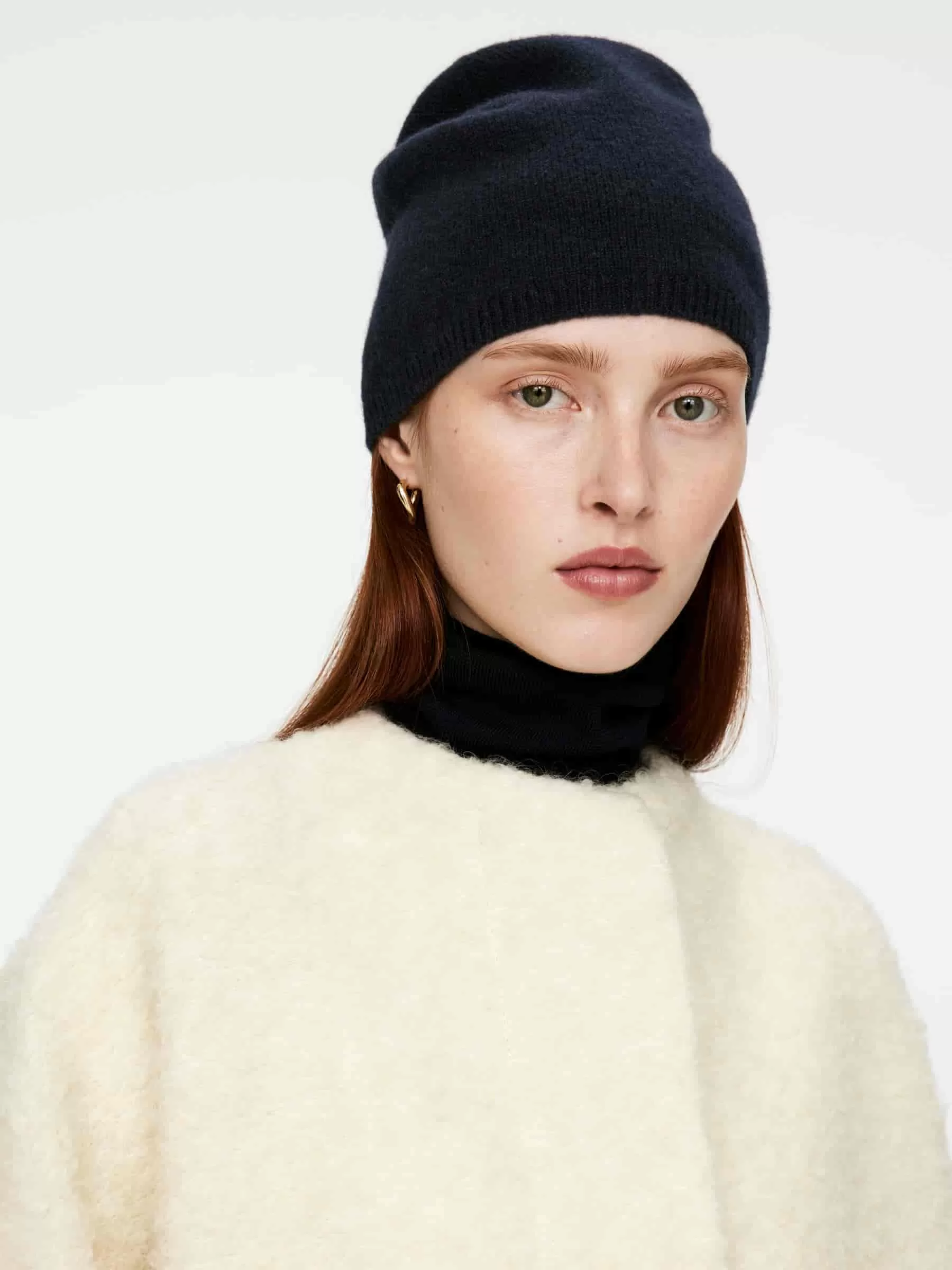 Slätstickad mössa tillverkad av en blandning av kashmir och ull. Ribbad kant. Mössan innehåller 25 % RWS-ull (TE-00047206). Produkter certifierade enligt Responsible Wool Standard (RWS) innehåller ullfibrer från gårdar som är oberoende certifierade enligt kraven på djurskydd och markförvaltning.
