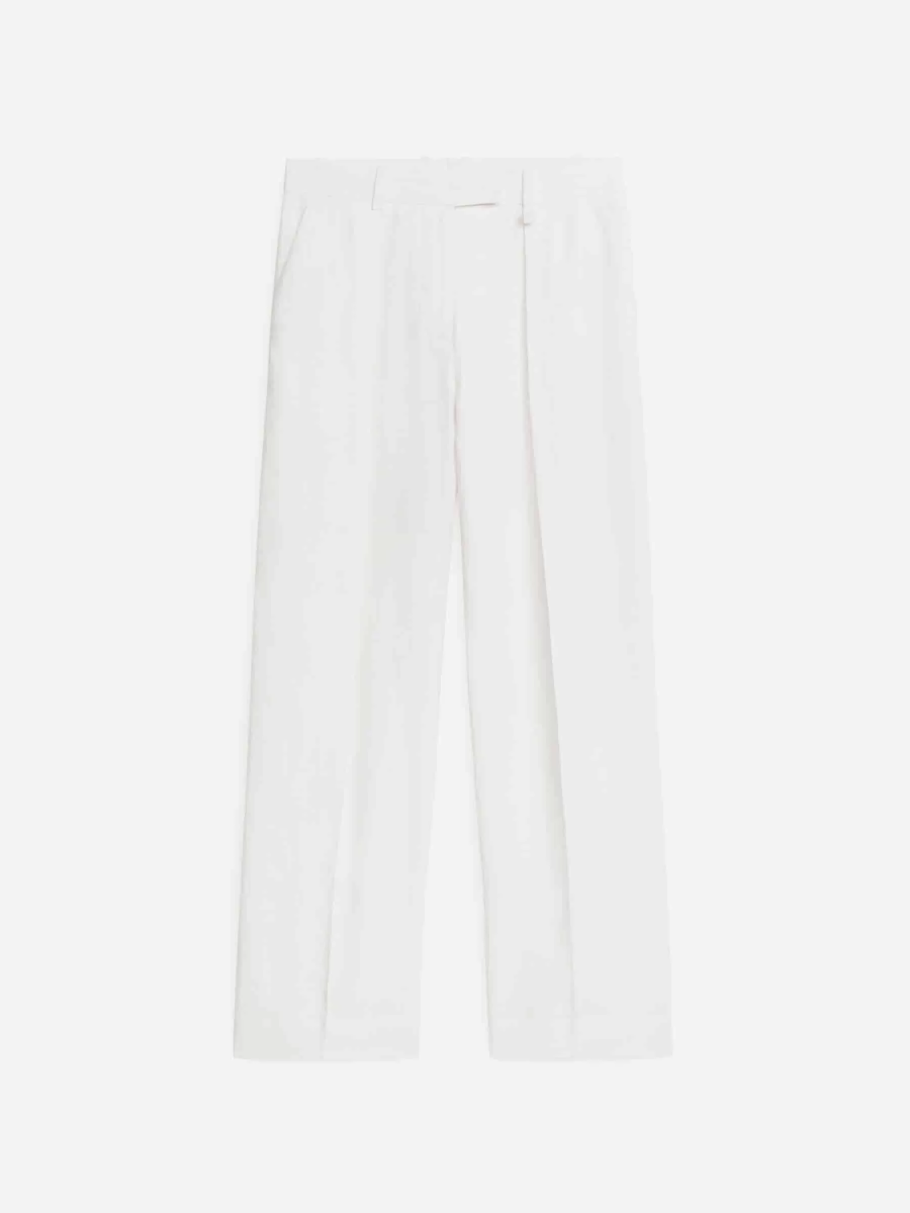 Dessa fullängds byxor i mitten av midjan är vävda av rent linne. En rak passform med pressveck och veck fram, vilket ger stilen en graciös drapering.