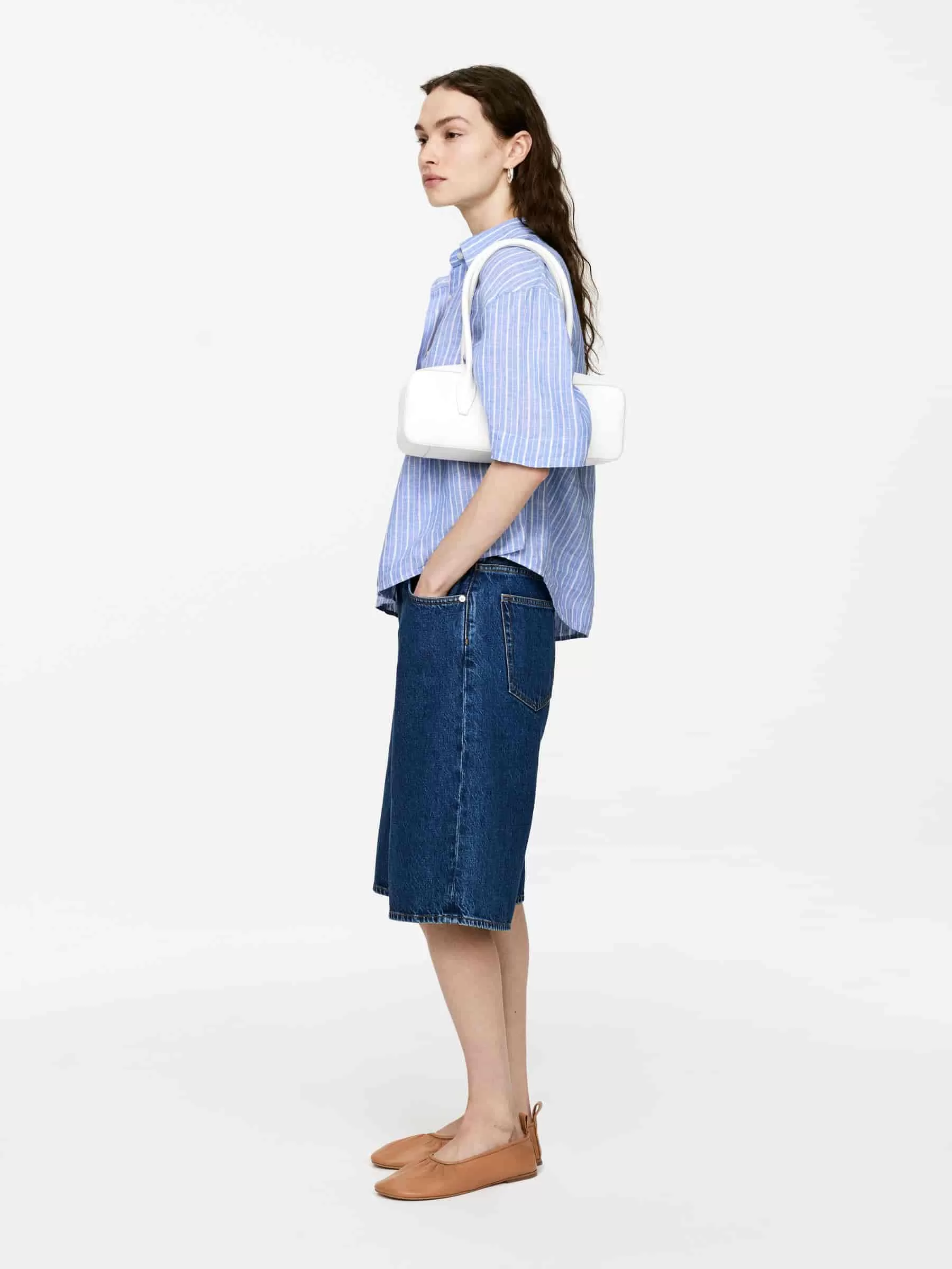 Mini bowlingväska med övre handtag. Designad med en långsträckt form och mjukt rundade kanter. Dubbel dragkedja och innerficka. Bredd 33 cm, höjd 11 cm, djup 7 cm. Fall 21 cm.