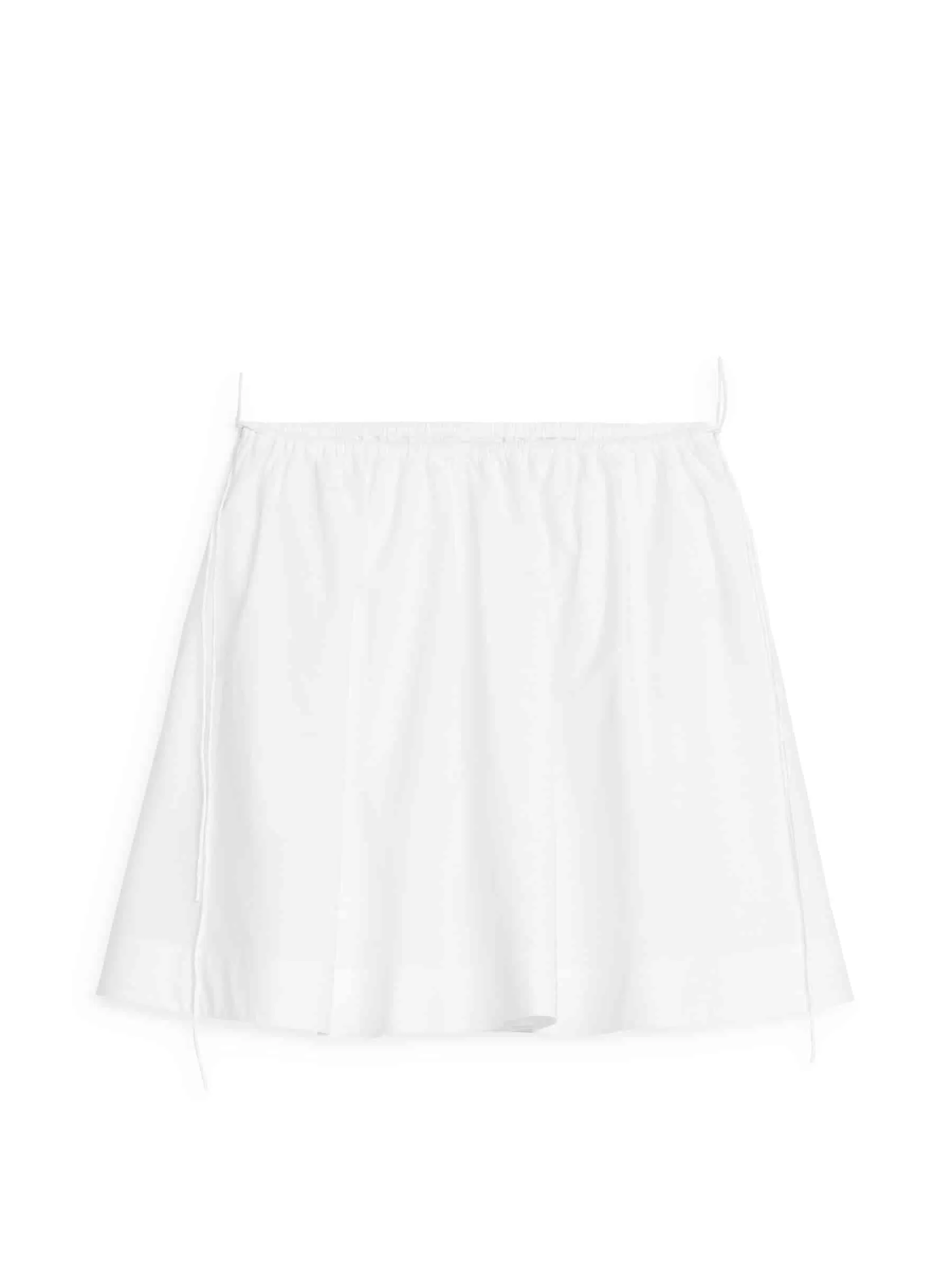 Kort A-linje kjol med sidosömsfickor. Stylad med mjuka resårer i midjan och fasta rouleau-band i sidorna. Helfodrad.